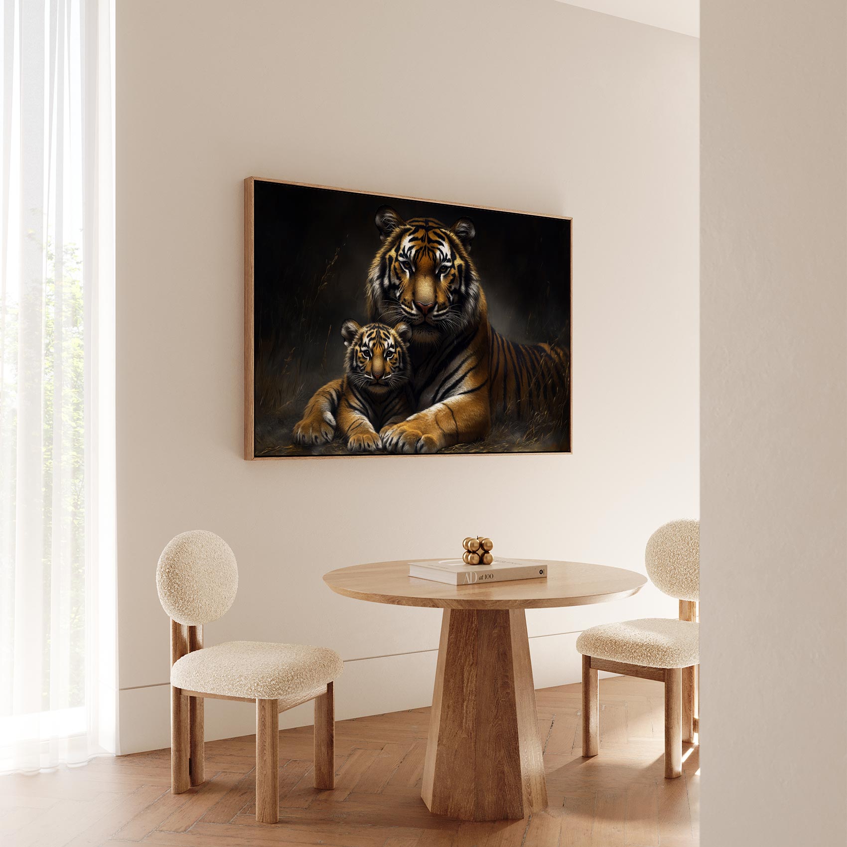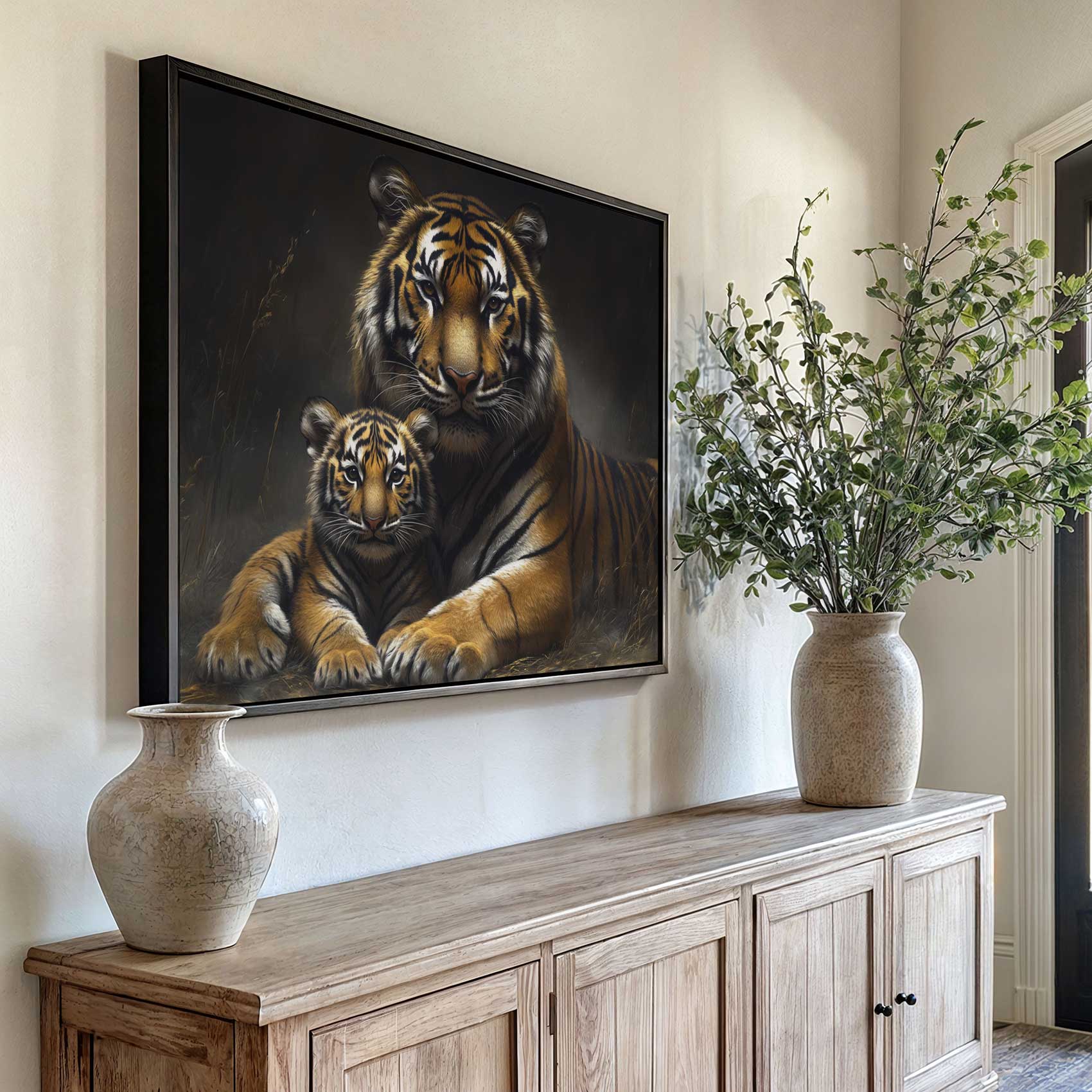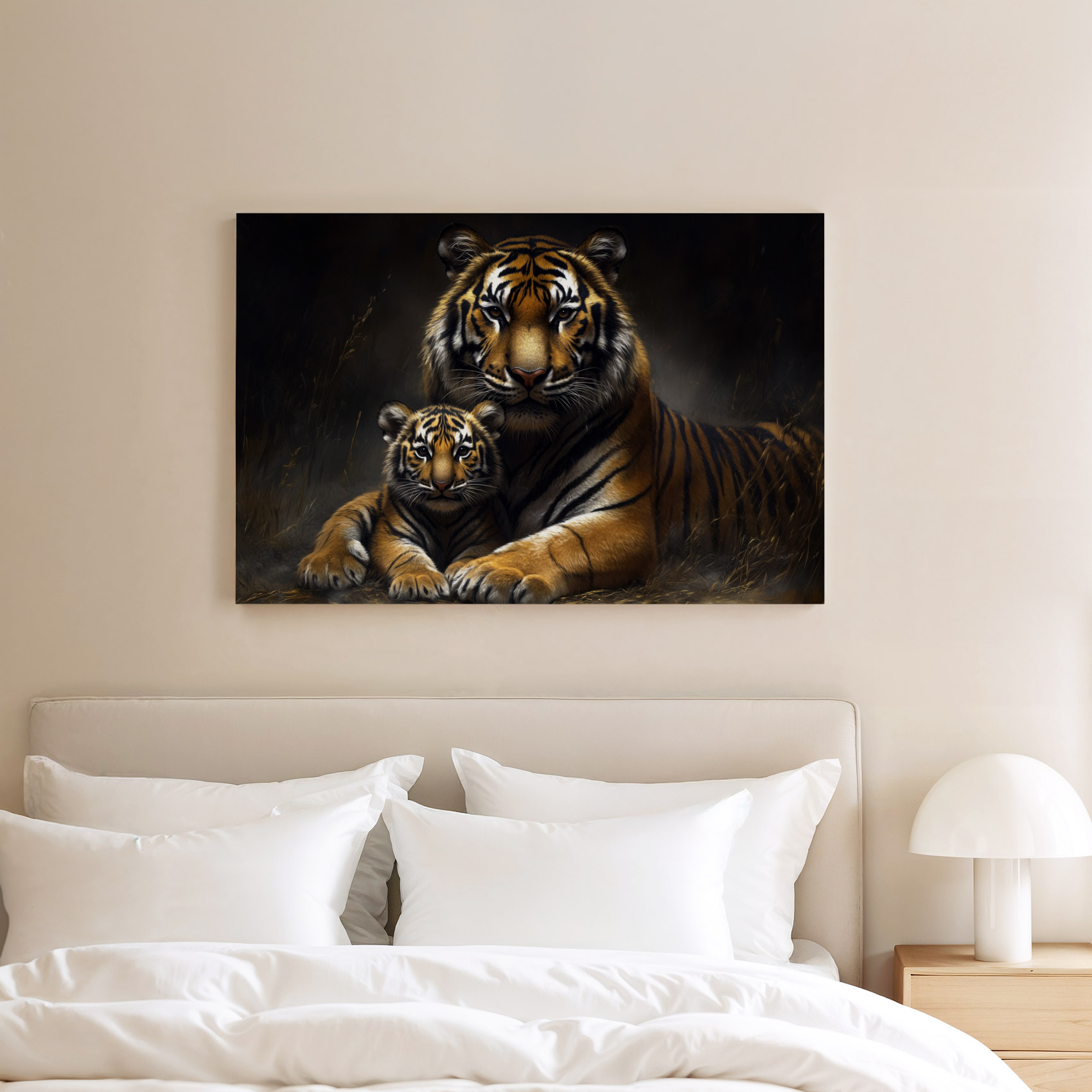 Terug naar collectie / Schilderijen / Dieren Schilderij / Rustende tijgermoeder met welp
