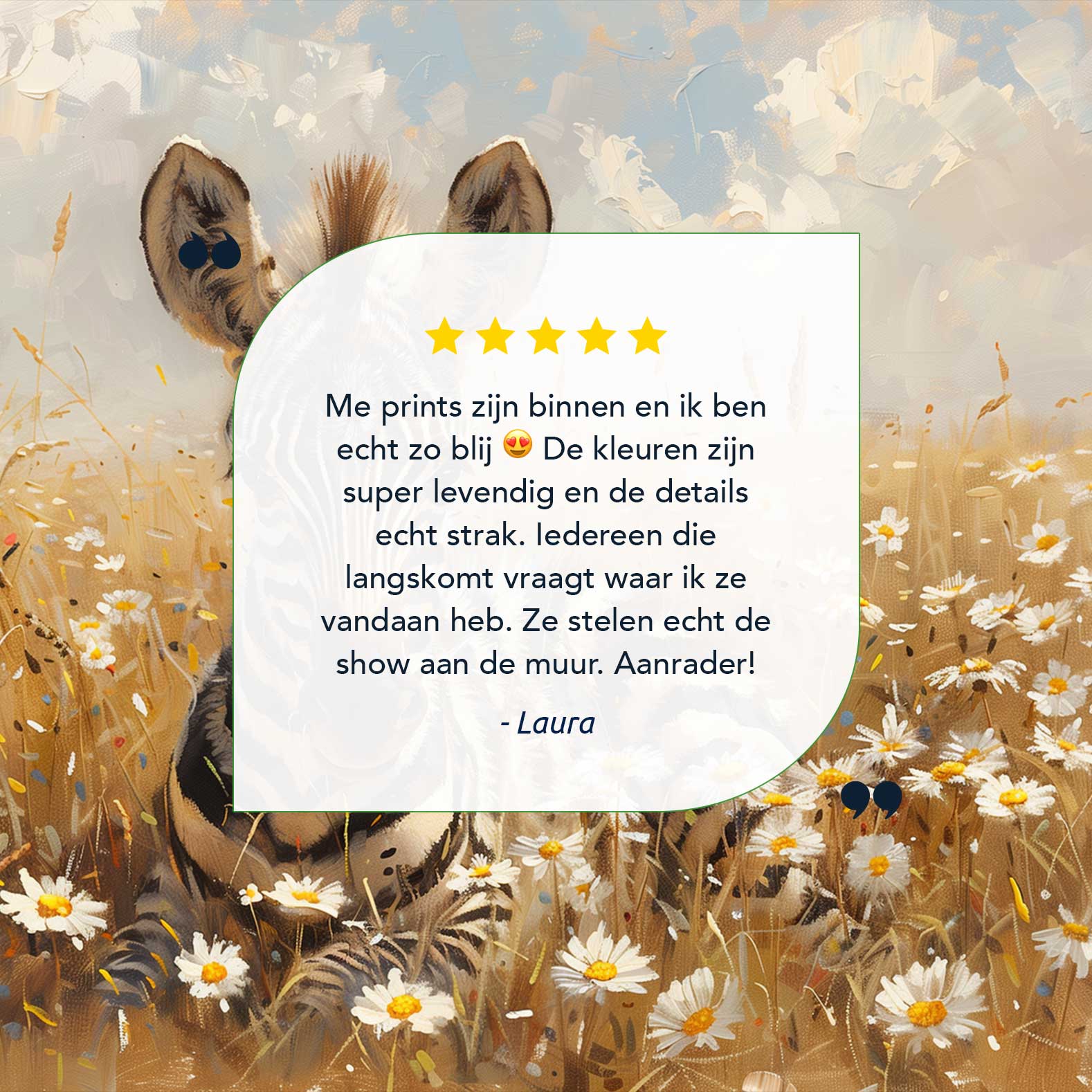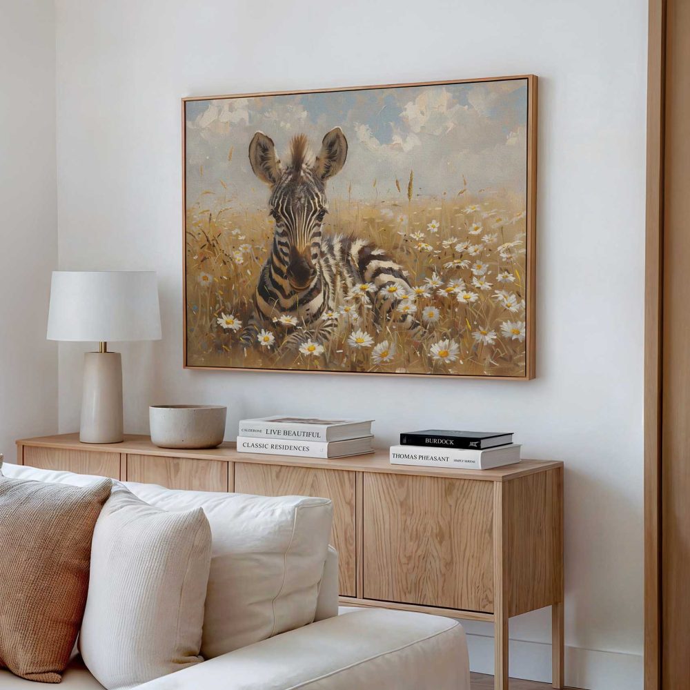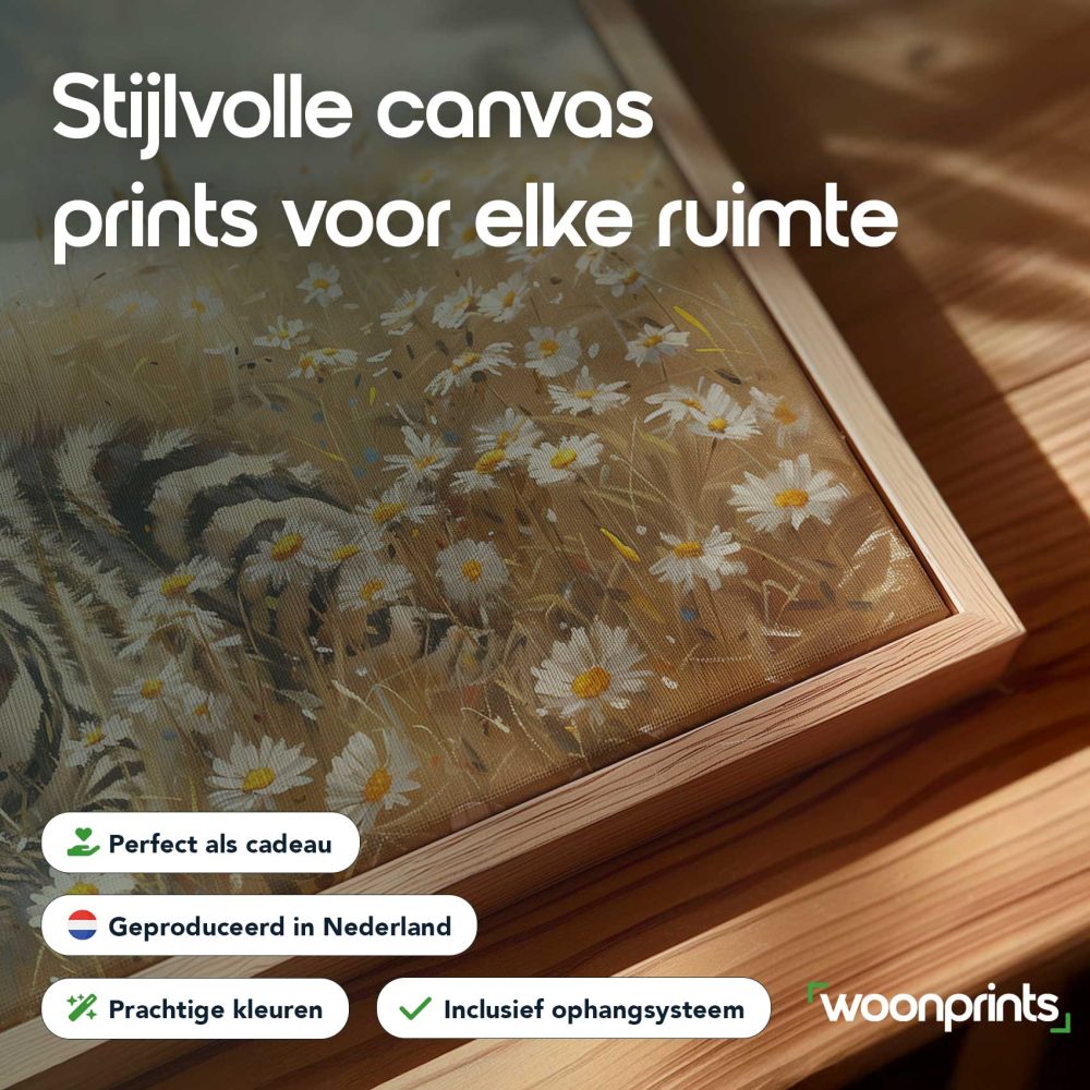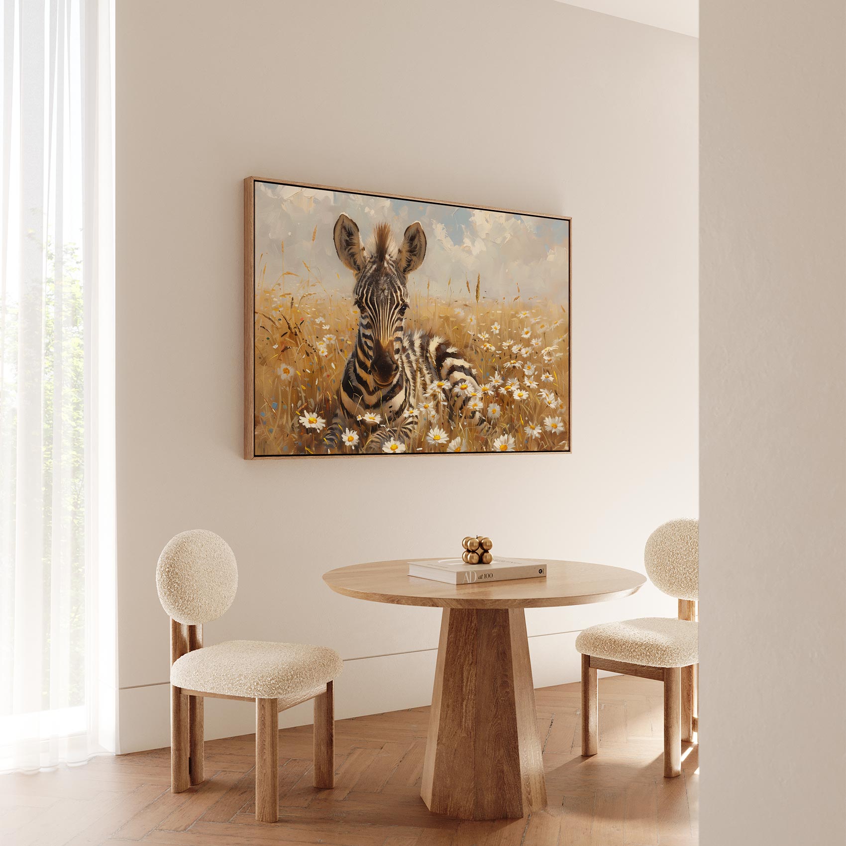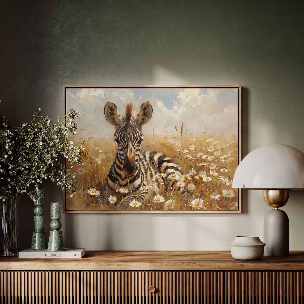 Terug naar collectie / Schilderijen / Bloemen Schilderij / Rustende zebra in bloemenveld