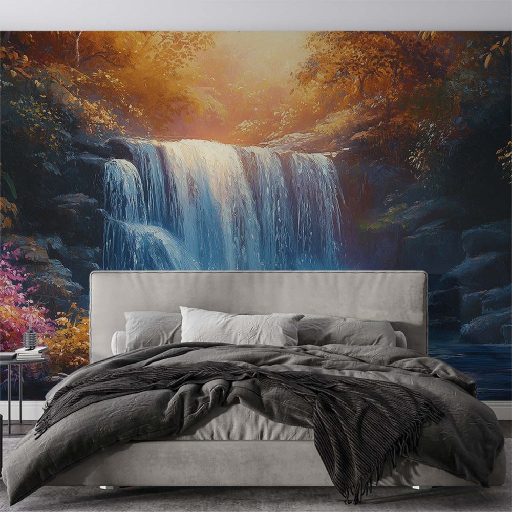 Terug naar collectie / Behang / Rustgevend waterval boslandschap behang