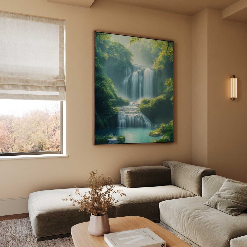 Terug naar collectie / Schilderijen / Bergen Schilderij / Rustgevende Waterval Natuur