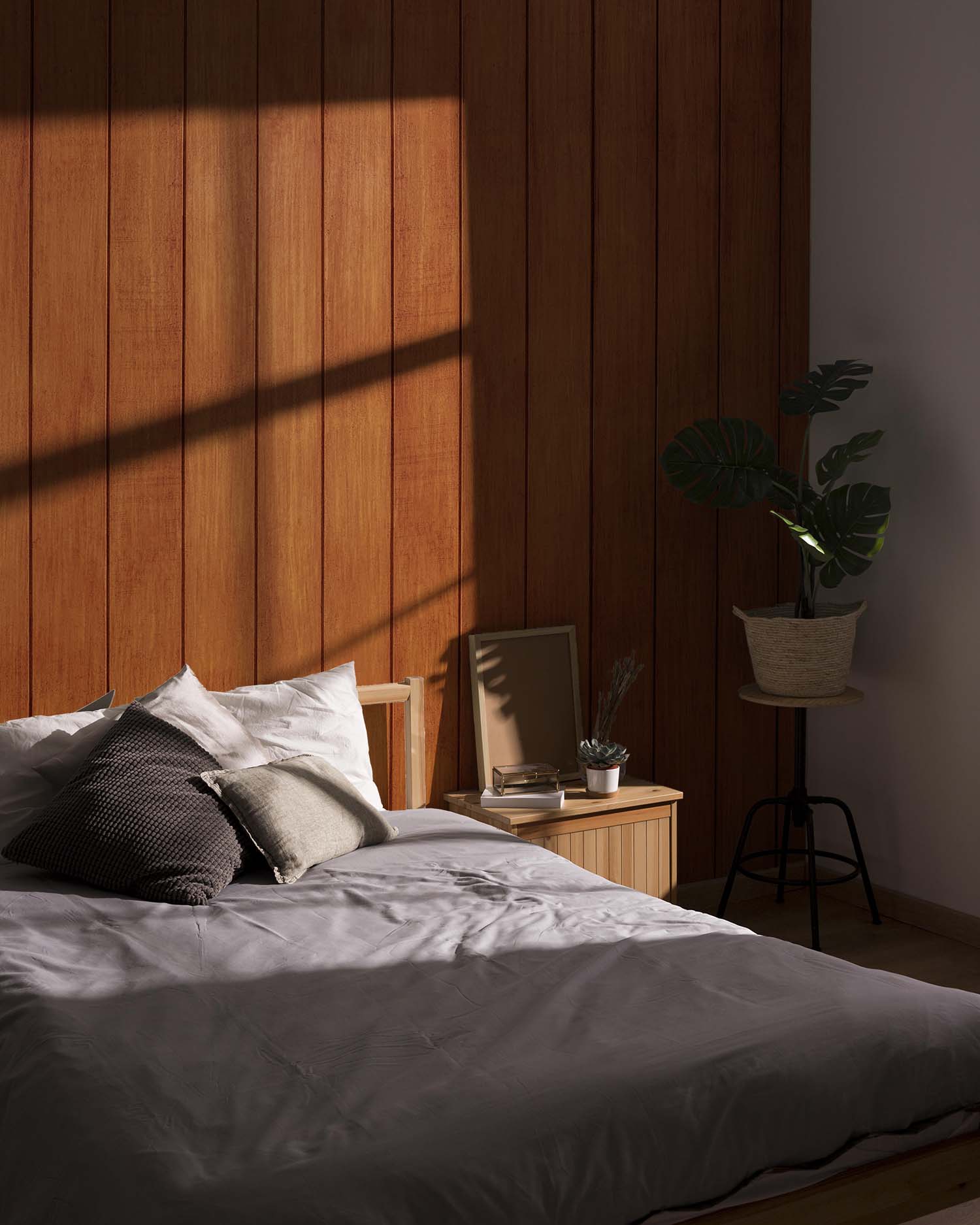 U ontvangt een staal van 15 × 20 cm op Variovlies behang, met dezelfde print en structuur als het uiteindelijke product. Zo kunt u thuis rustig beoordelen of het ontwerp goed past.