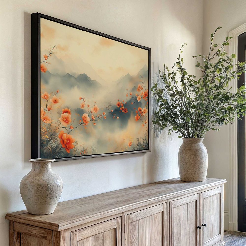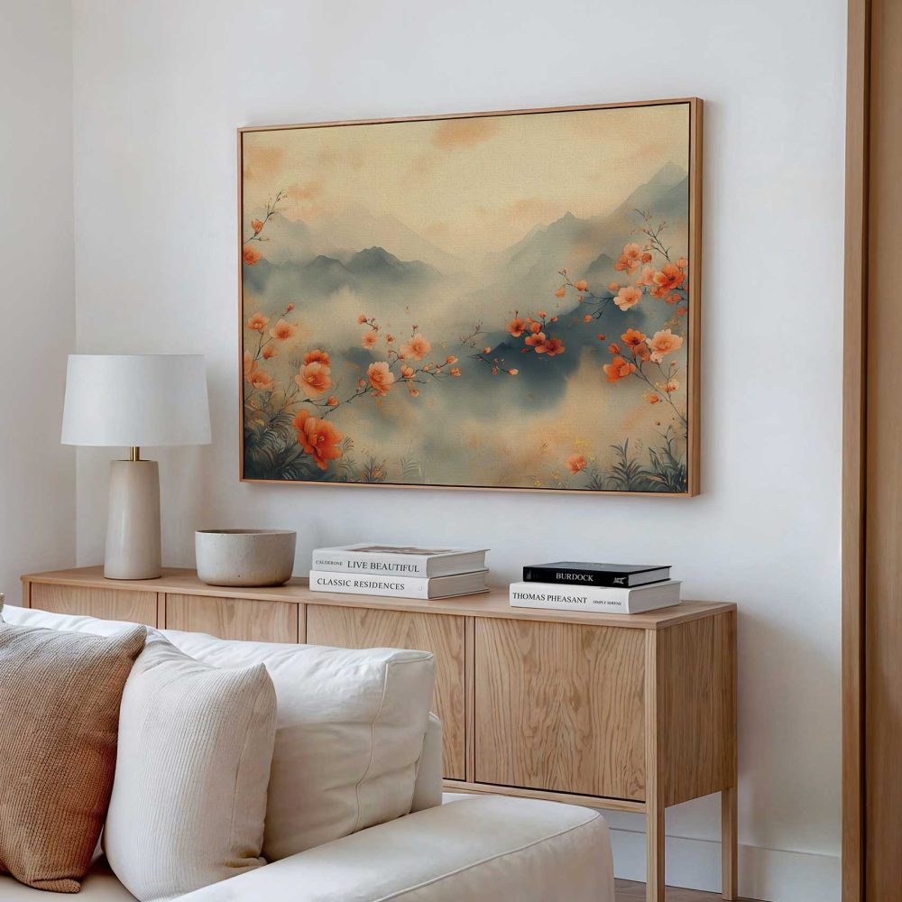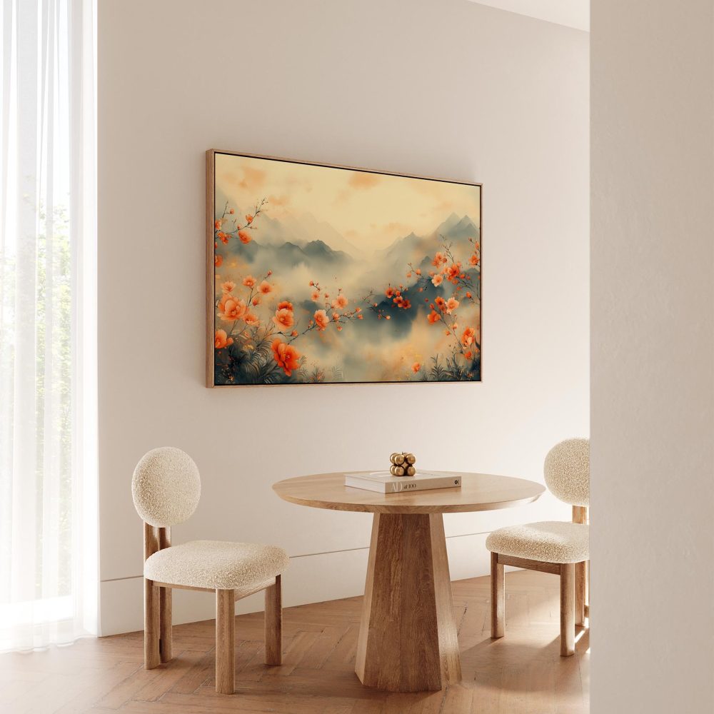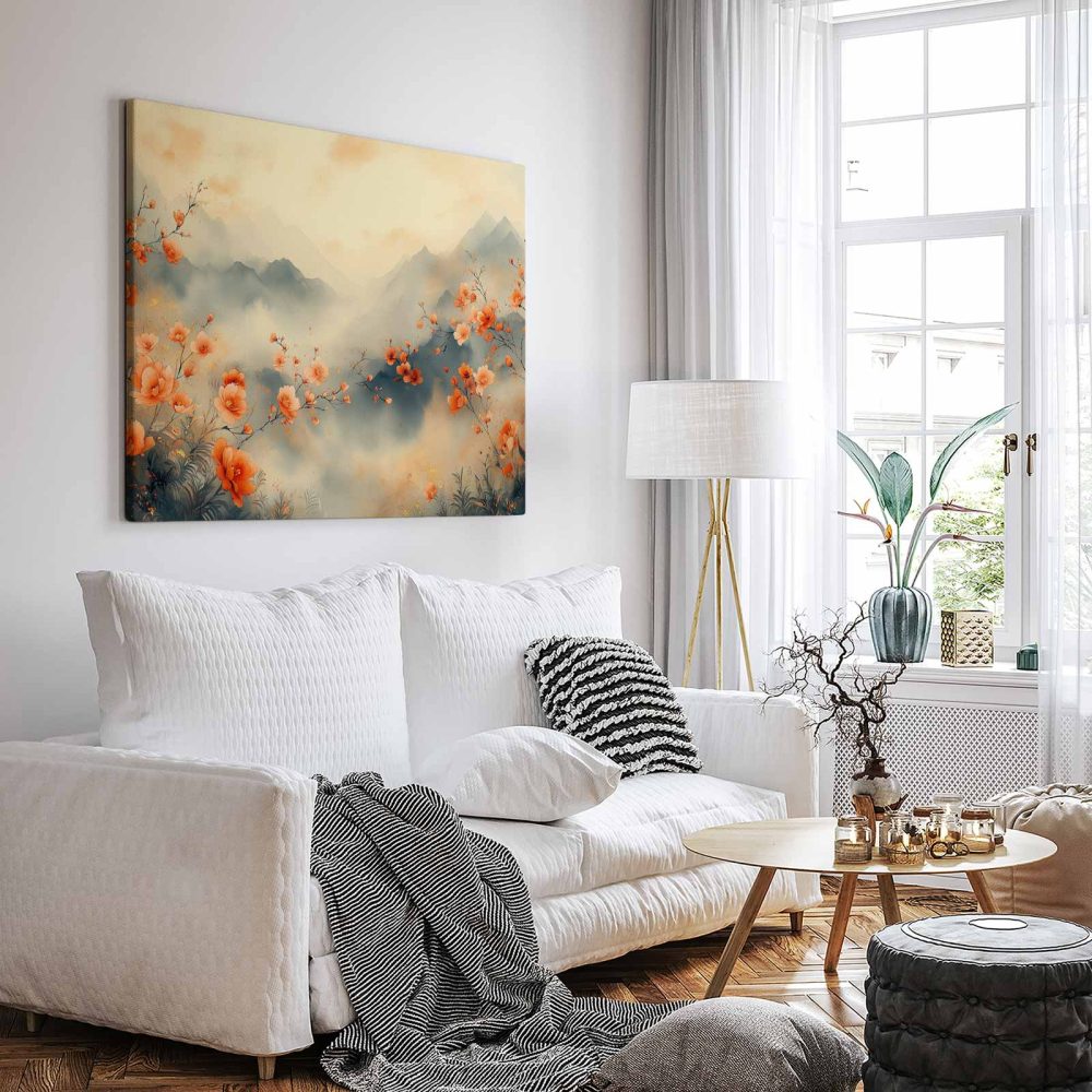 Terug naar collectie / Schilderijen / Bergen Schilderij / Rustig bloemenveld met bergen
