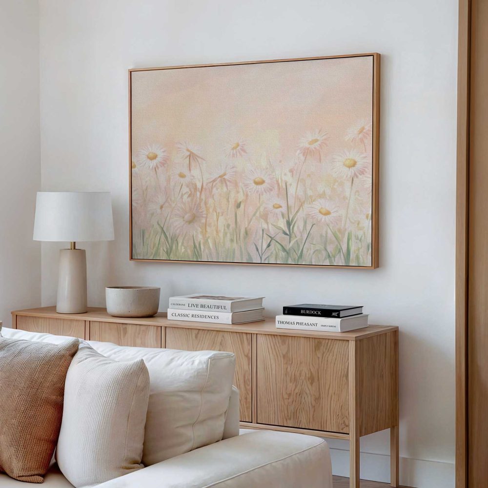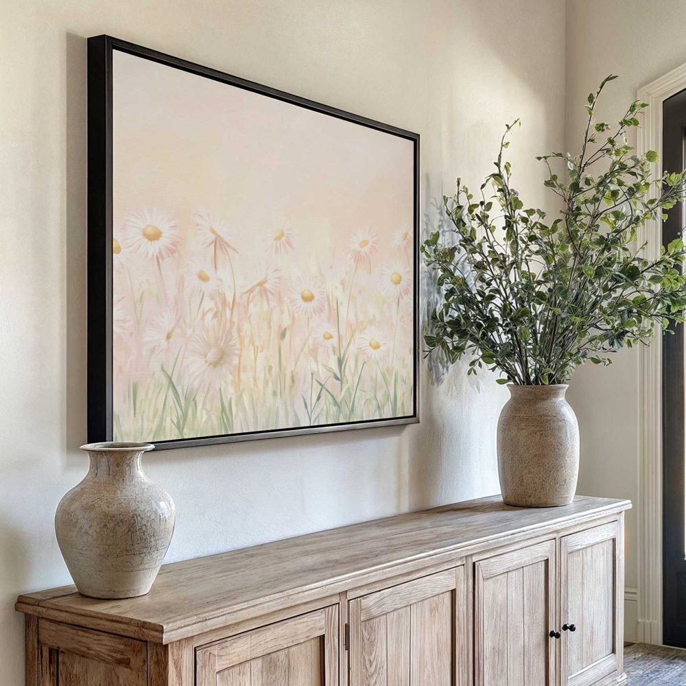 Terug naar collectie / Schilderijen / Bloemen Schilderij / Rustig veld met witte madeliefjes