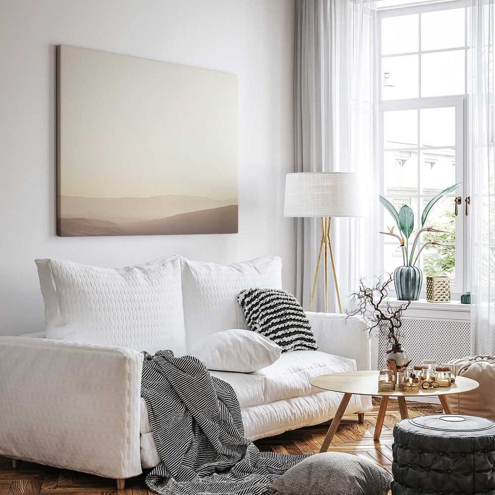 Terug naar collectie / Schilderijen / Bergen Schilderij / Rustige bruine bergen onder waas