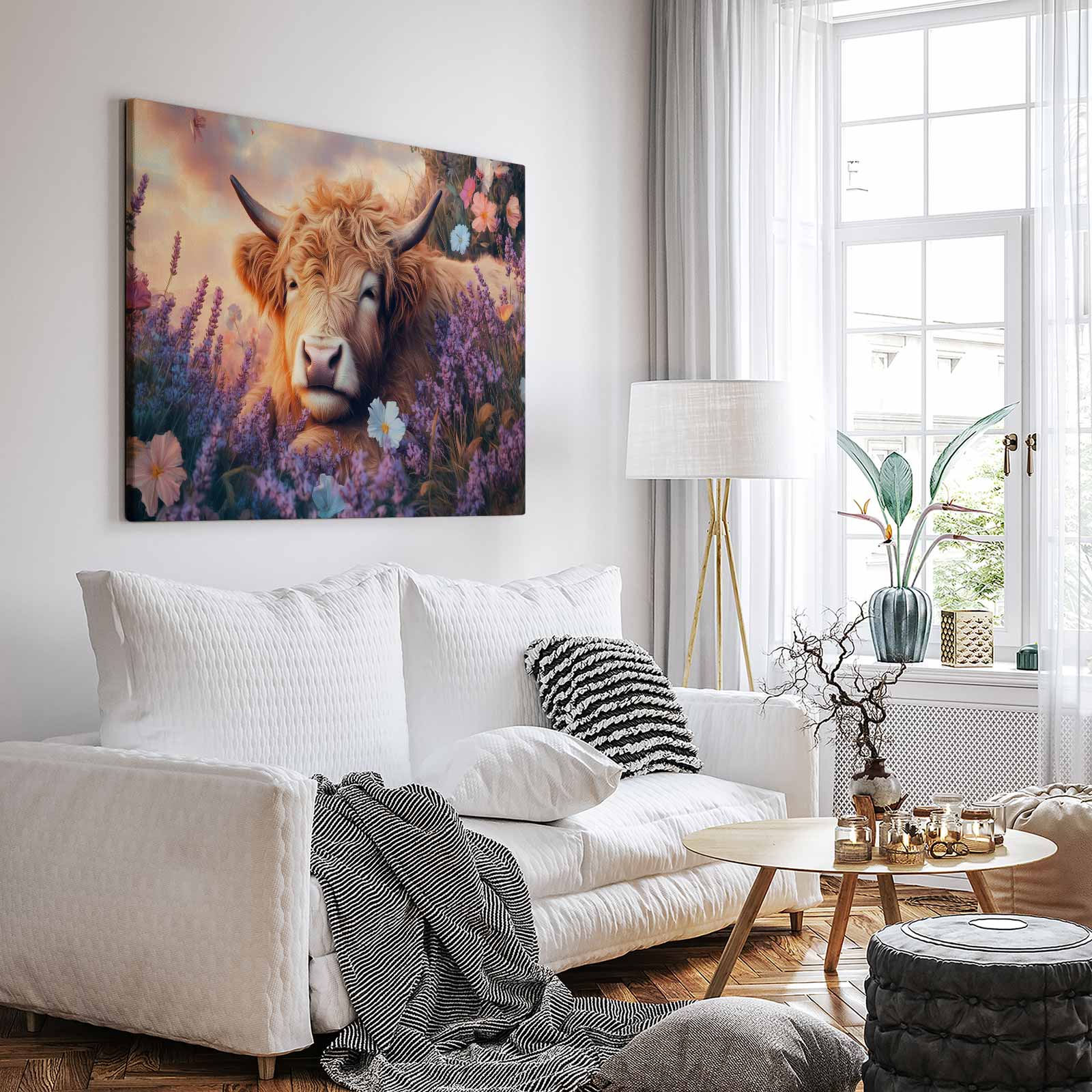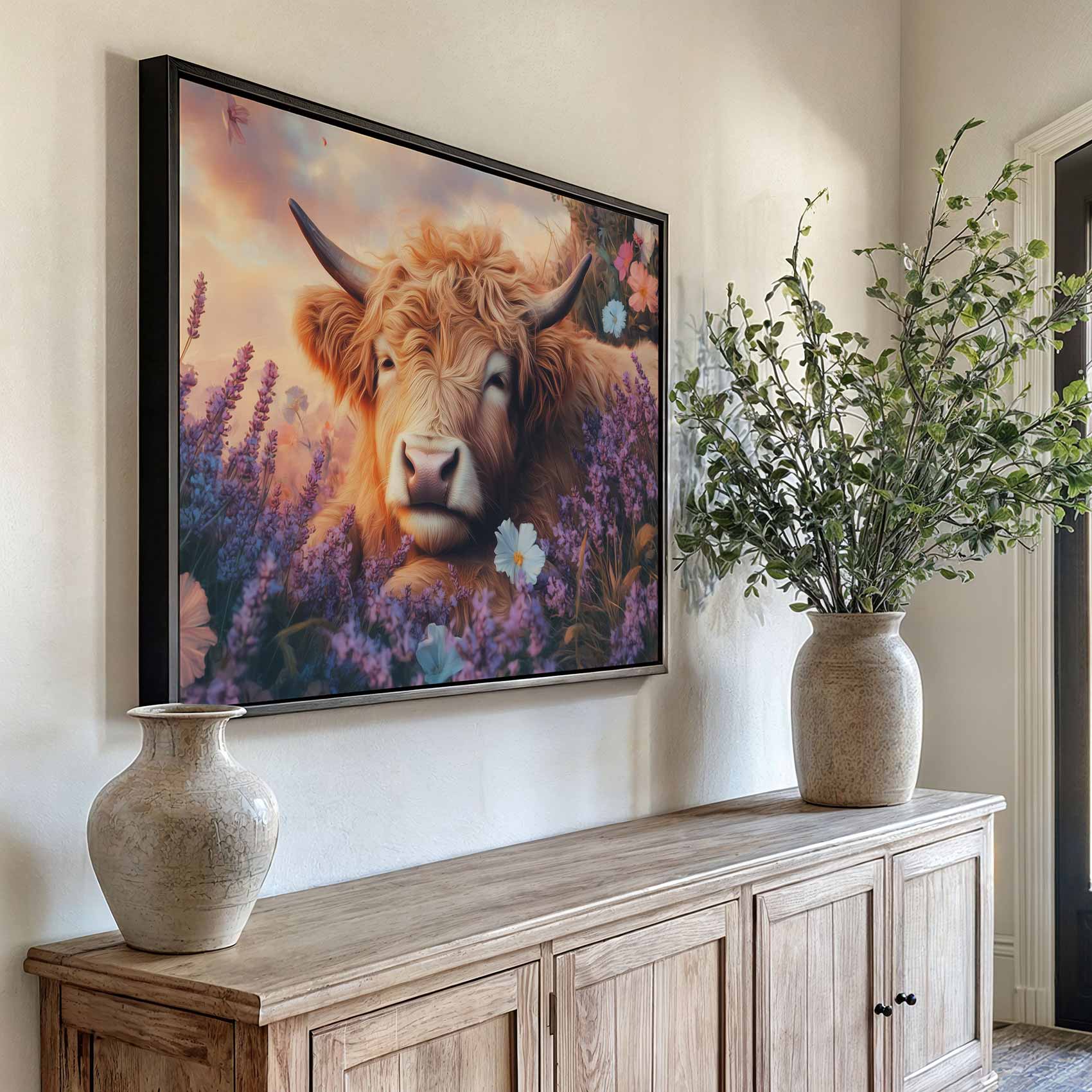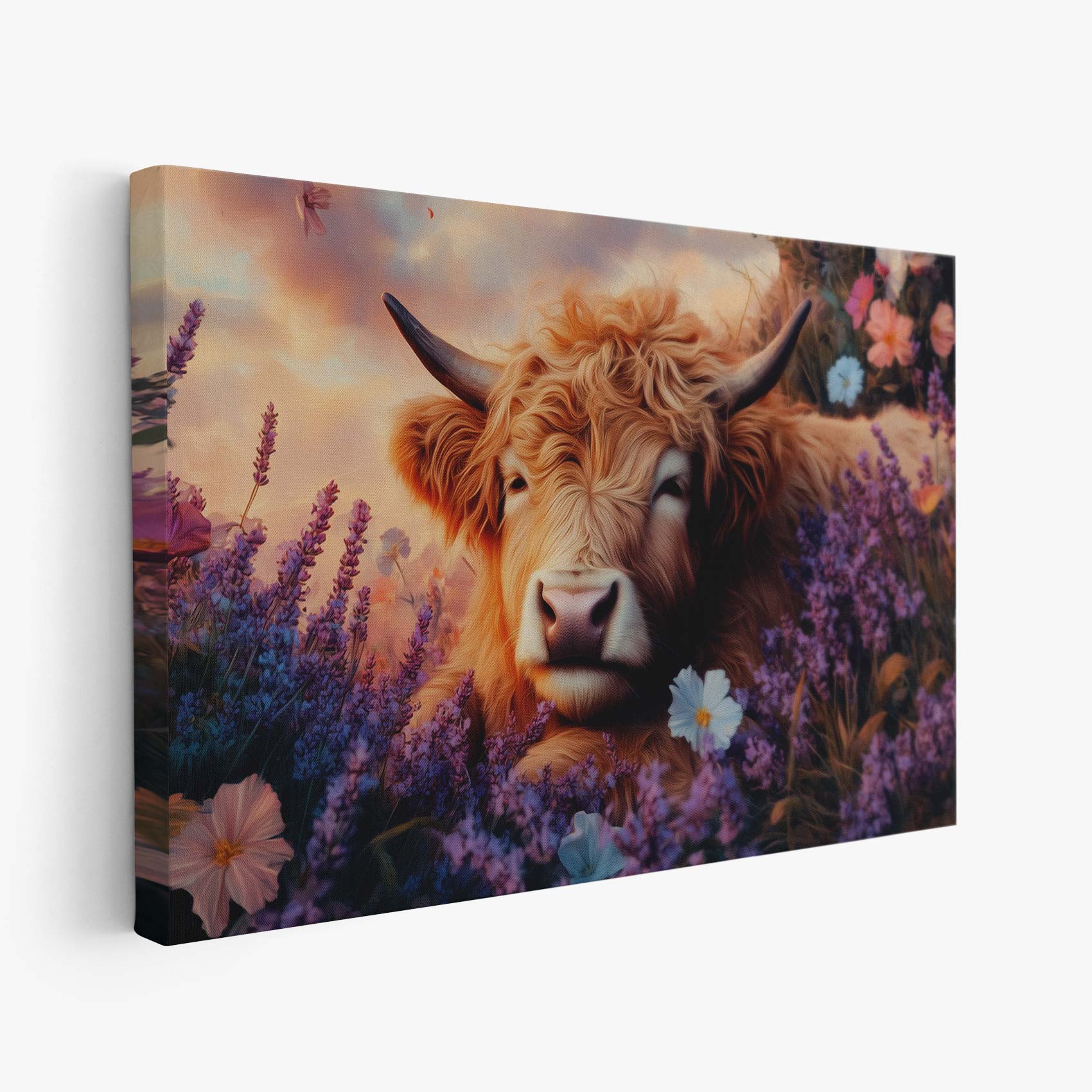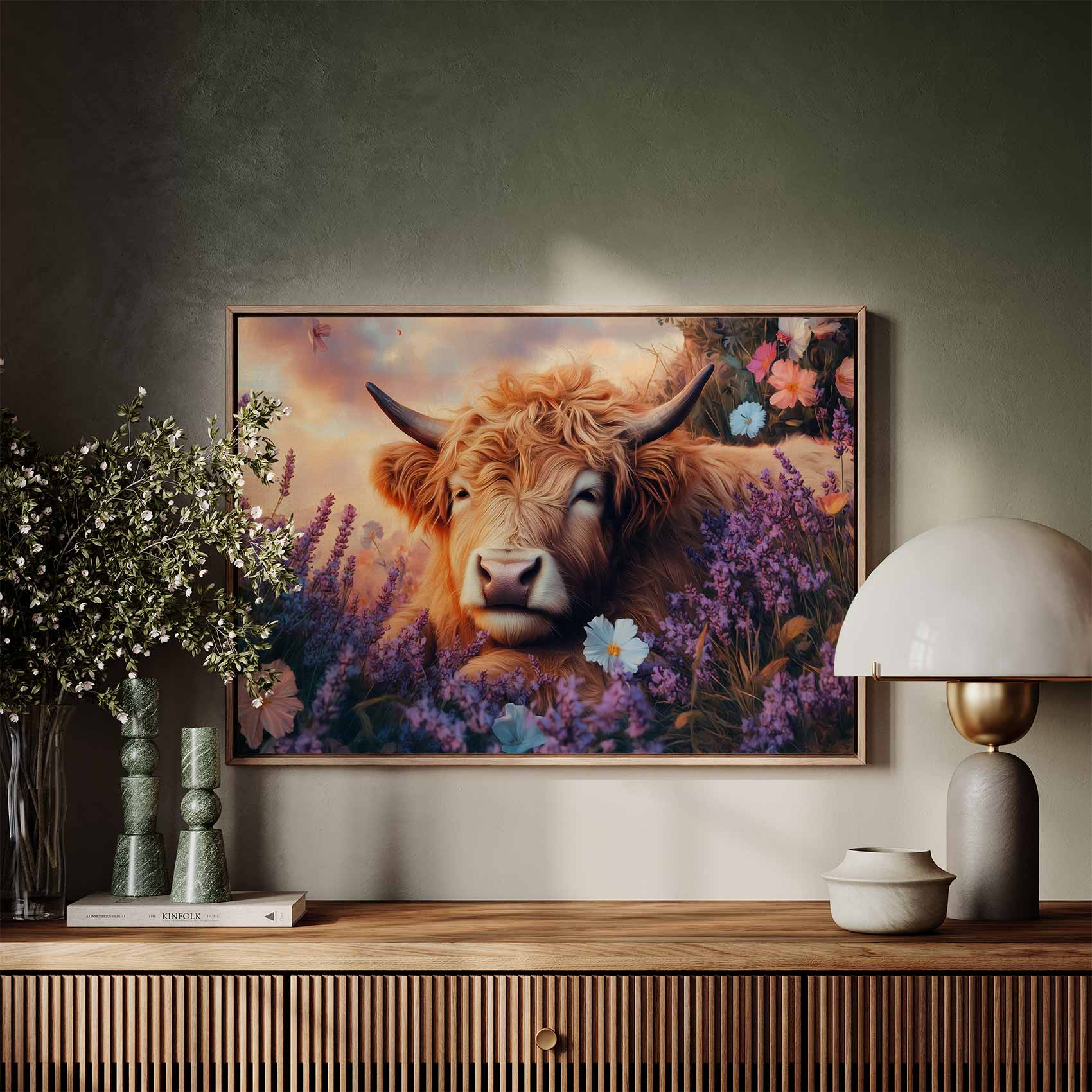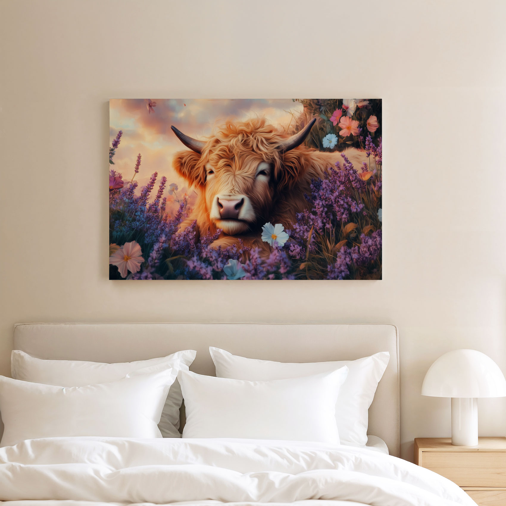 Terug naar collectie / Schilderijen / Bloemen Schilderij / Rustige koe in bloemenveld