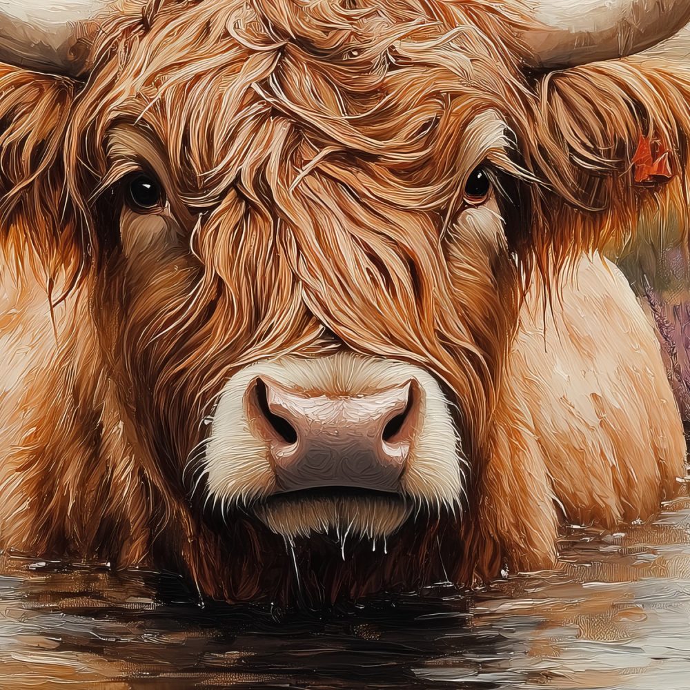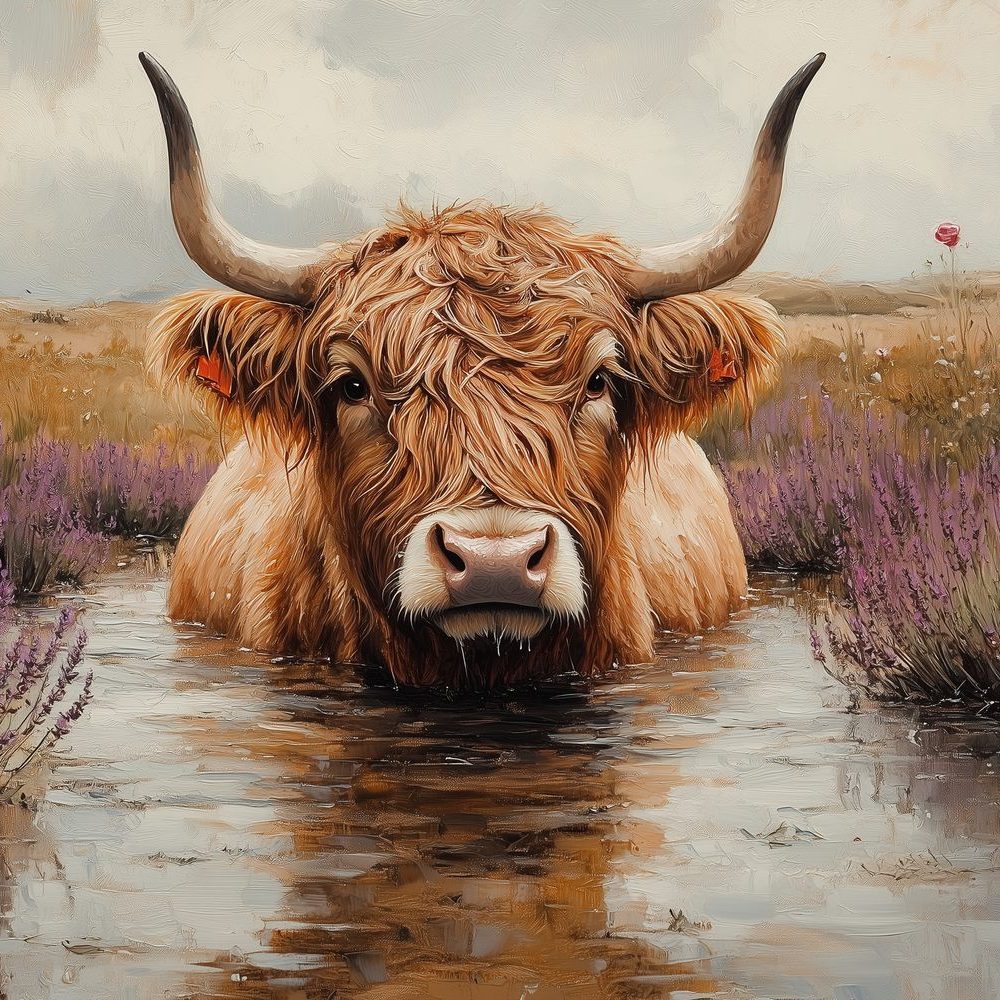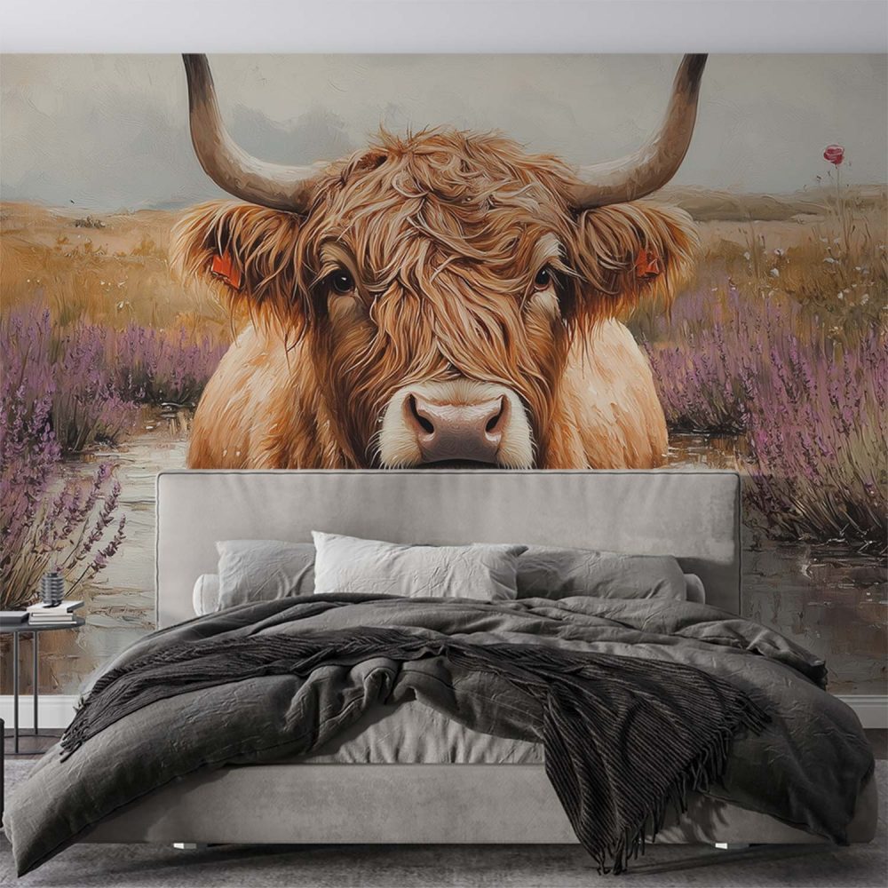 Terug naar collectie / Behang / Rustige koe in bloemenwater behang