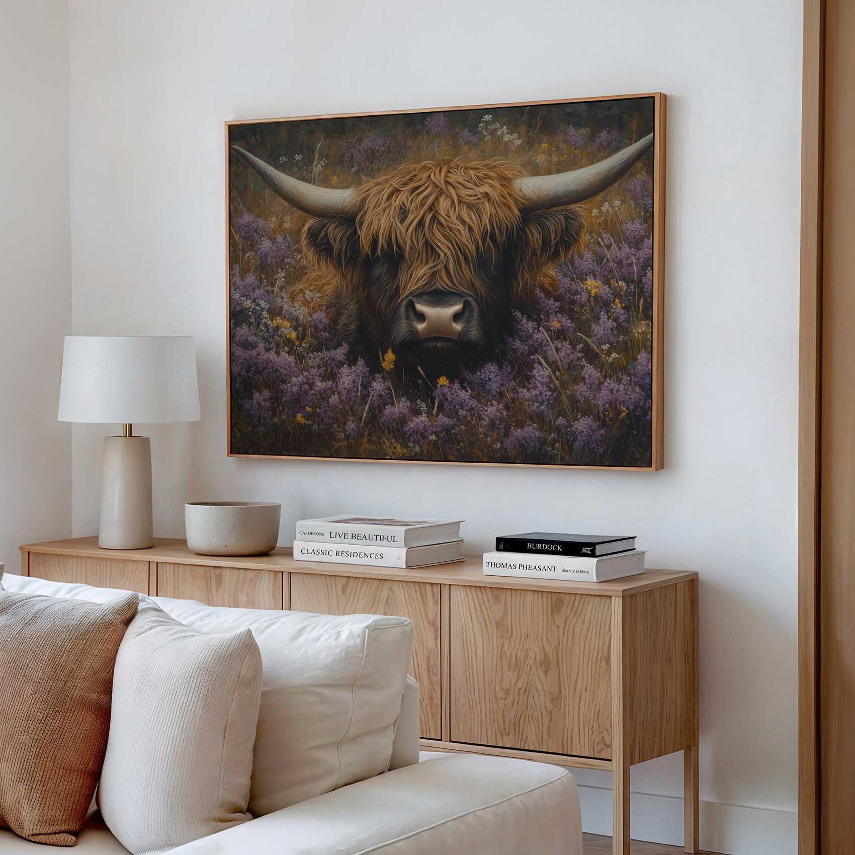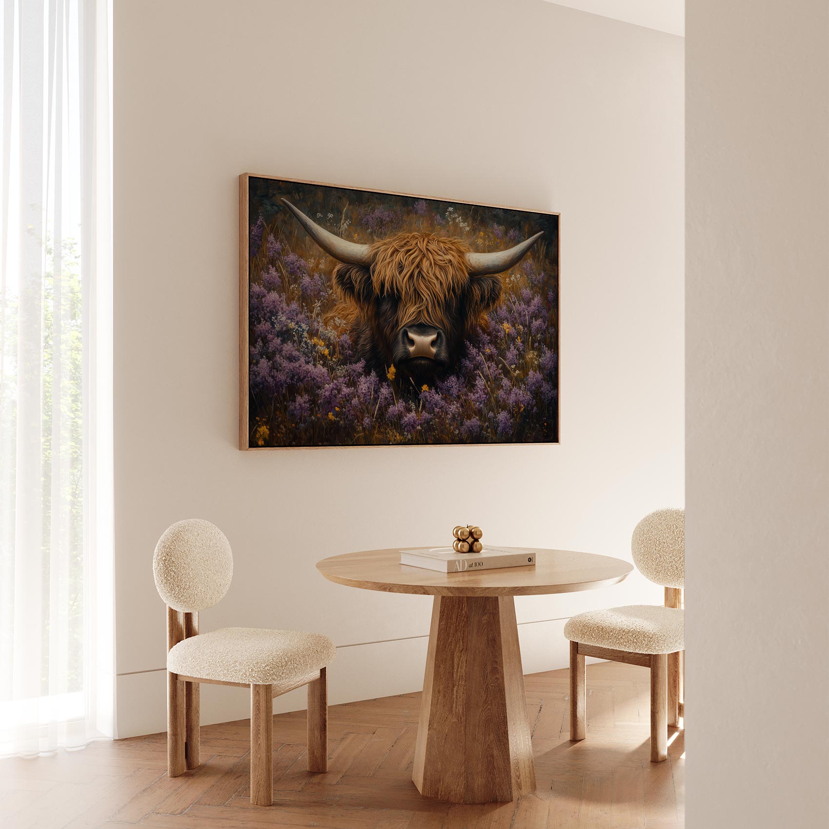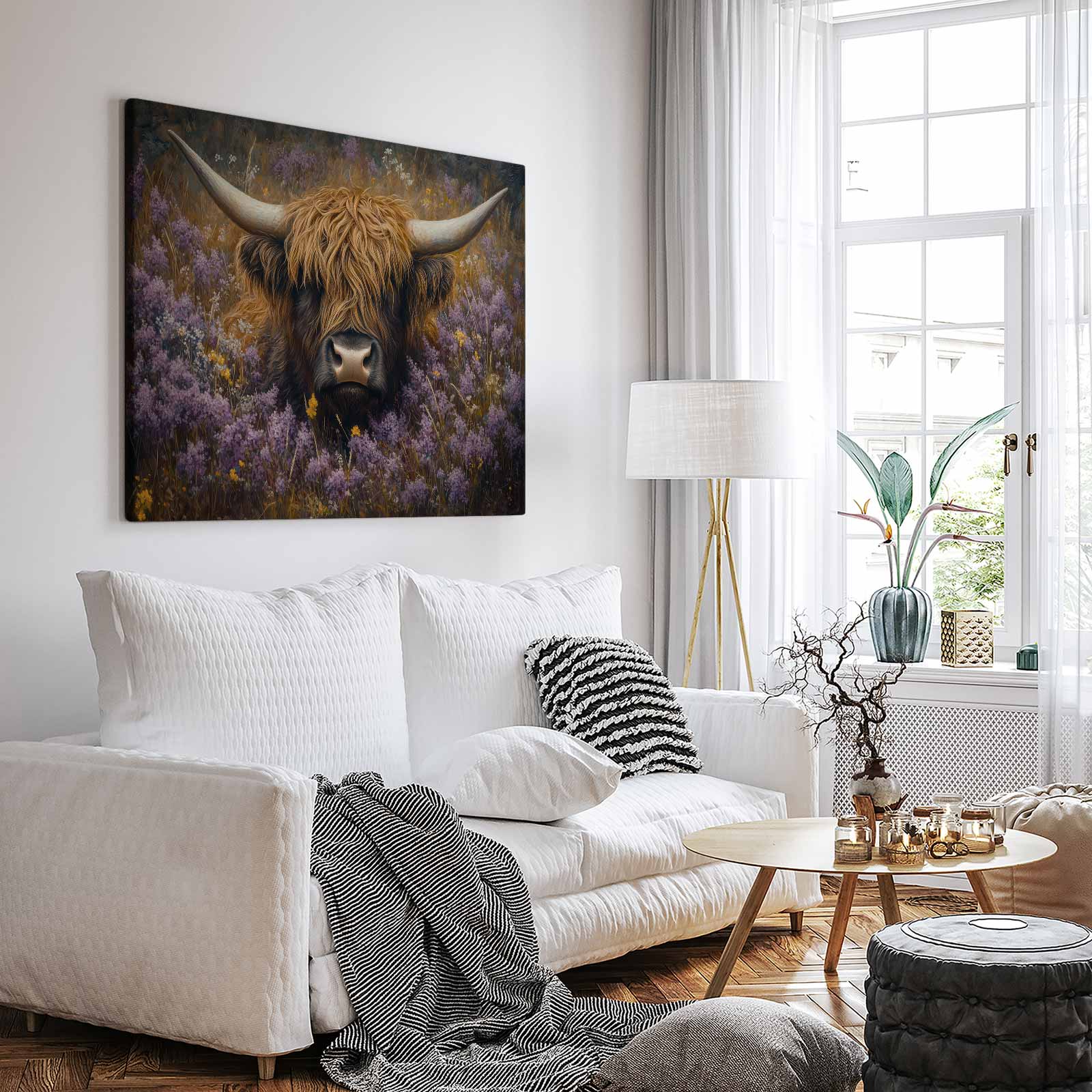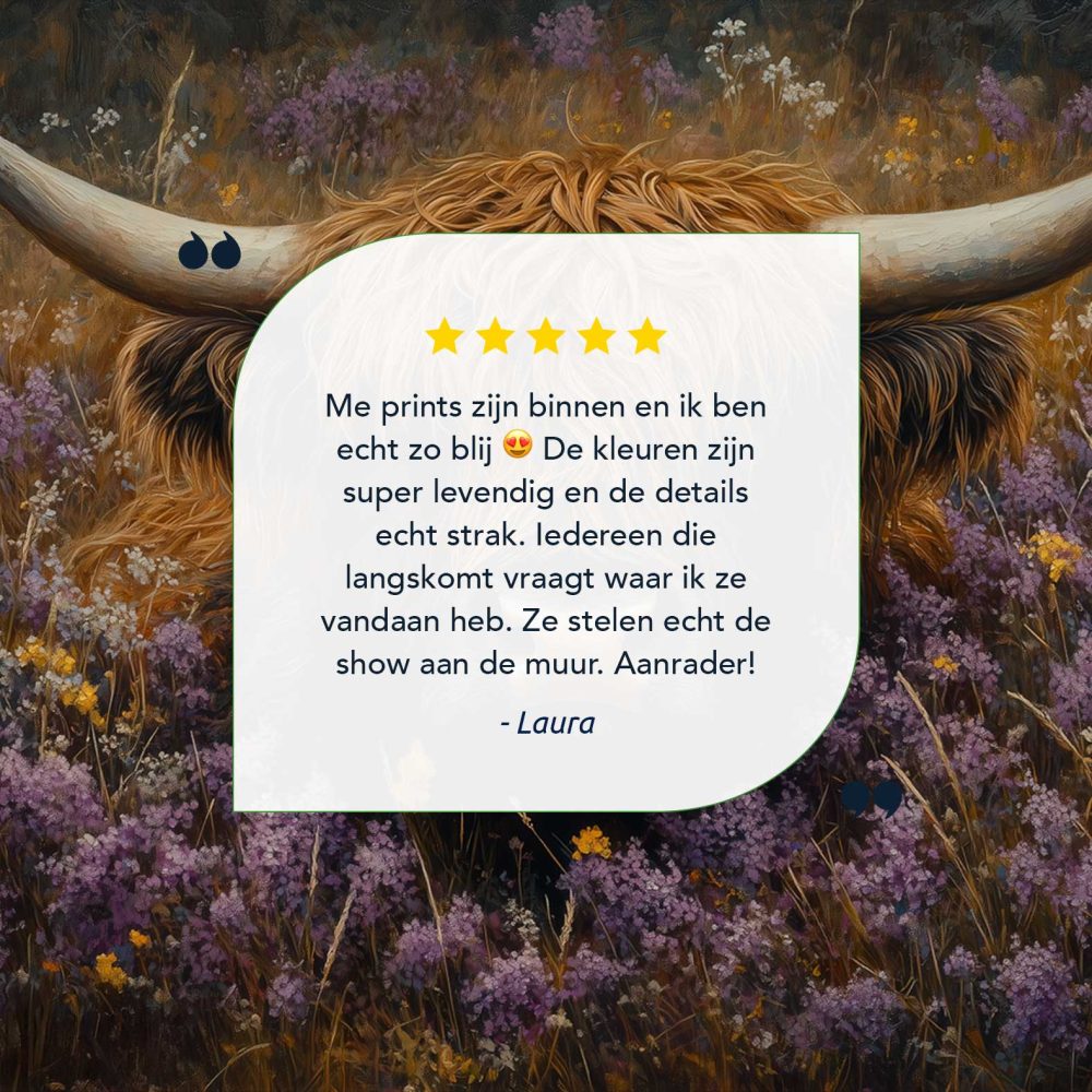 Terug naar collectie / Schilderijen / Bloemen Schilderij / Rustige koe in paarse bloemen