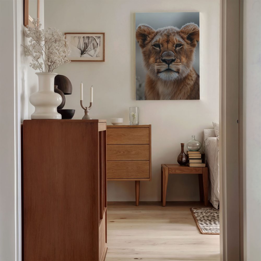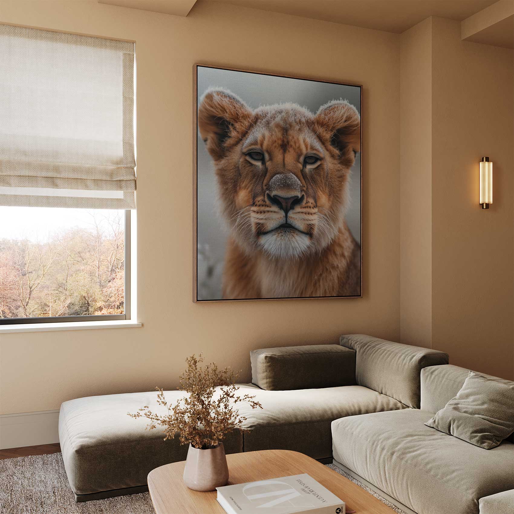 Terug naar collectie / Schilderijen / Dieren Schilderij / Rustige leeuwin close-up portret