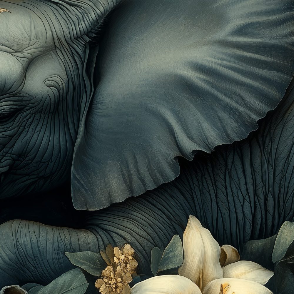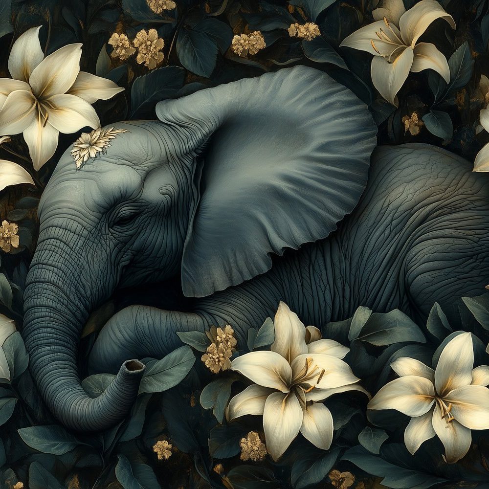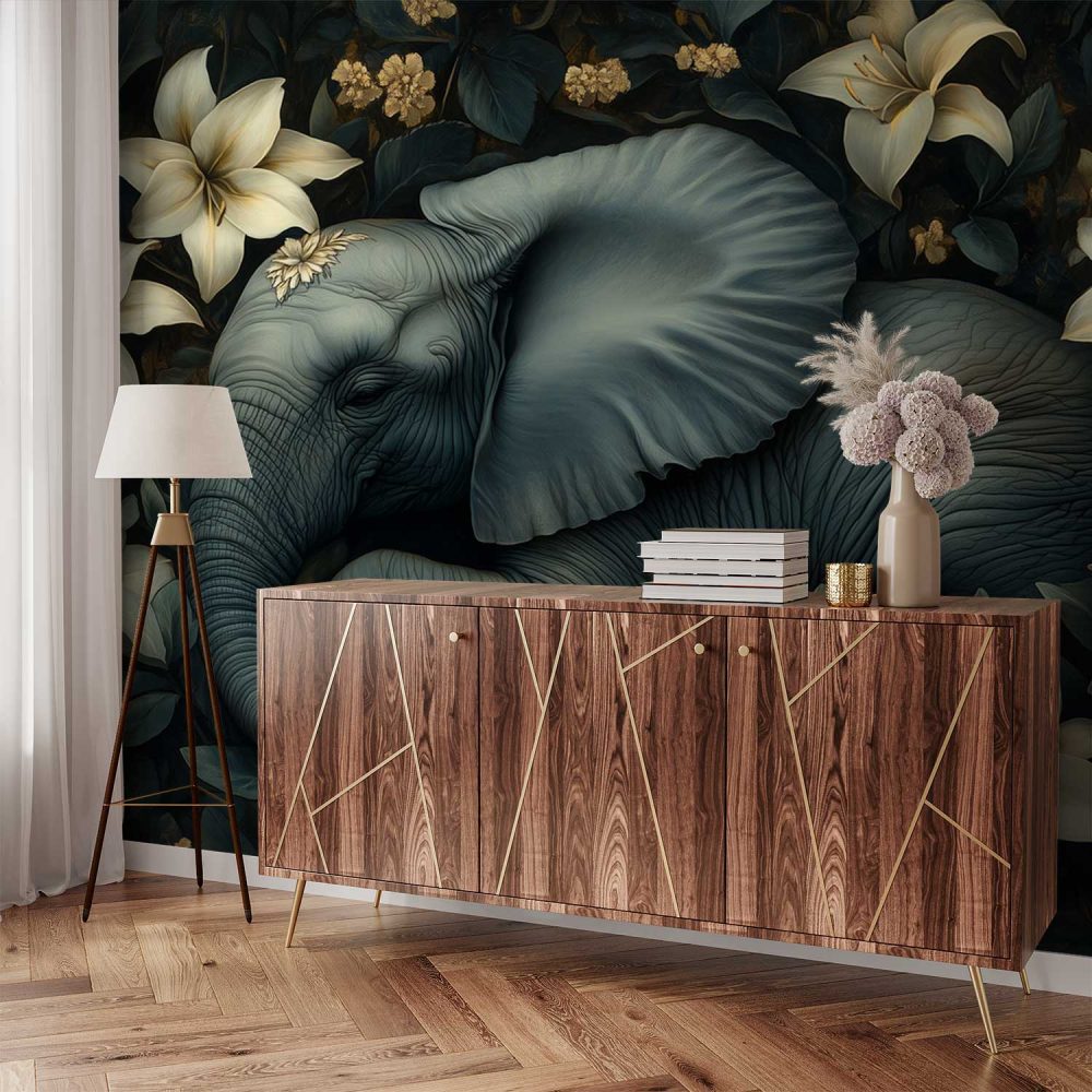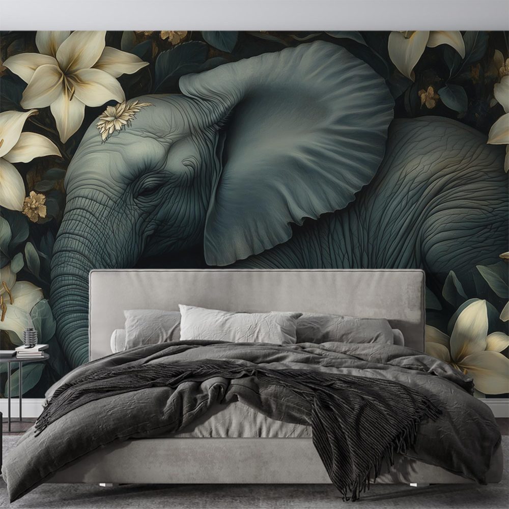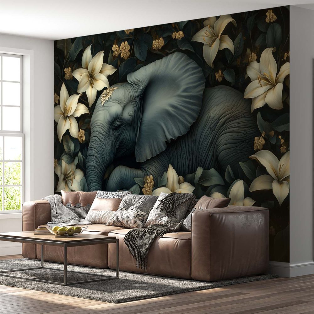 Terug naar collectie / Behang / Rustige Olifant in Bloemen behang