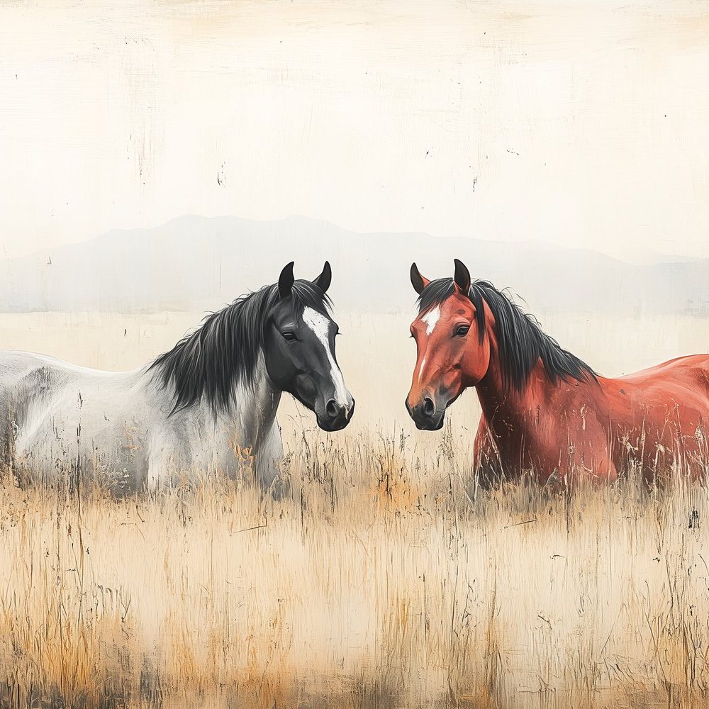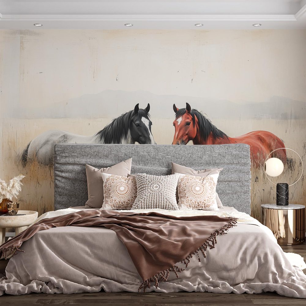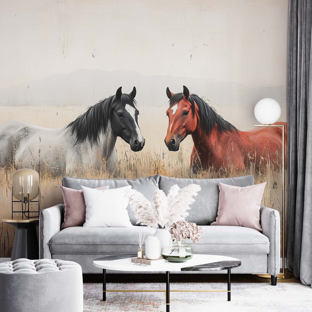 Terug naar collectie / Behang / Rustige Paarden in Gras behang