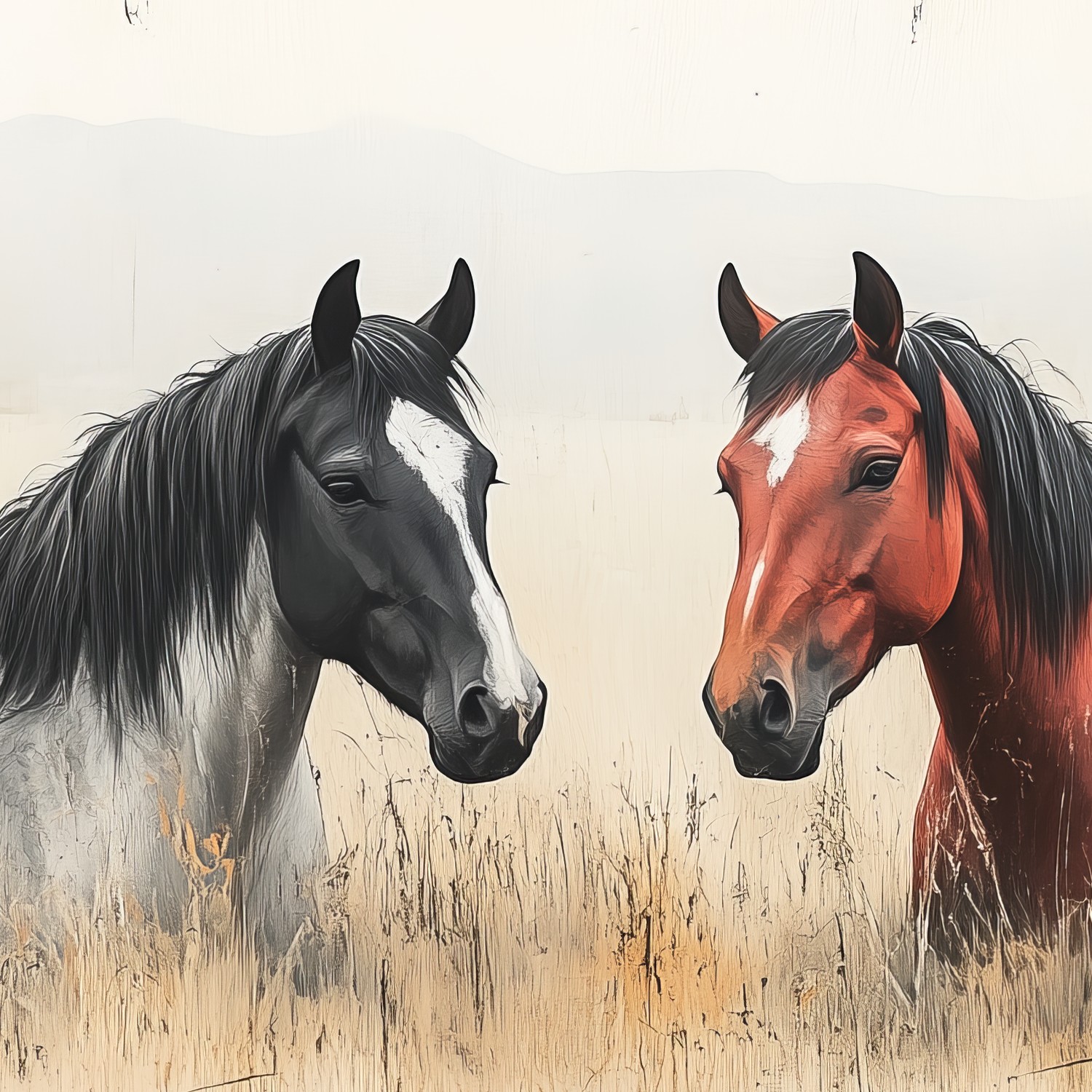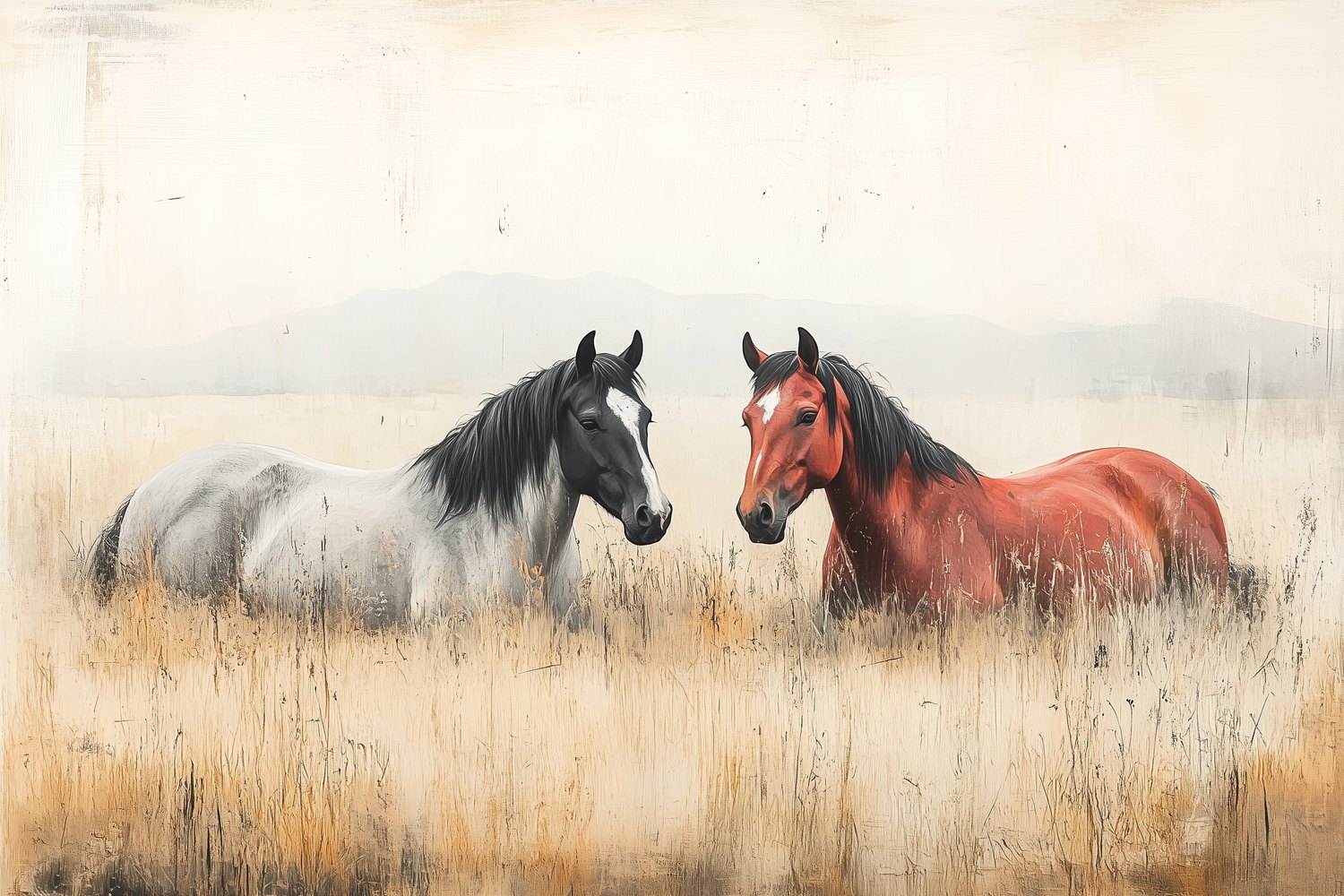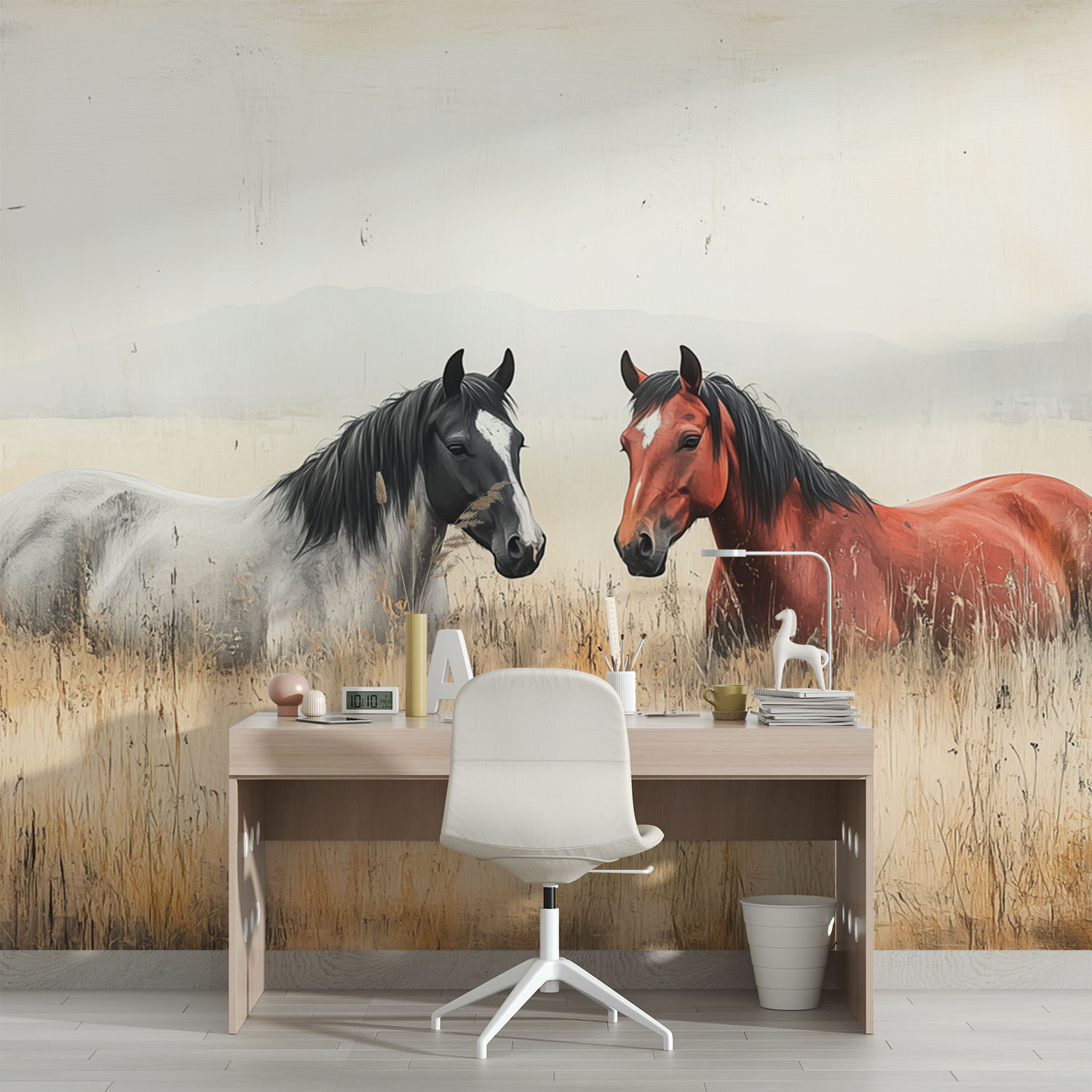Terug naar collectie / Behang / Rustige Paarden in Gras behang