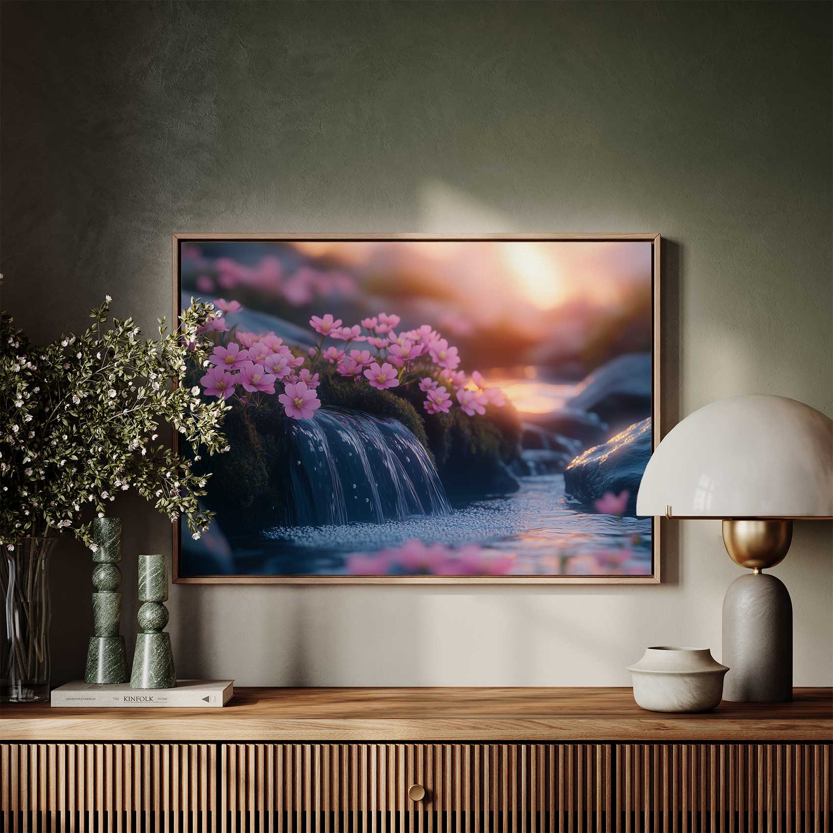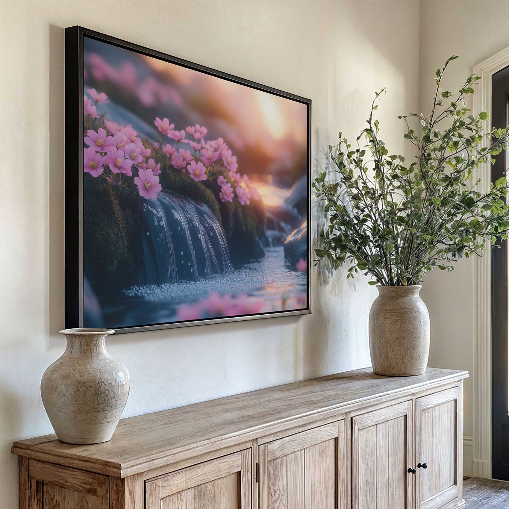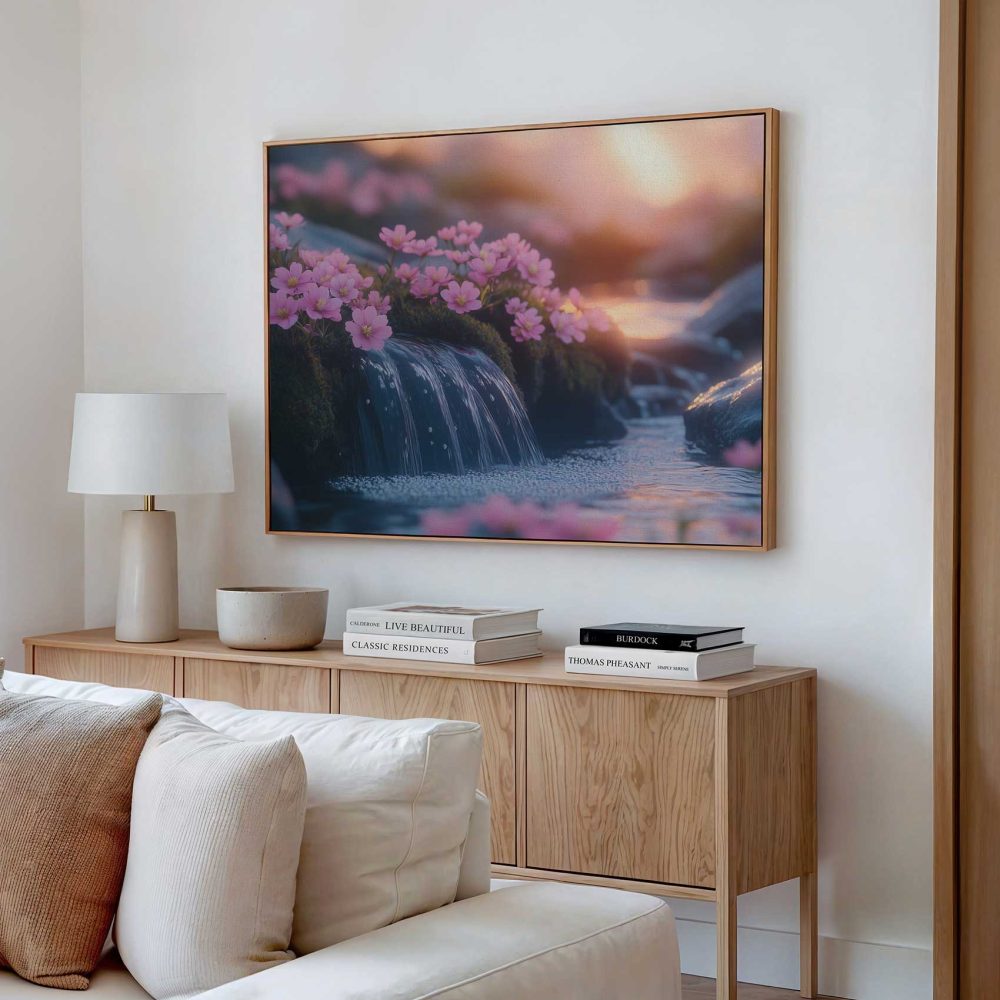 Terug naar collectie / Schilderijen / Bloemen Schilderij / Rustige Roze Watervalbloesems