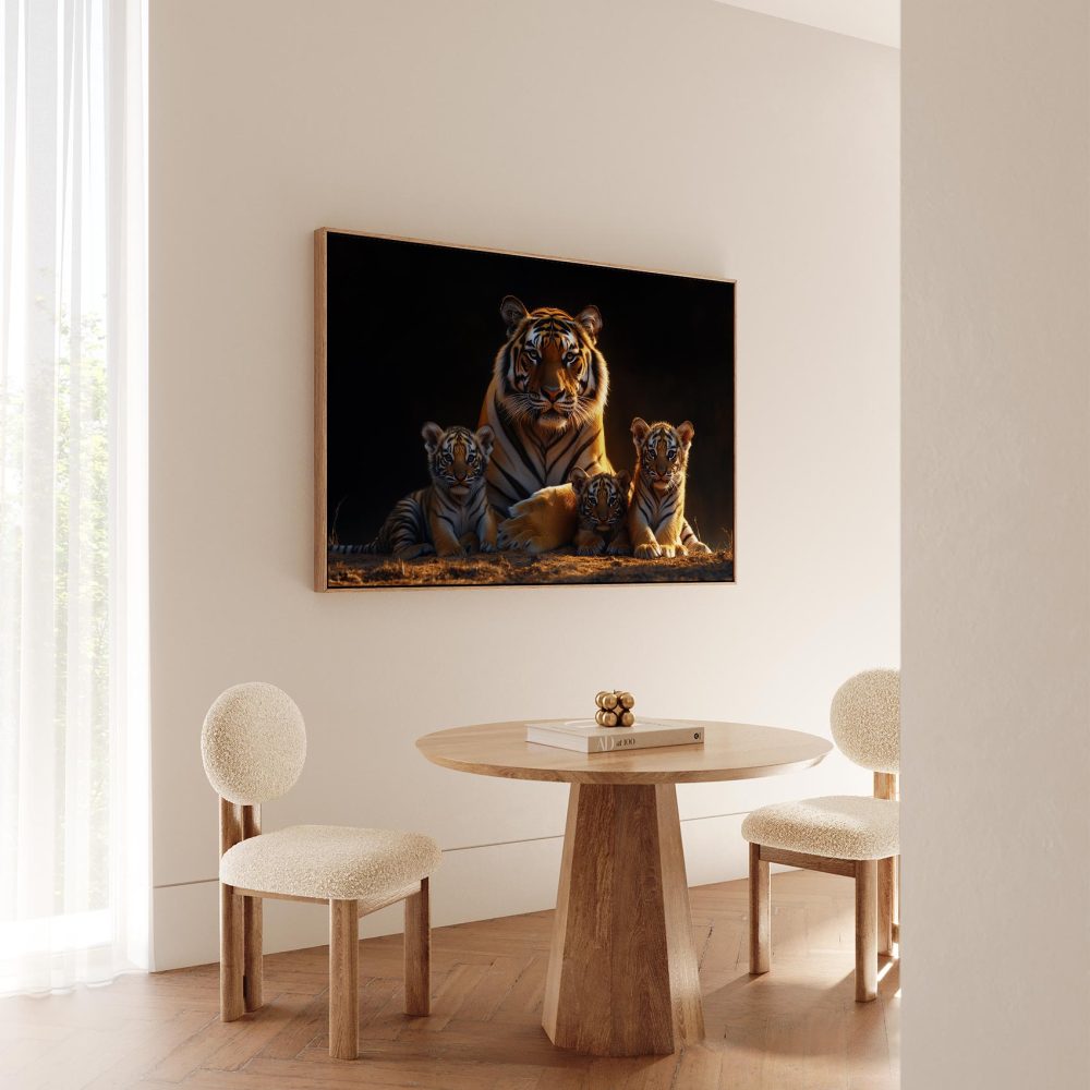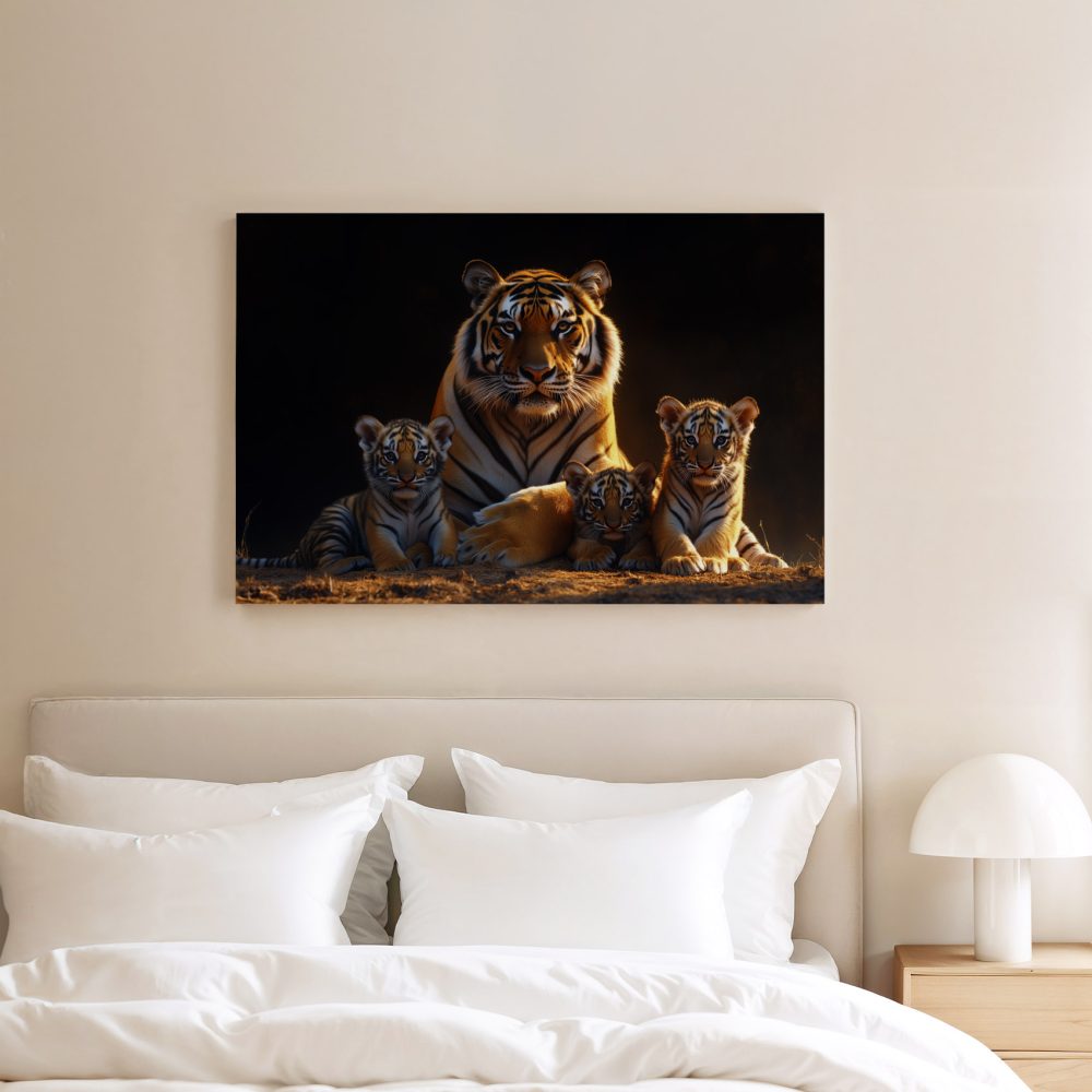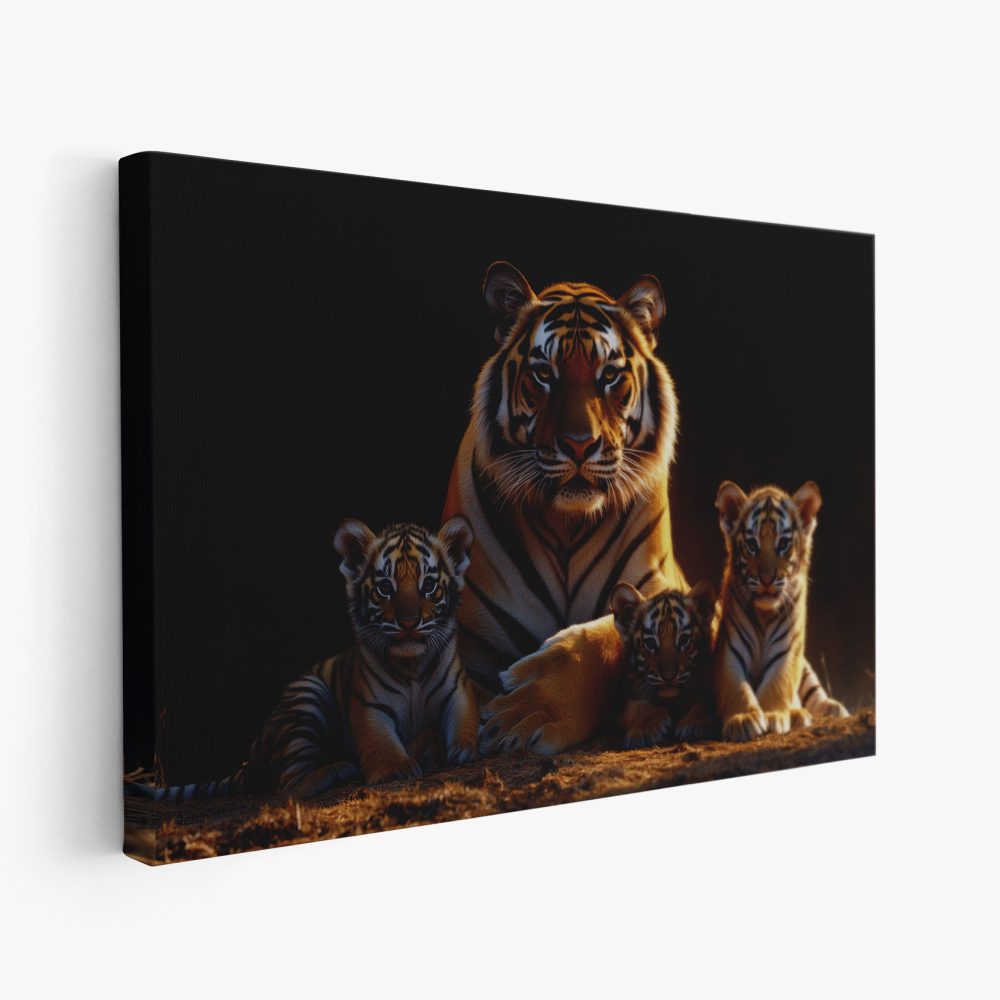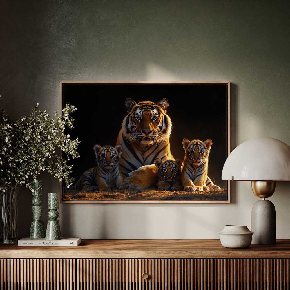 Terug naar collectie / Schilderijen / Dieren Schilderij / Rustige tijgerfamilie in schemer