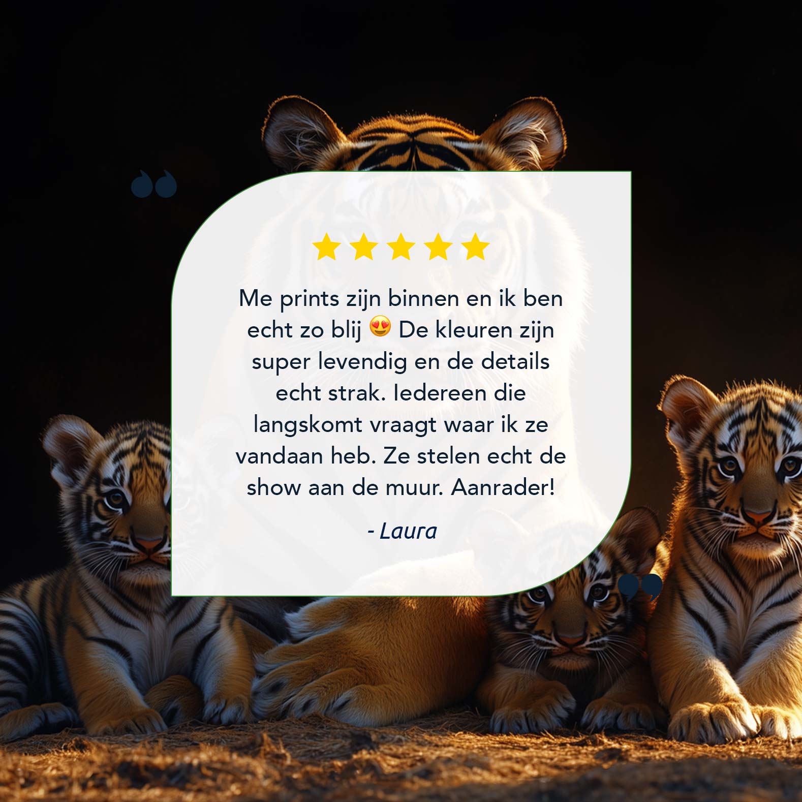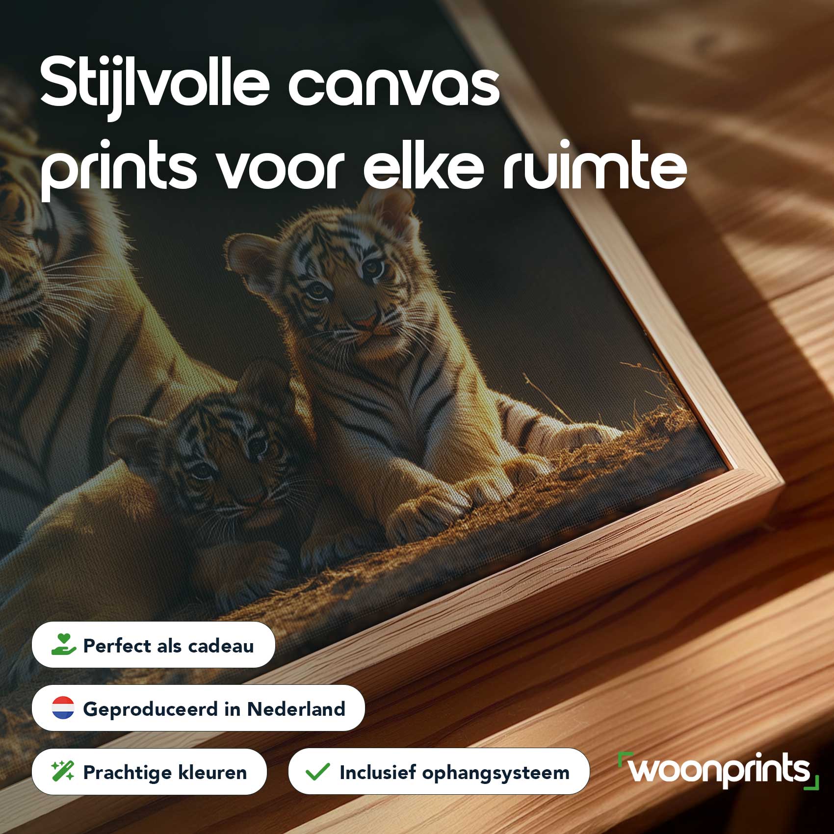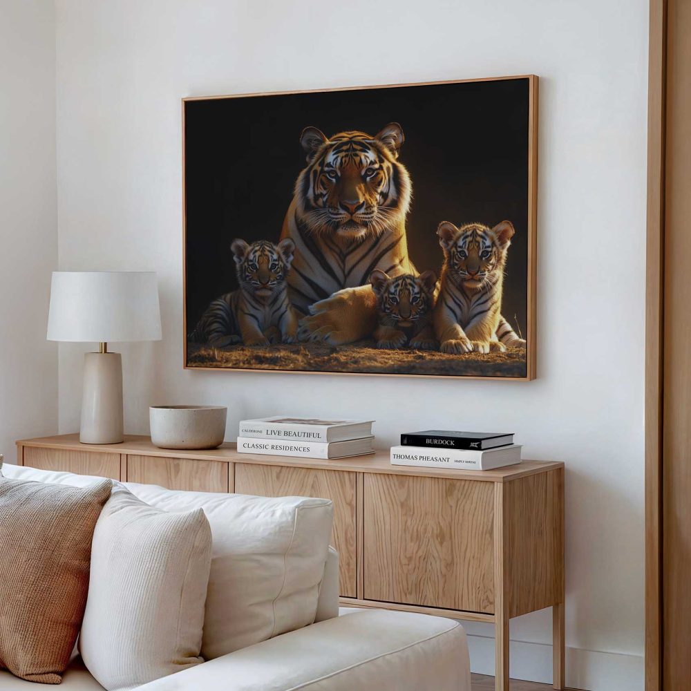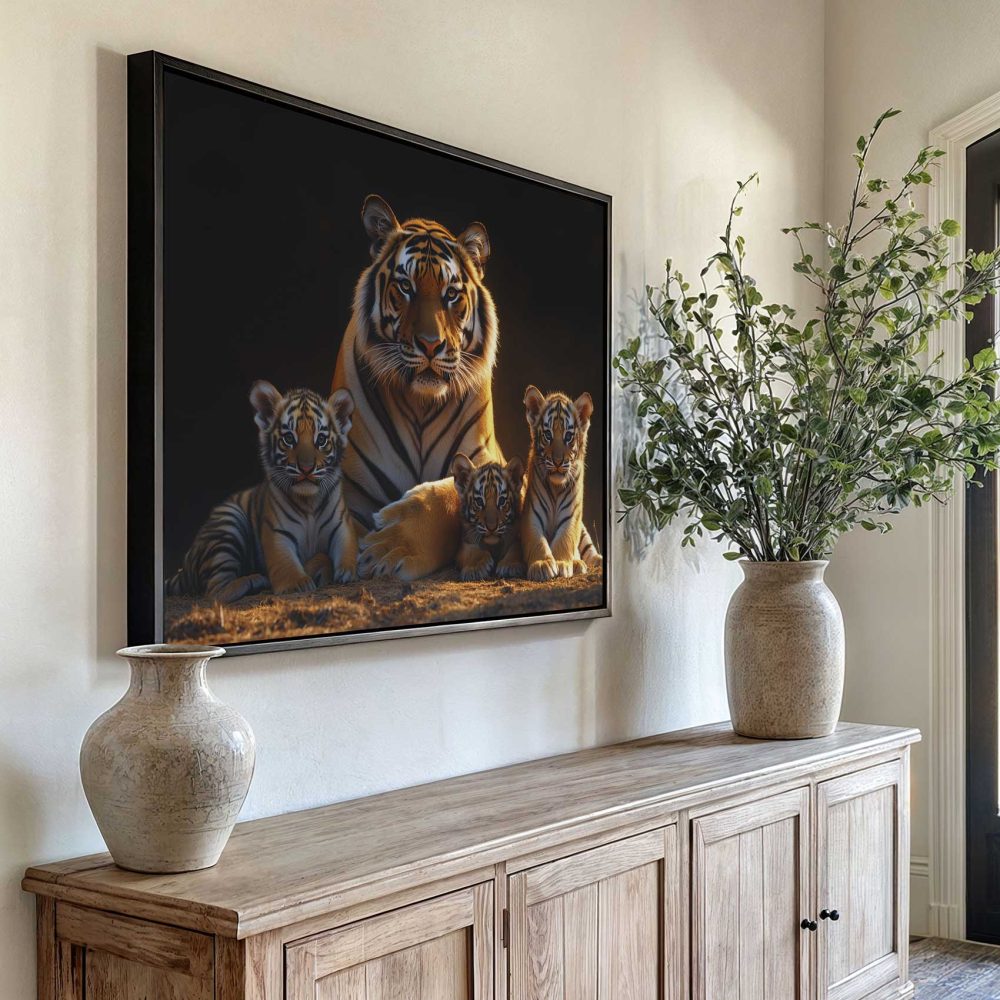 Terug naar collectie / Schilderijen / Dieren Schilderij / Rustige tijgerfamilie in schemer