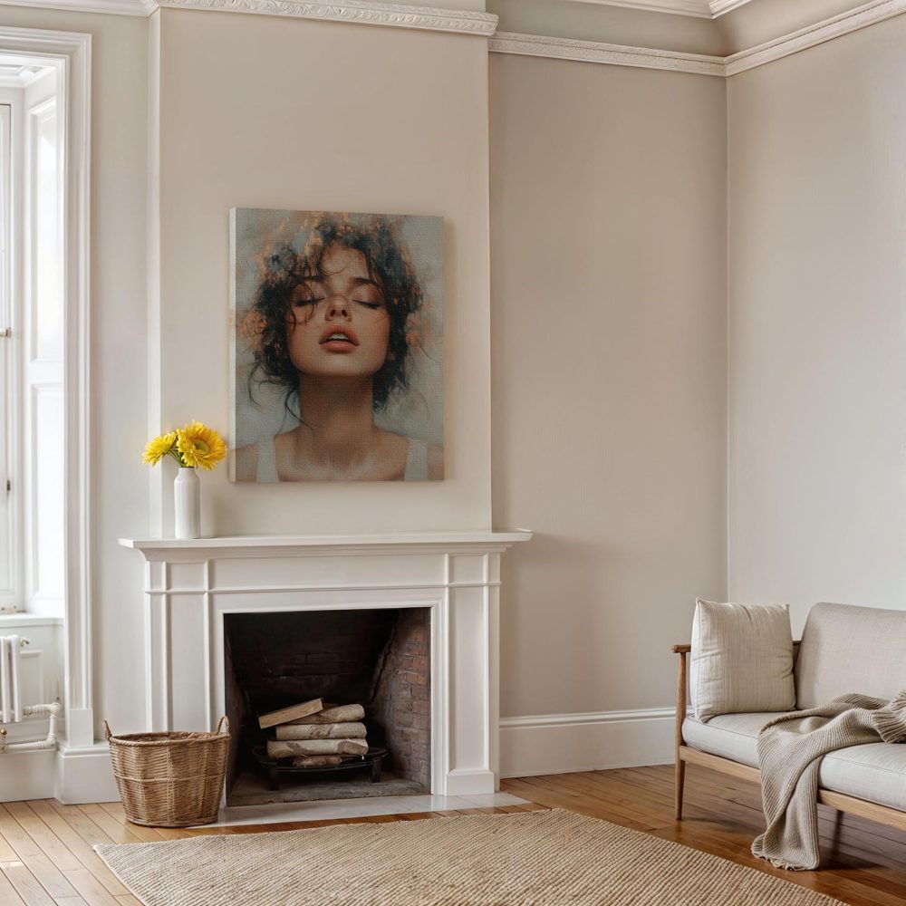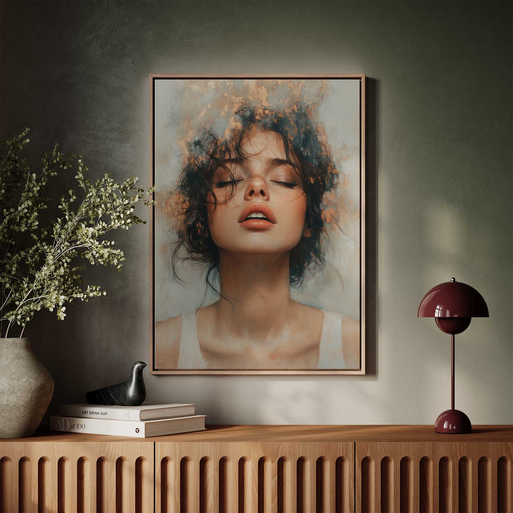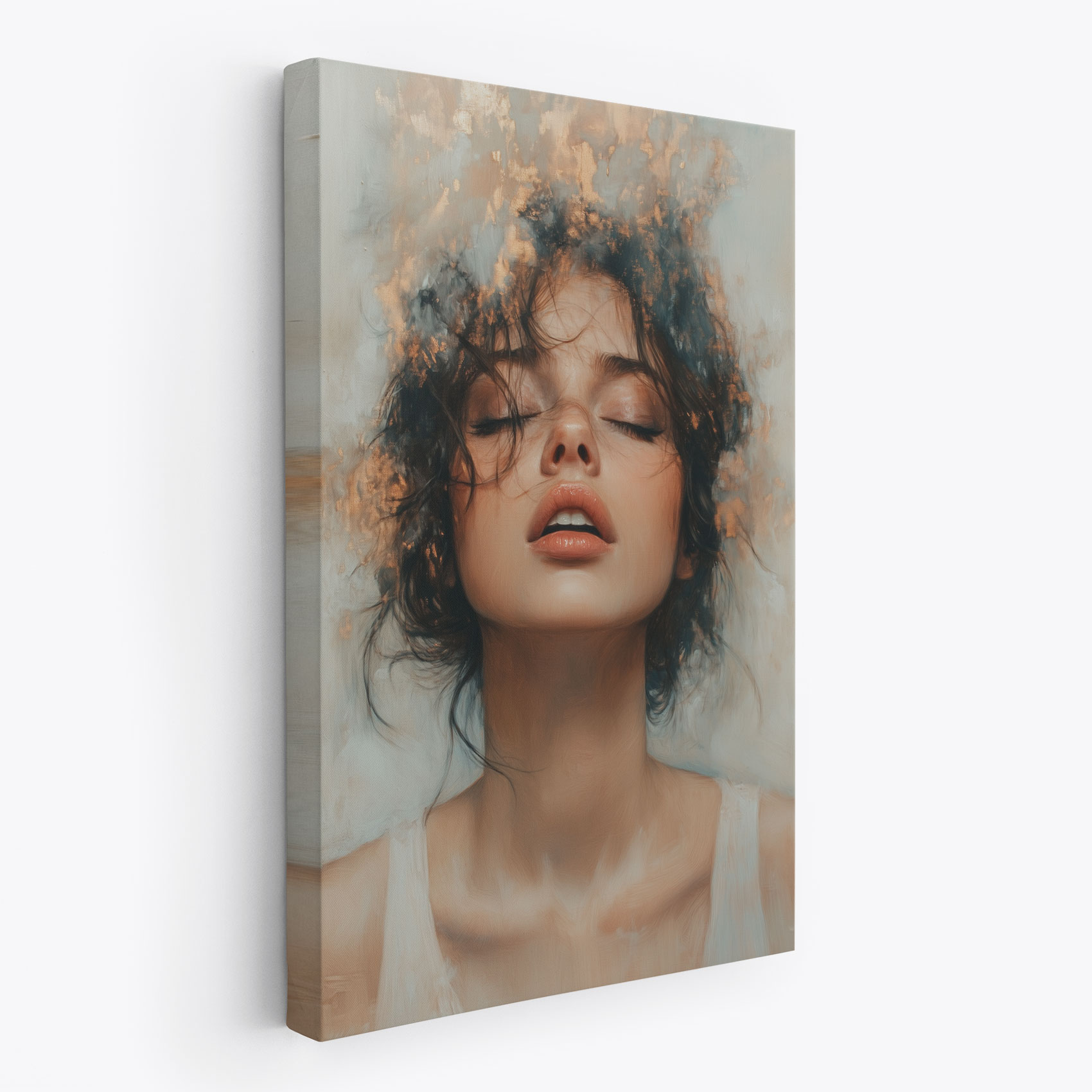 Terug naar collectie / Schilderijen / Fotografie Schilderij / Rustige vrouw met gesloten ogen