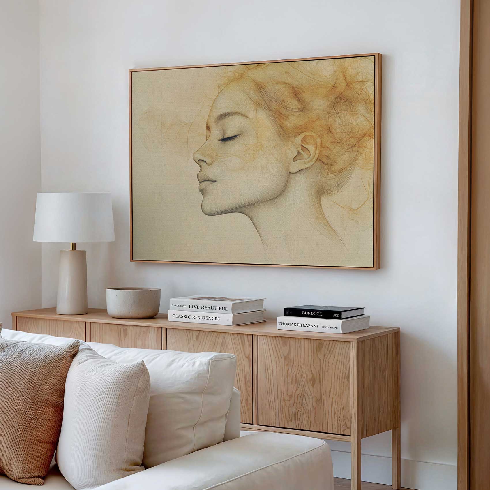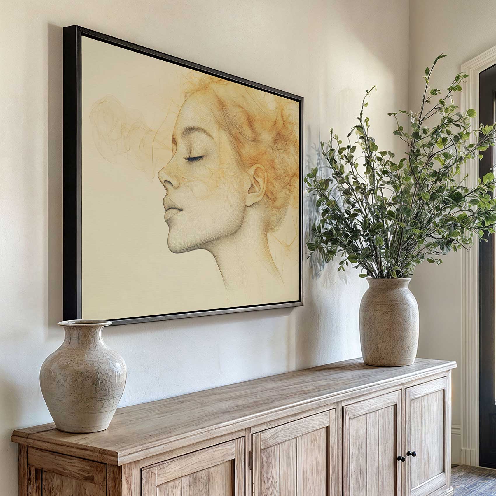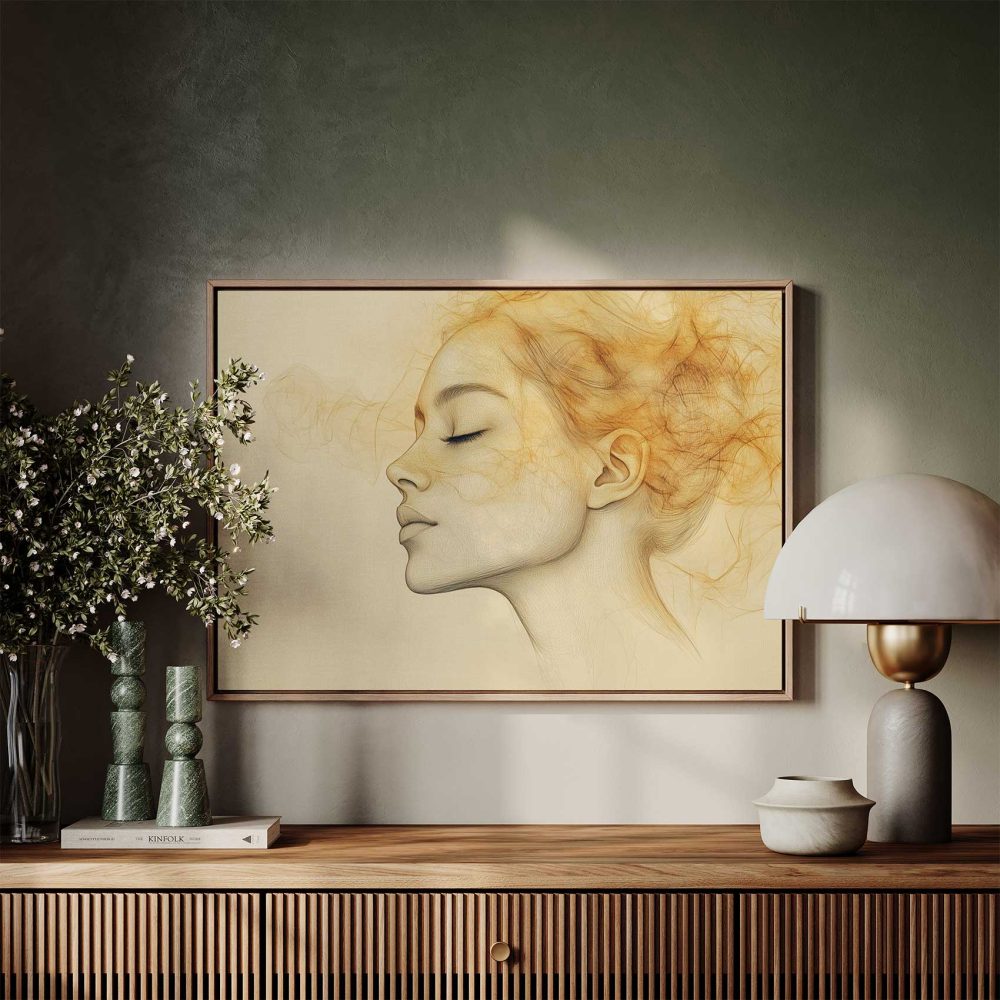 Terug naar collectie / Schilderijen / Figuren en Vormen Schilderij / Rustige vrouw met vloeiend haar