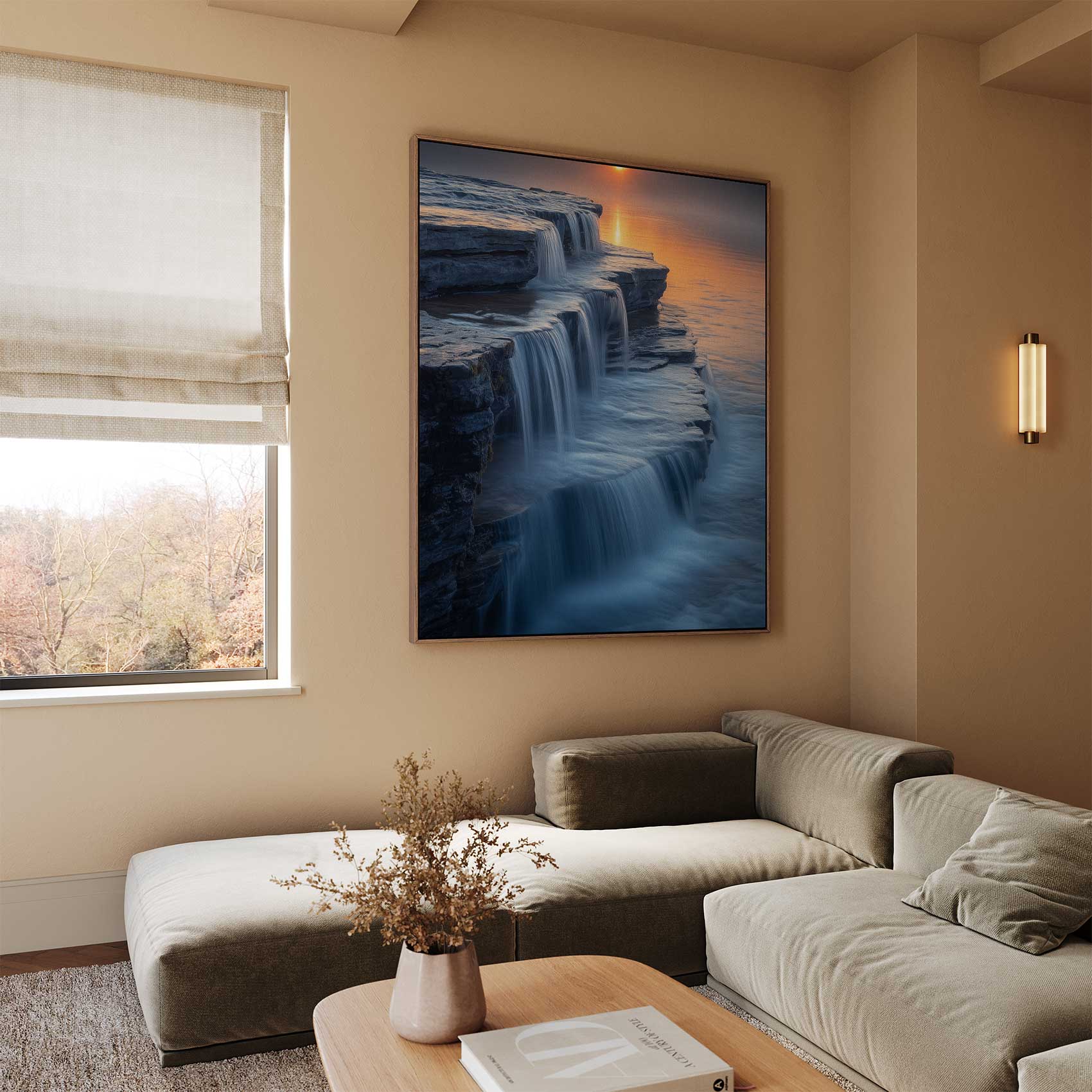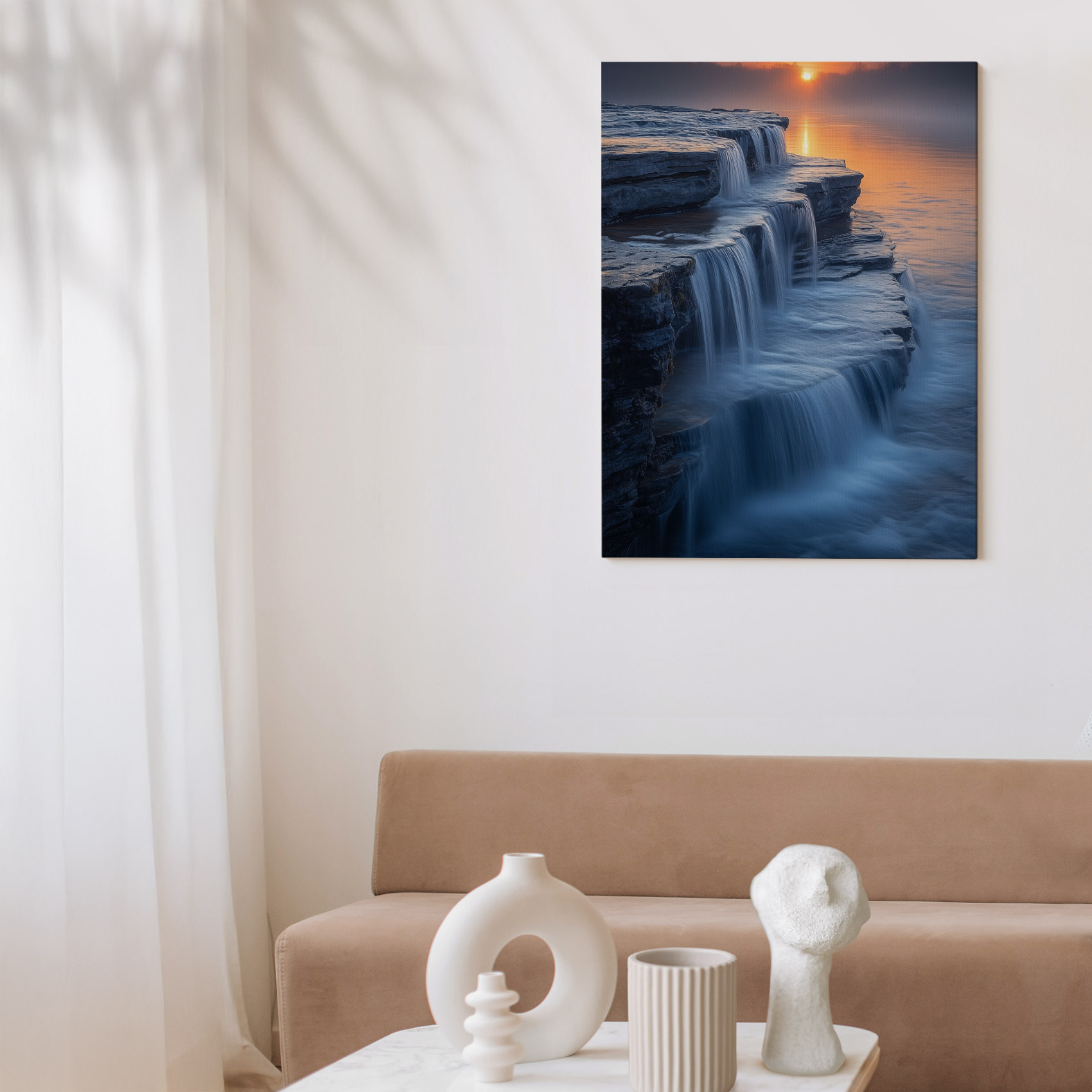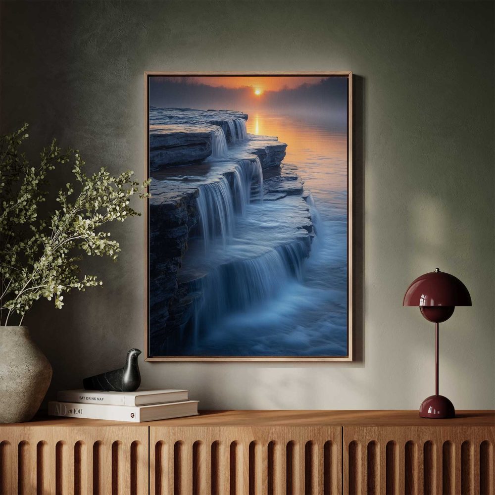 Terug naar collectie / Schilderijen / Bergen Schilderij / Rustige waterval bij zonsondergang