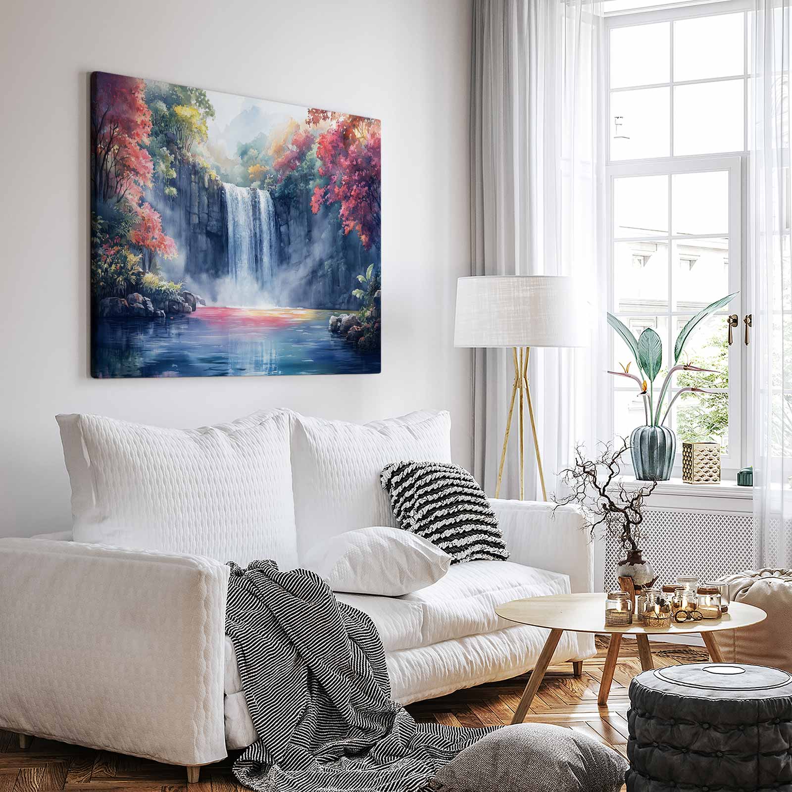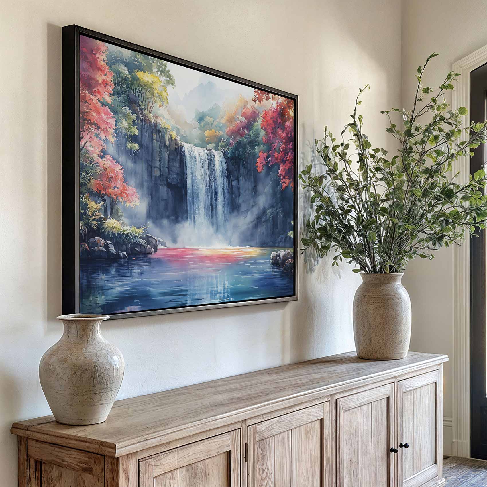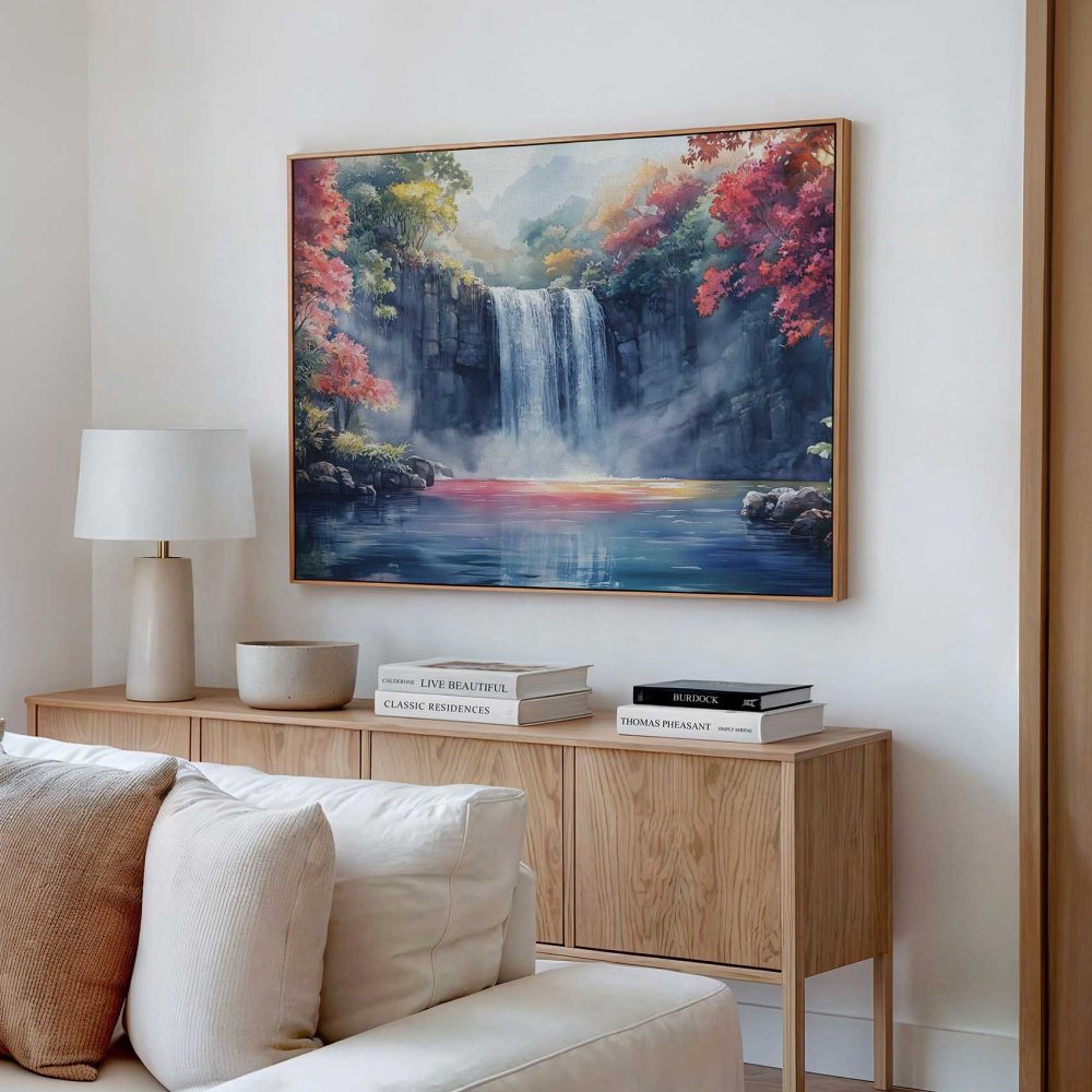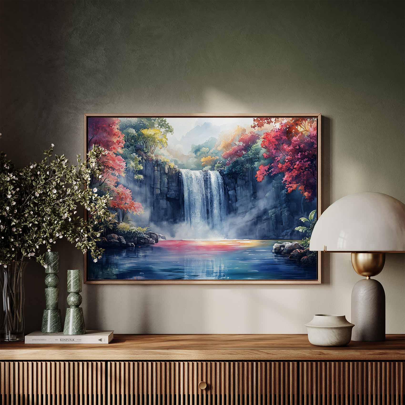 Terug naar collectie / Schilderijen / Bergen Schilderij / Rustige Waterval in Natuur