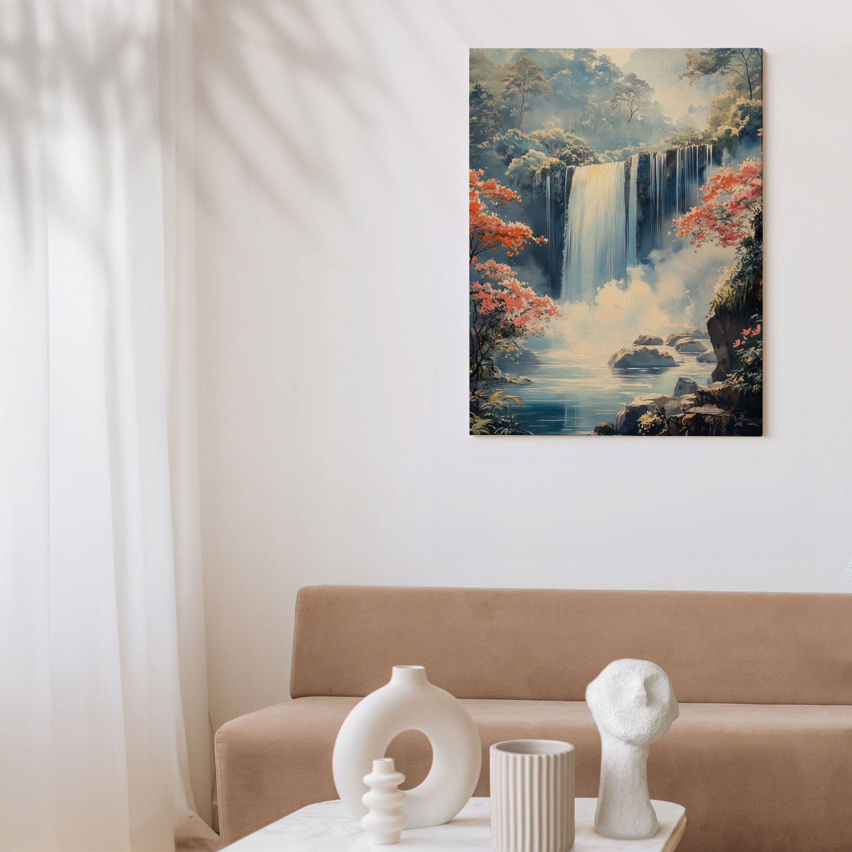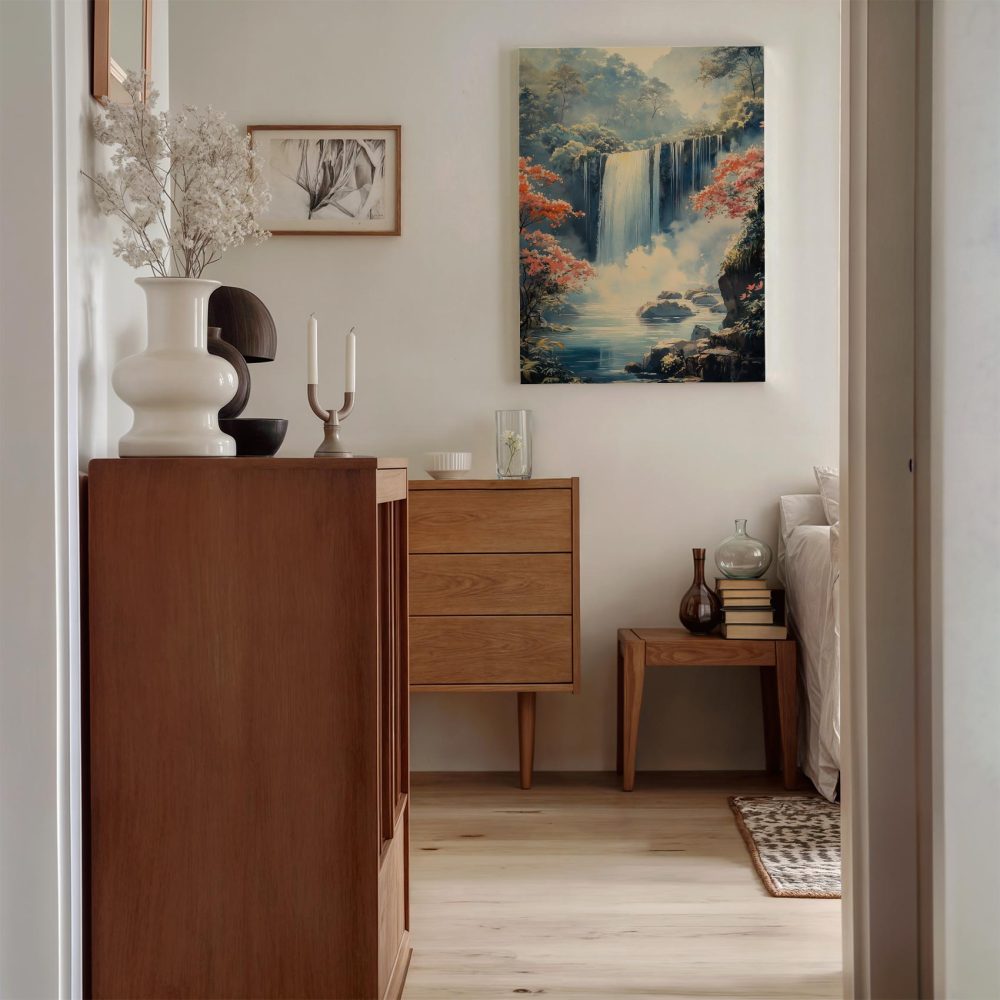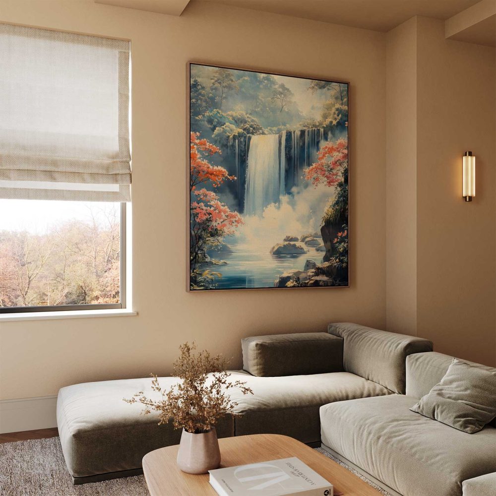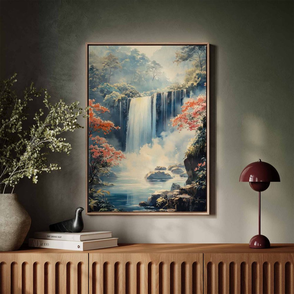 Terug naar collectie / Schilderijen / Bergen Schilderij / Rustige Waterval in Natuur
