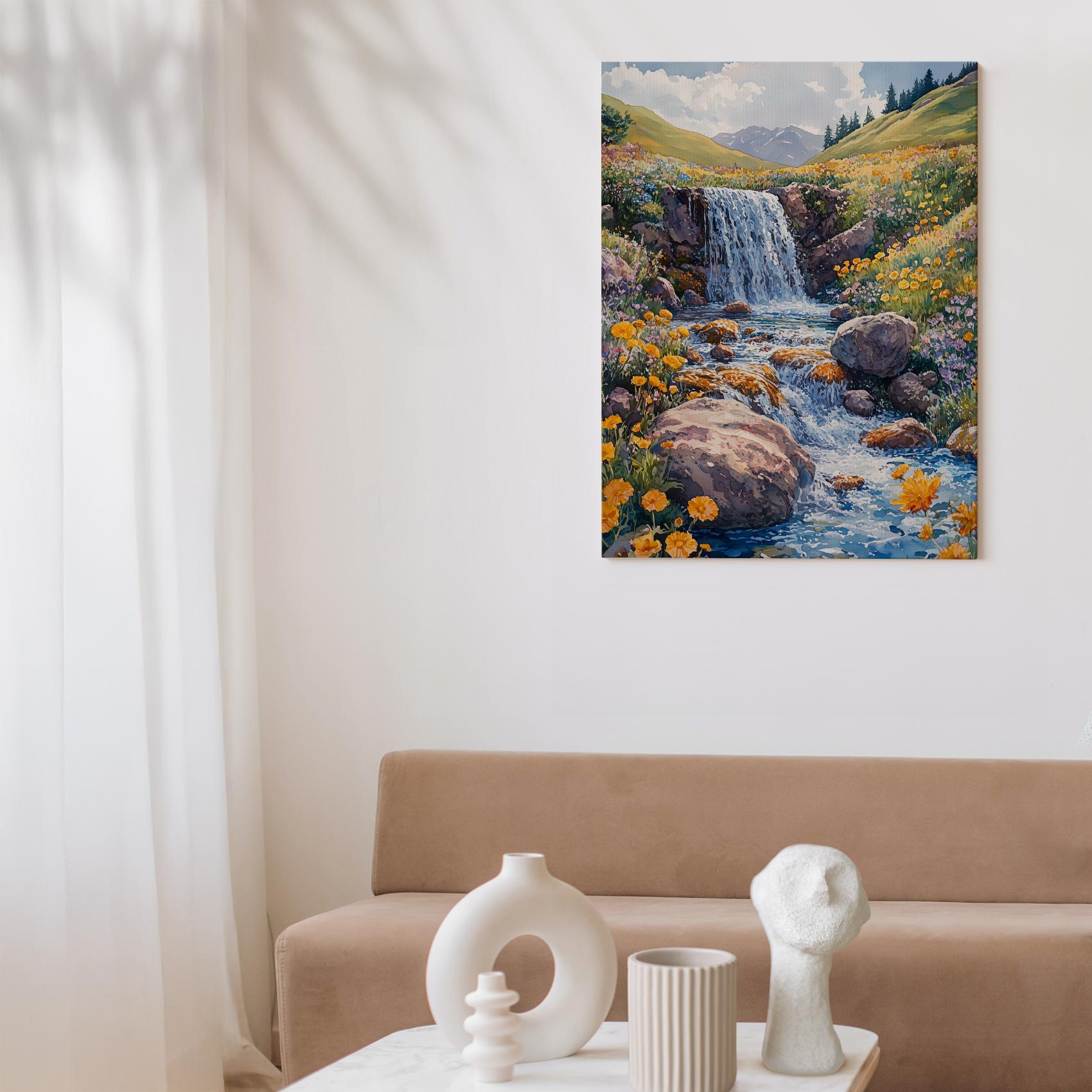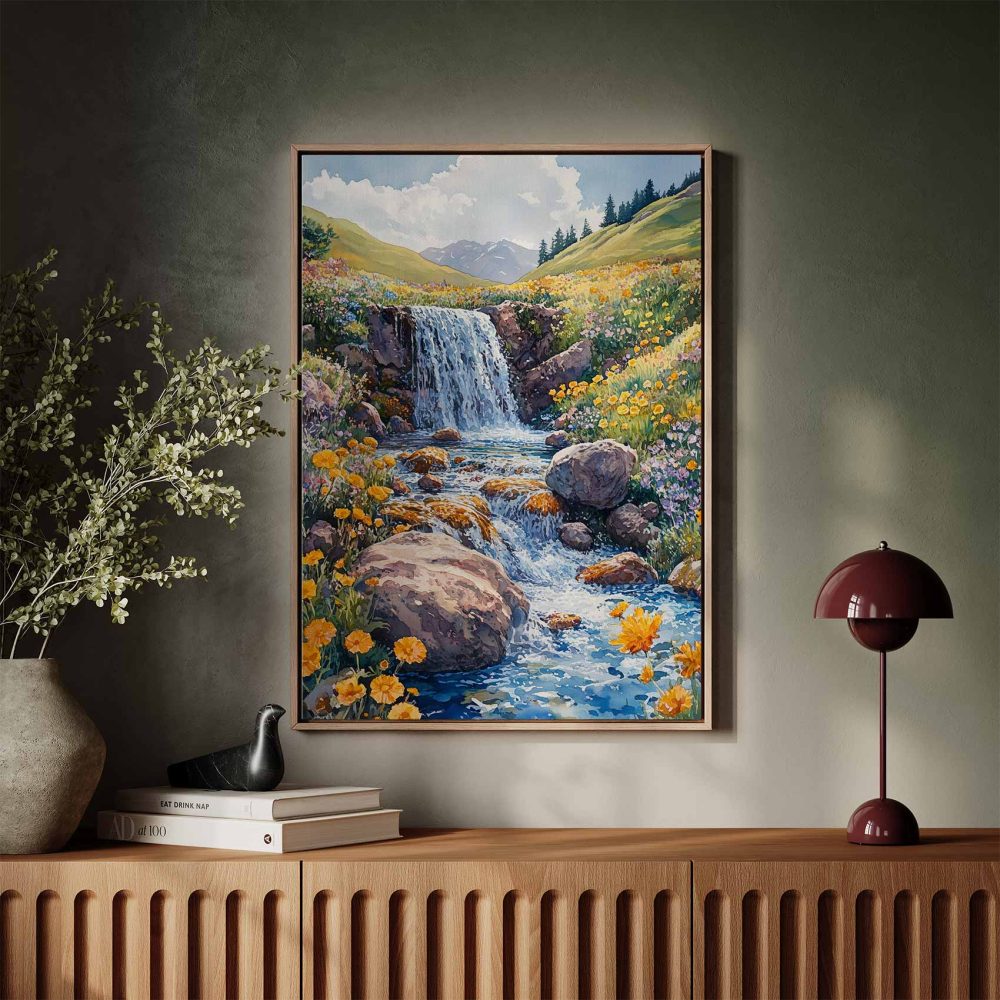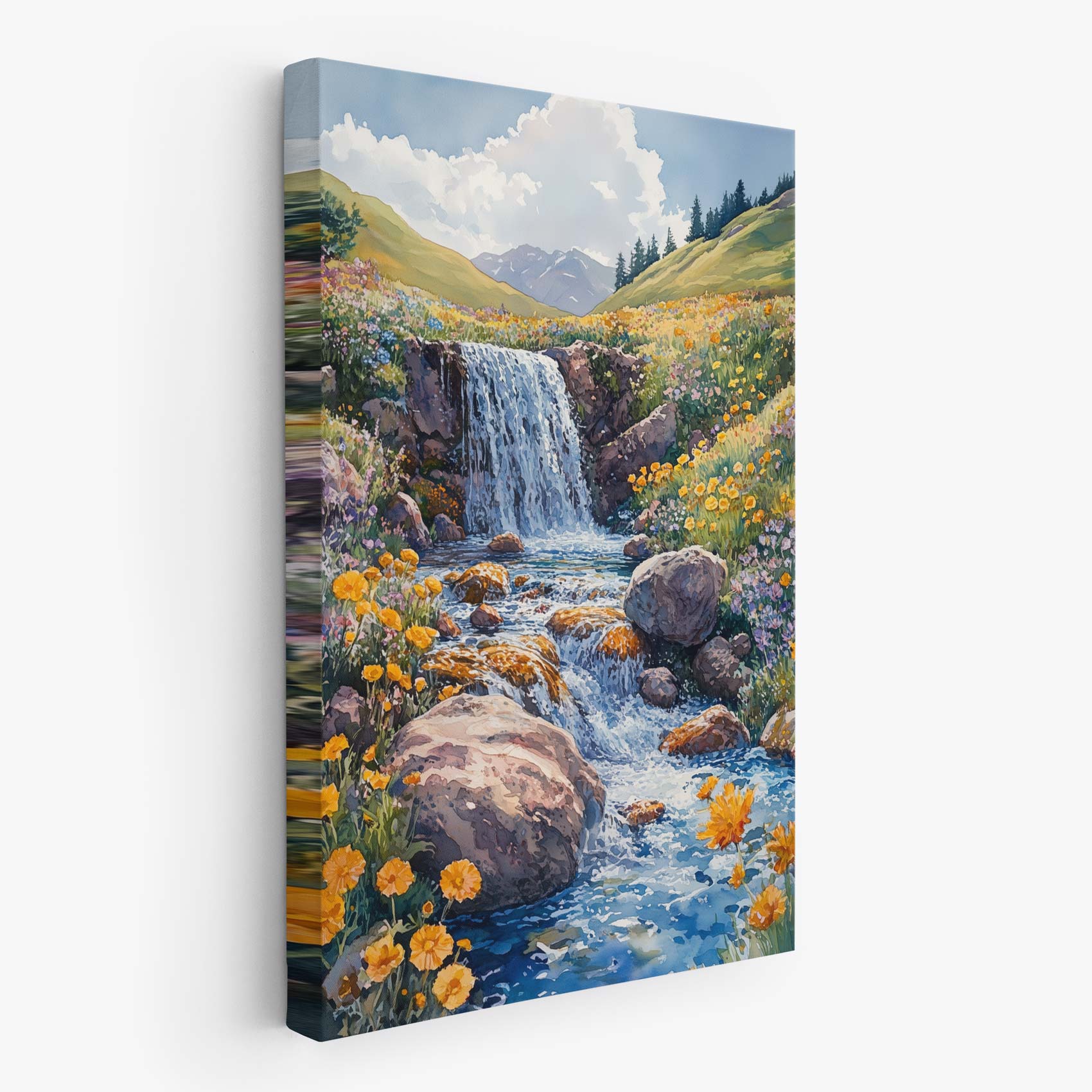 Terug naar collectie / Schilderijen / Bergen Schilderij / Rustige waterval waterverfschilderij