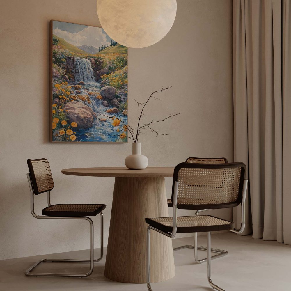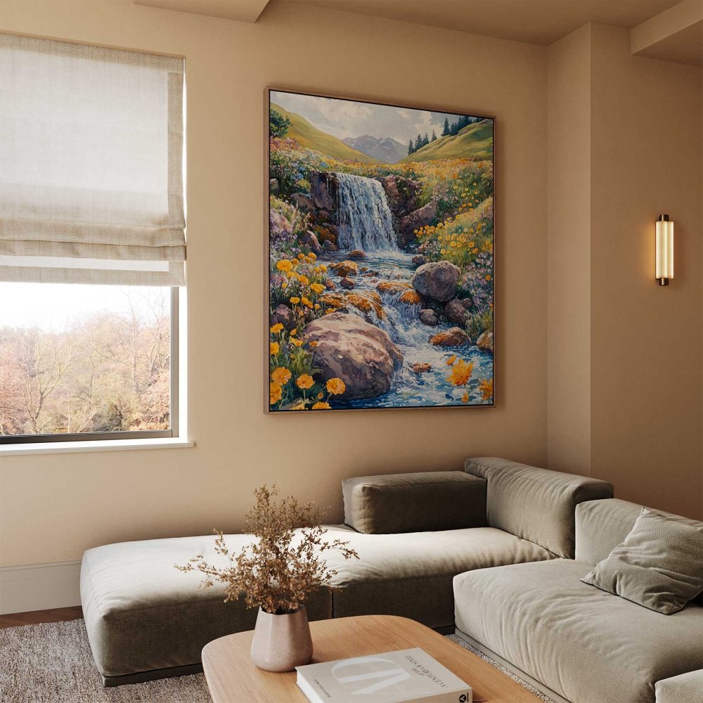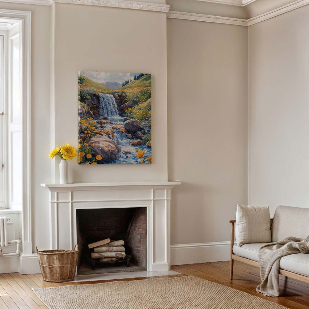 Terug naar collectie / Schilderijen / Bergen Schilderij / Rustige waterval waterverfschilderij