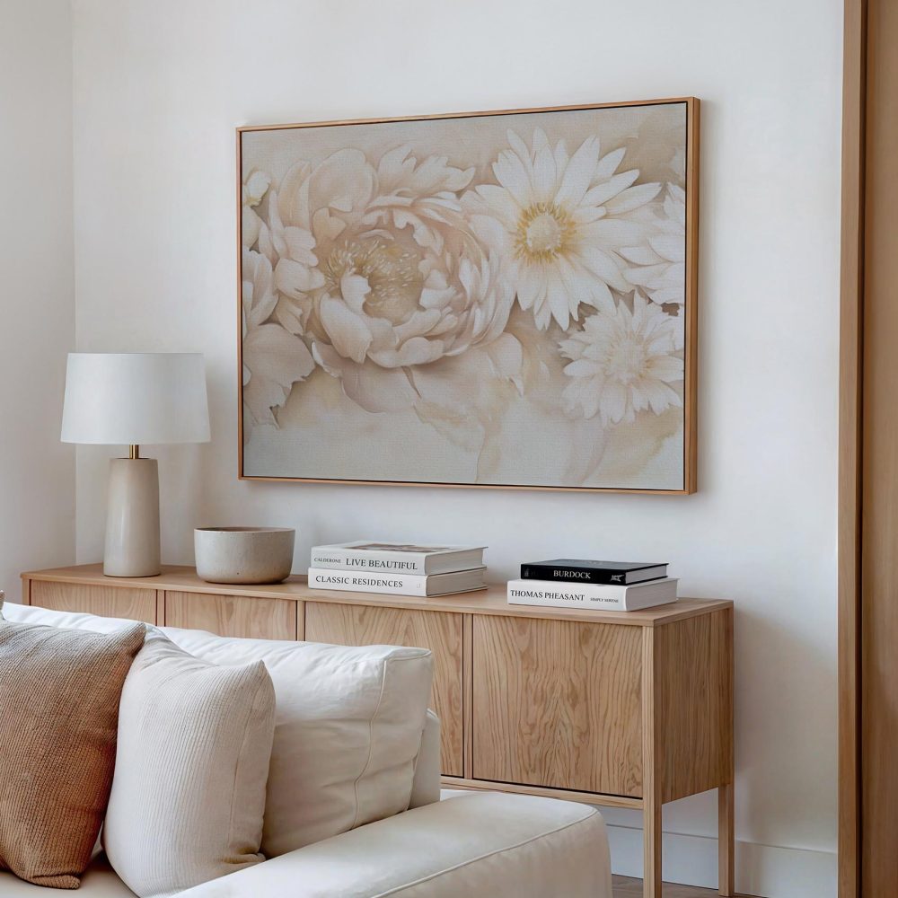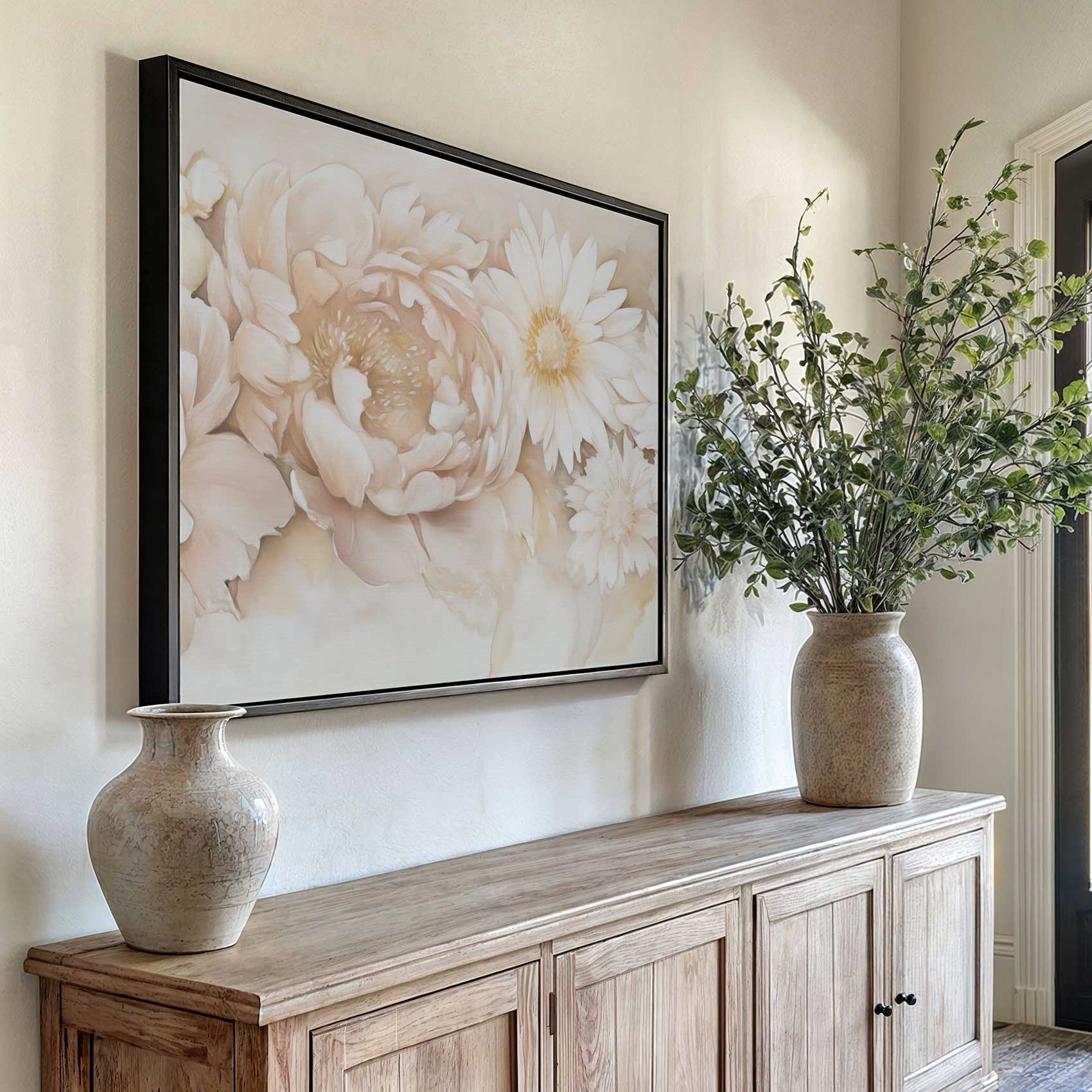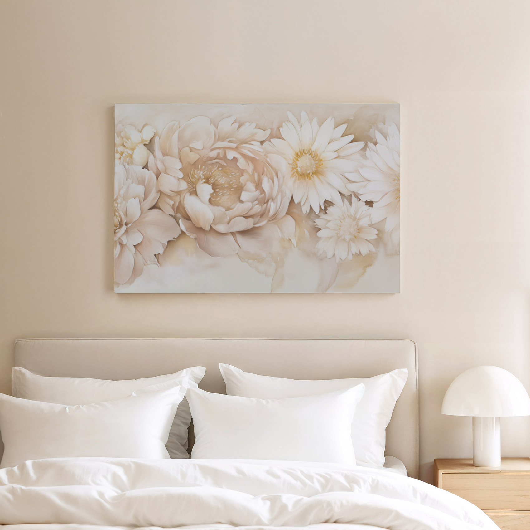 Terug naar collectie / Schilderijen / Bloemen Schilderij / Rustige witte bloemencompositie