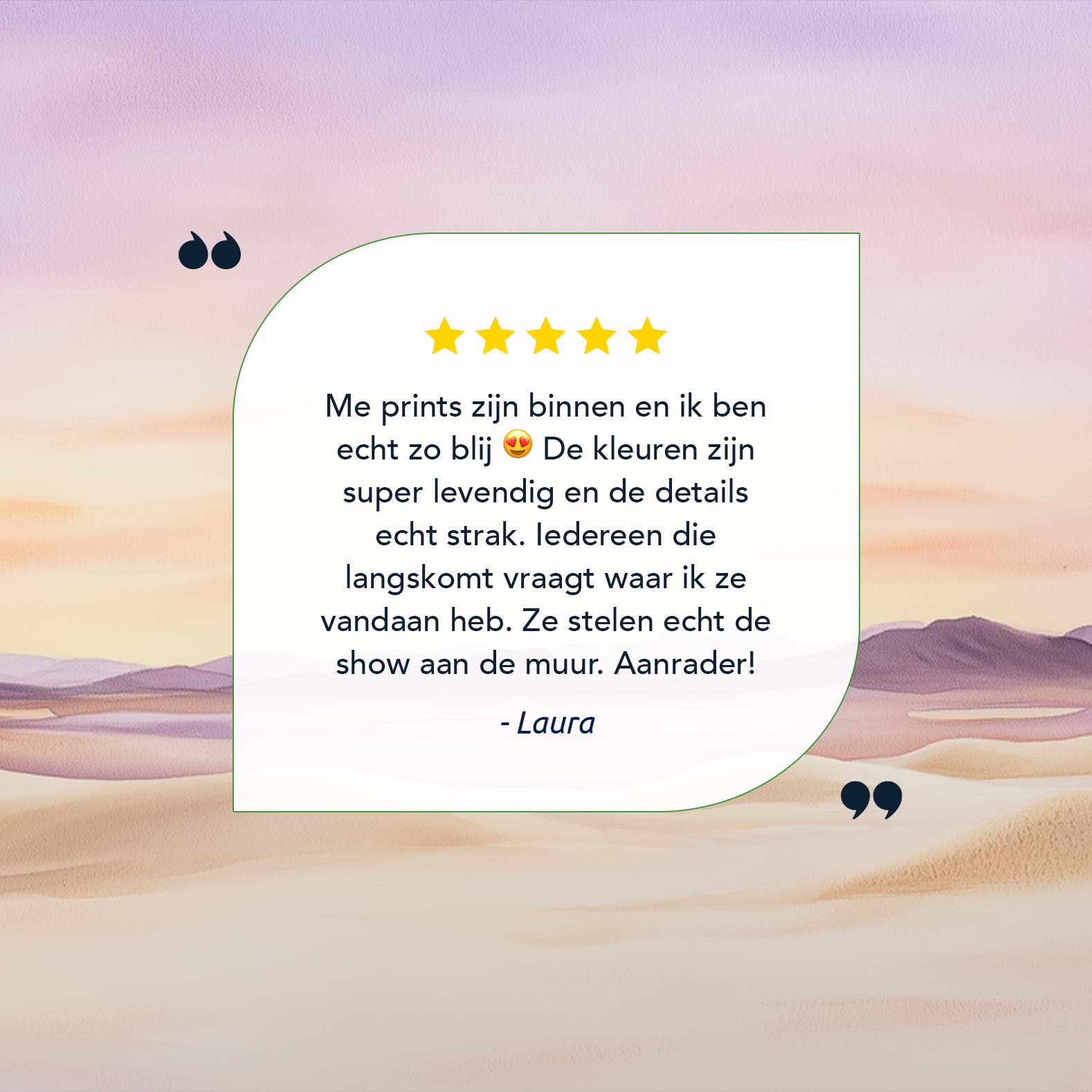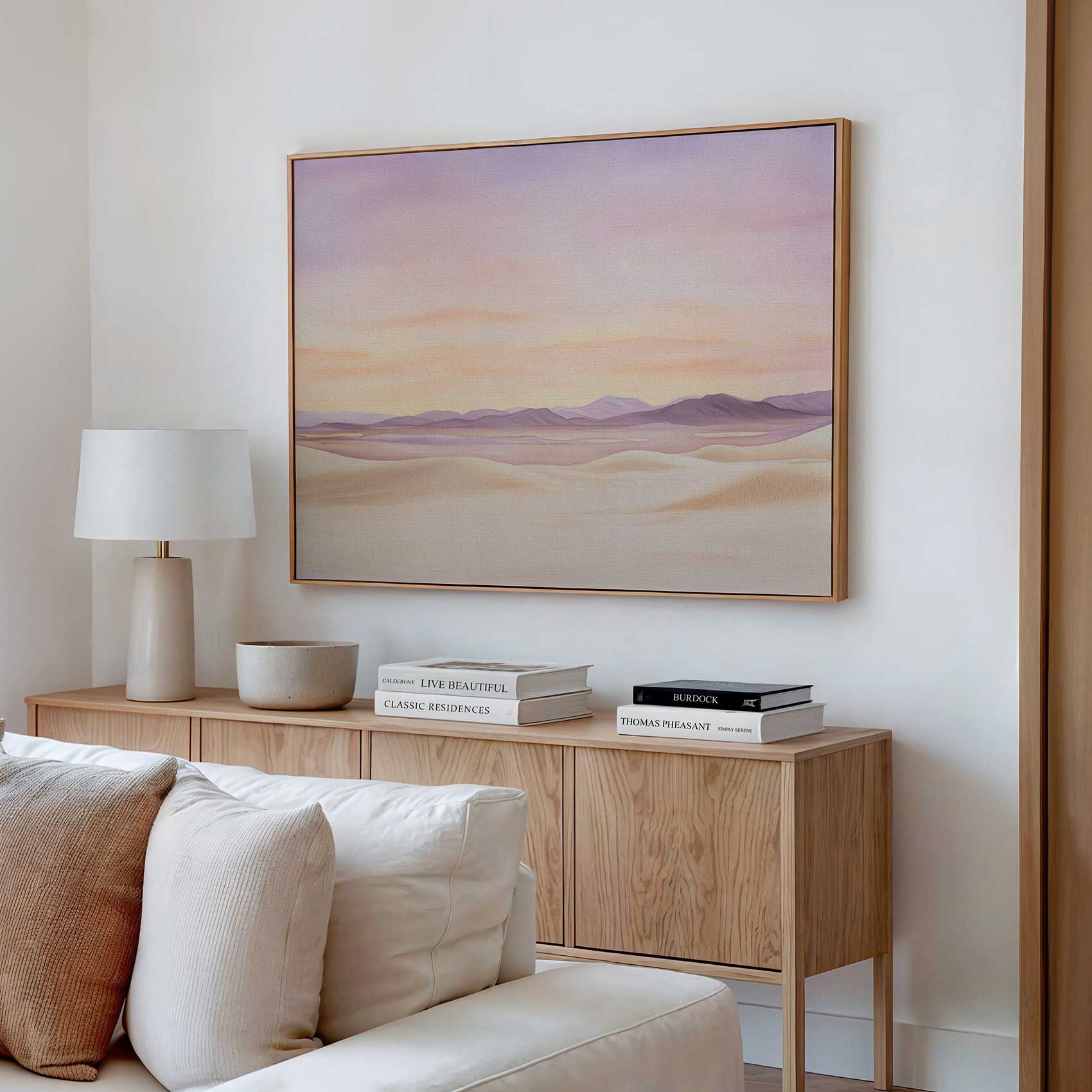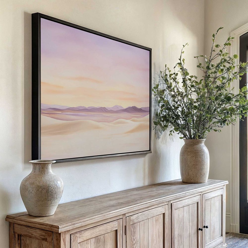 Terug naar collectie / Schilderijen / Bergen Schilderij / Rustige woestijnzonsondergang