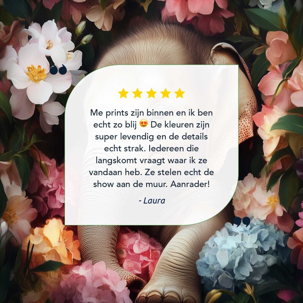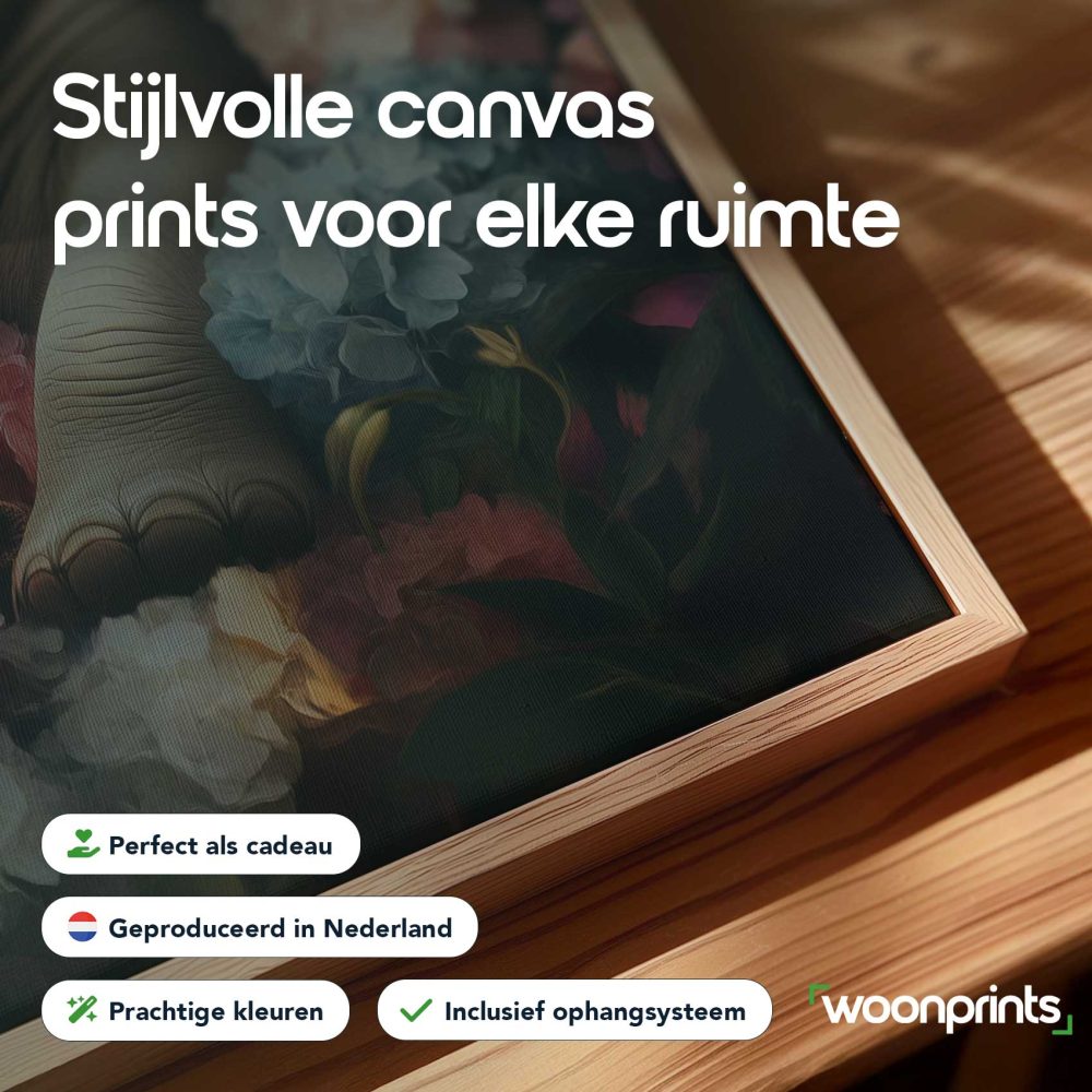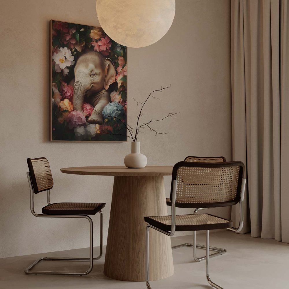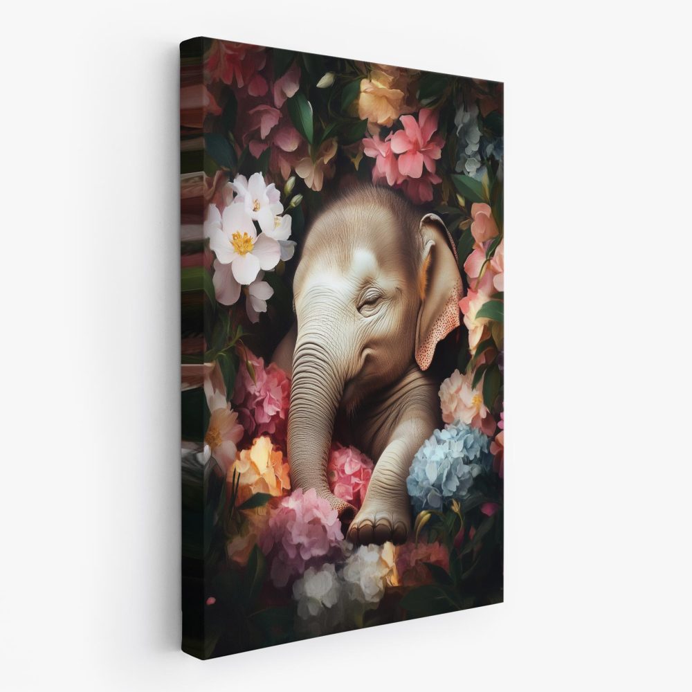 Terug naar collectie / Schilderijen / Bloemen Schilderij / Schattige olifant in bloemenzee