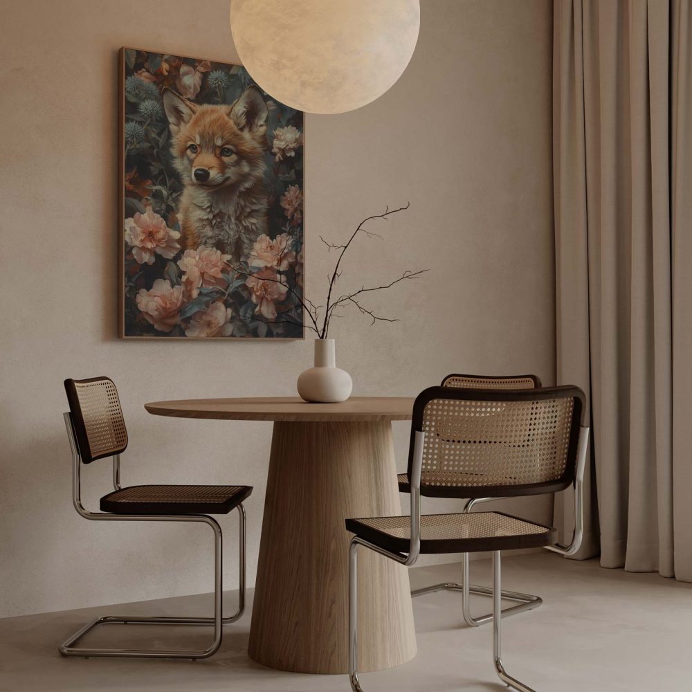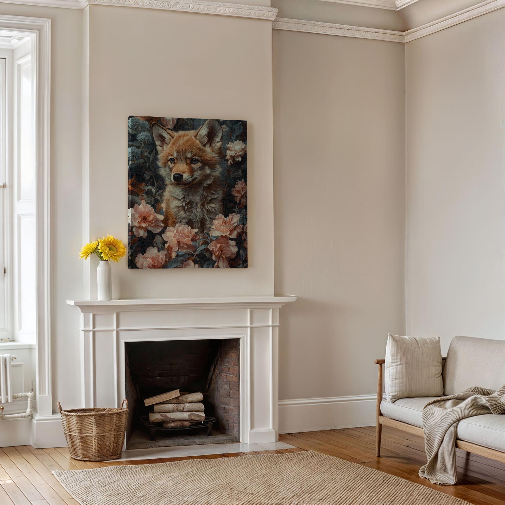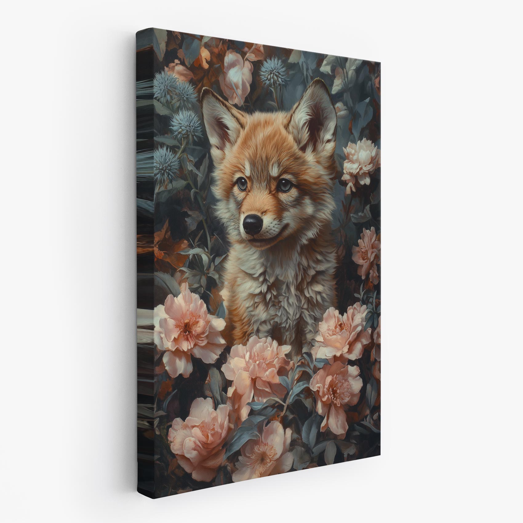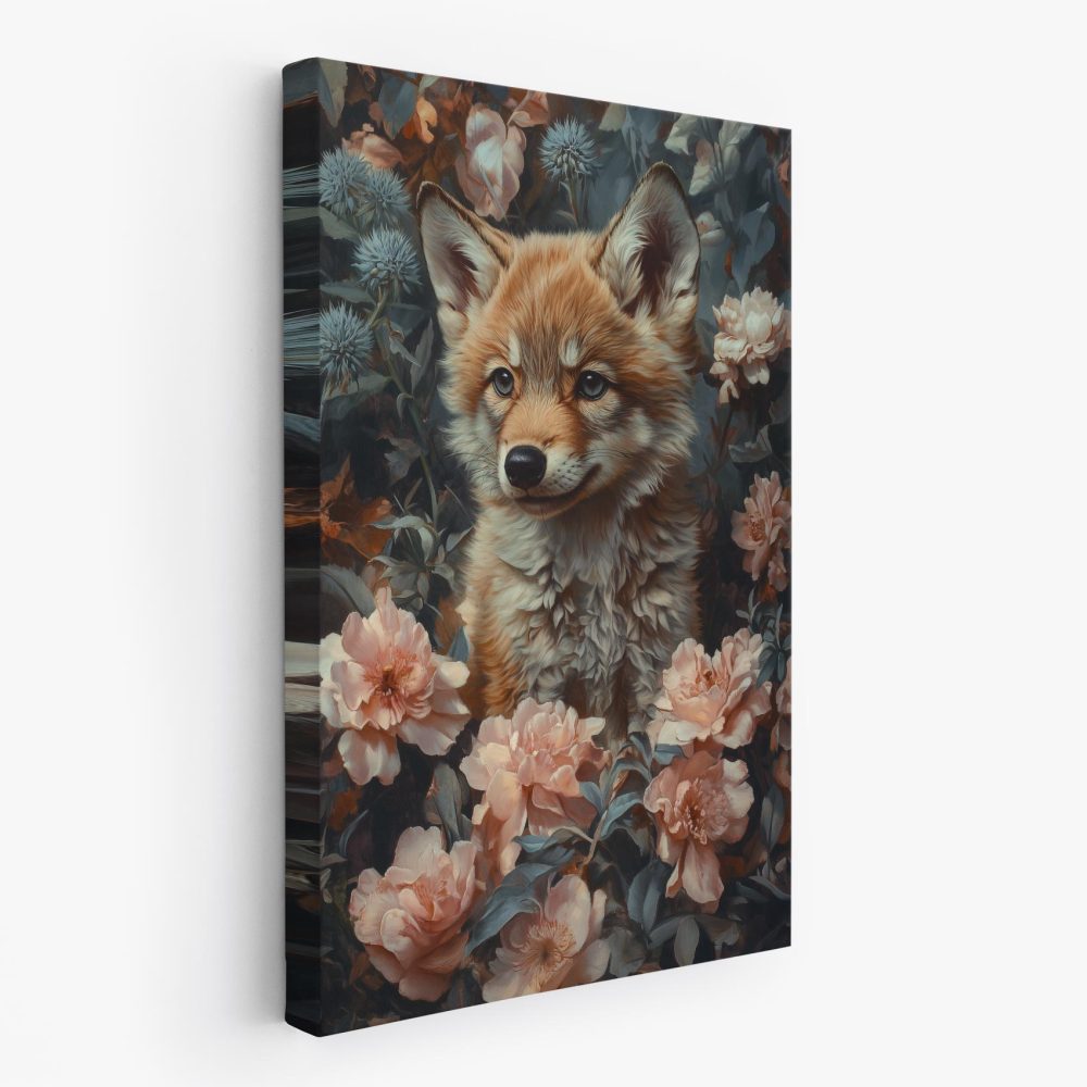 Terug naar collectie / Schilderijen / Bloemen Schilderij / Schattige vos in bloemenveld