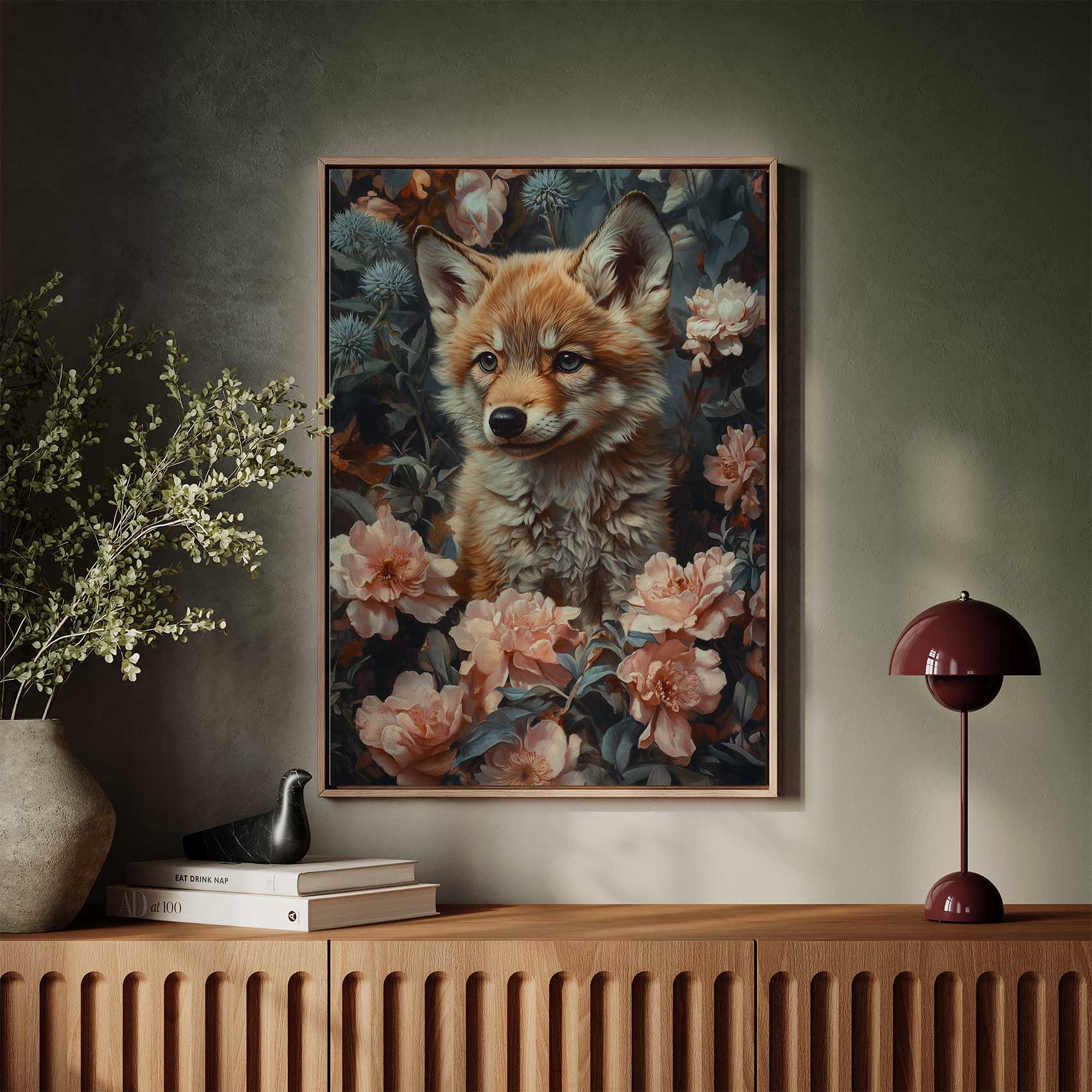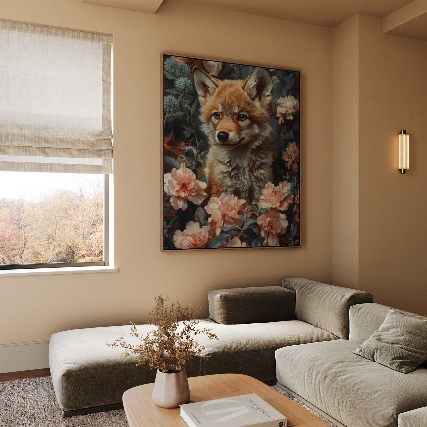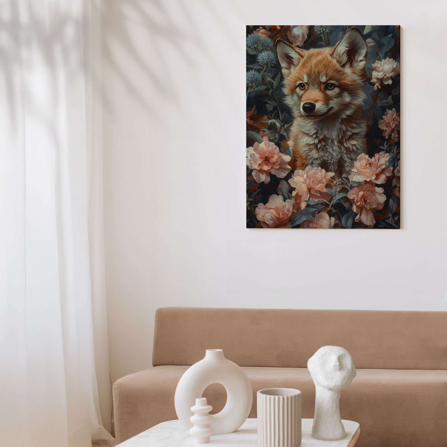 Terug naar collectie / Schilderijen / Bloemen Schilderij / Schattige vos in bloemenveld