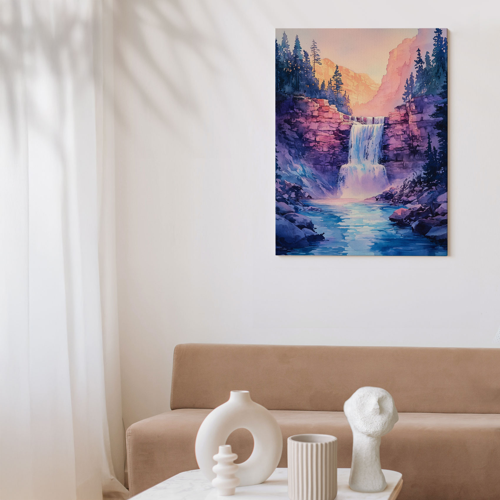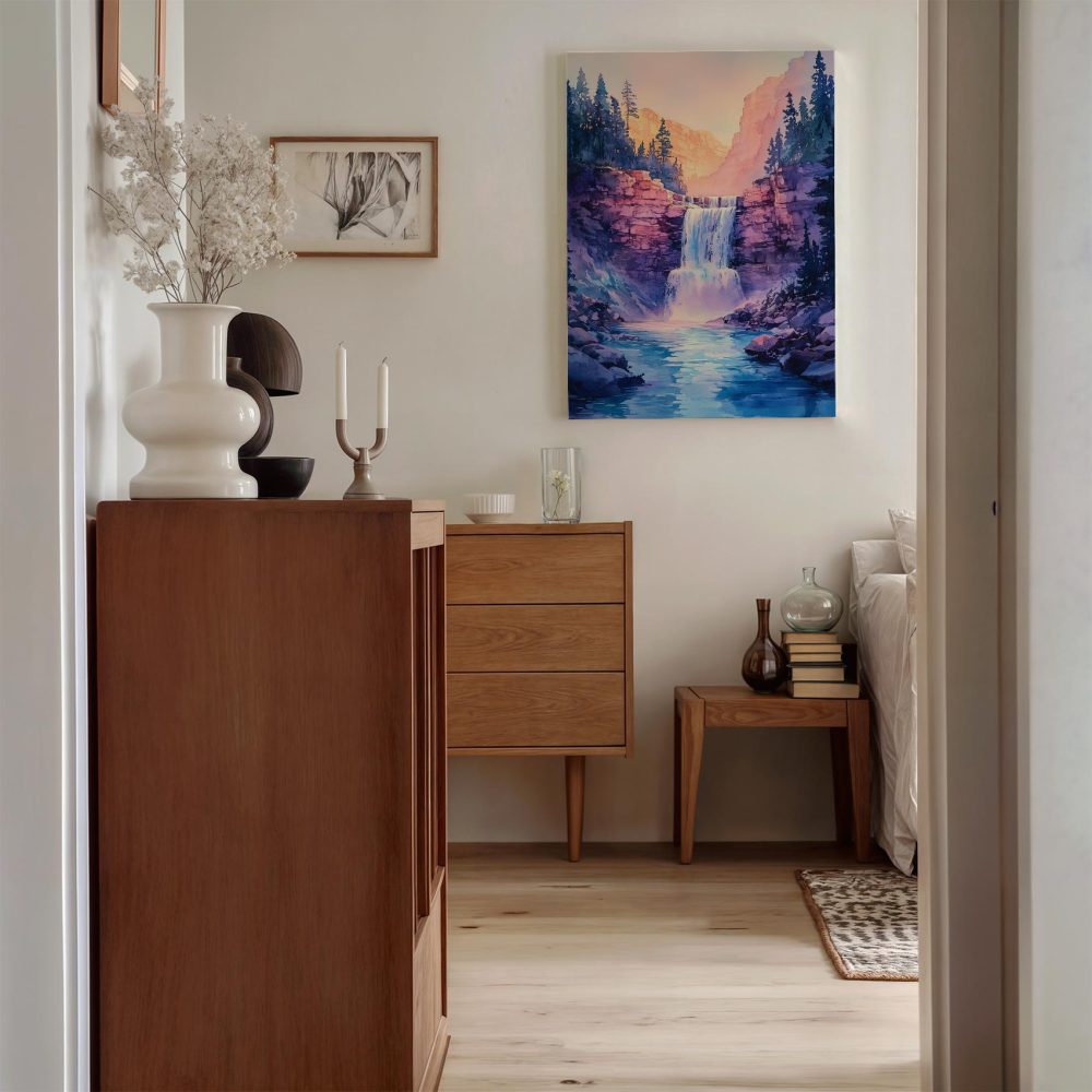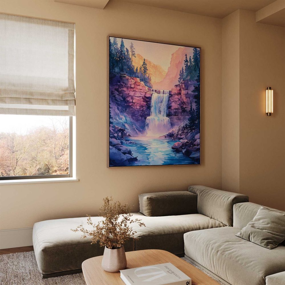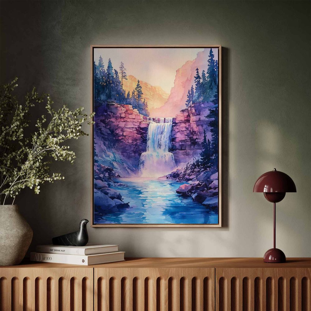 Terug naar collectie / Schilderijen / Bergen Schilderij / Serene Bergwaterval Schilderij