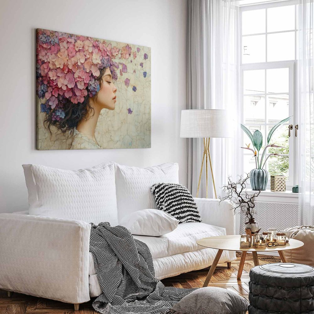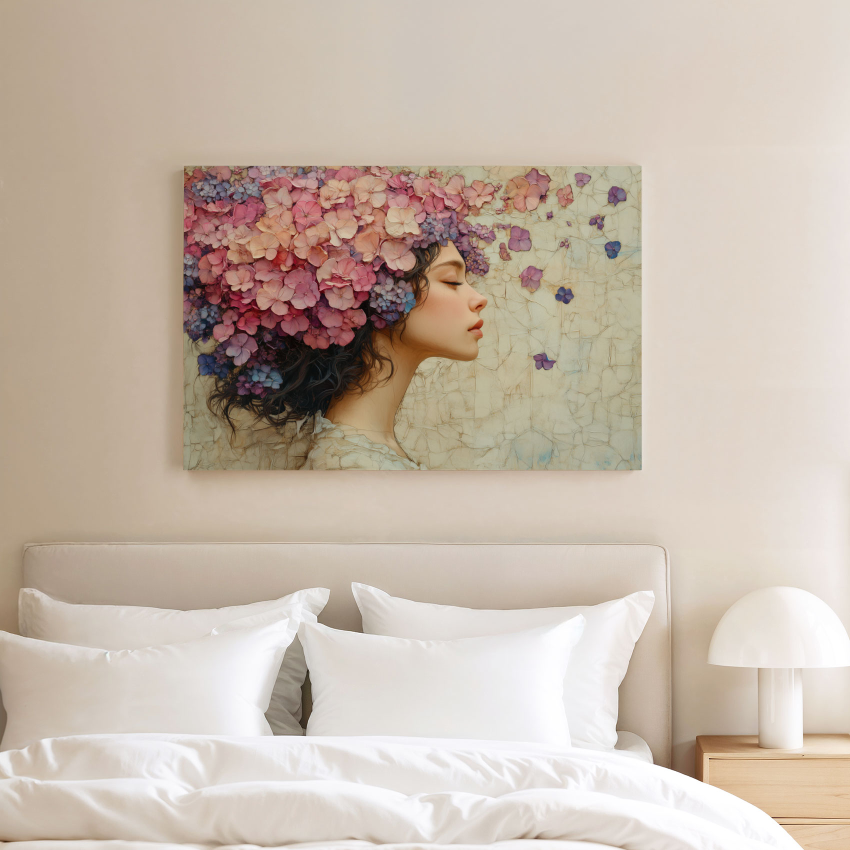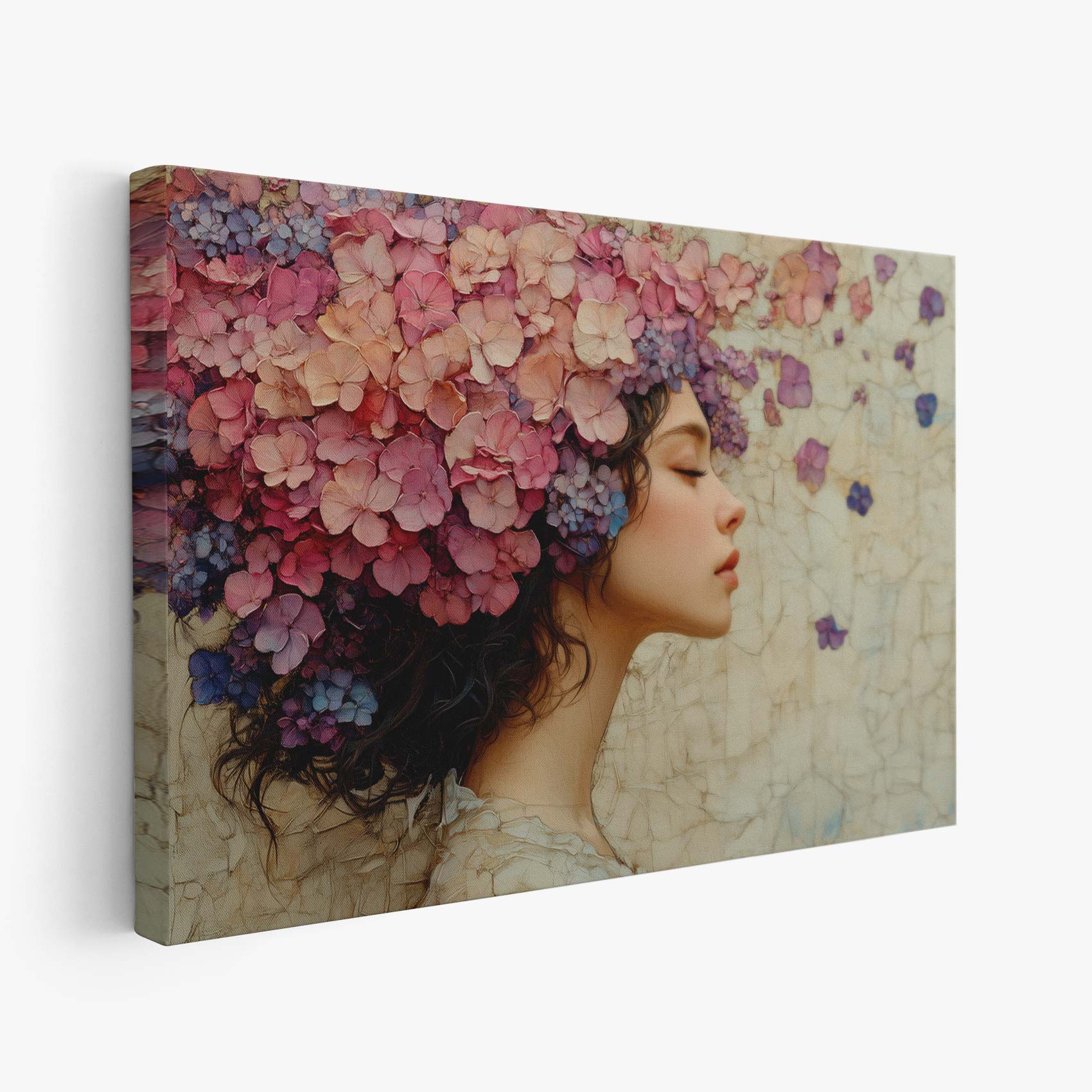 Terug naar collectie / Schilderijen / Bloemen Schilderij / Serene bloemenkroon vrouw