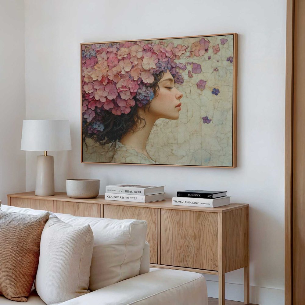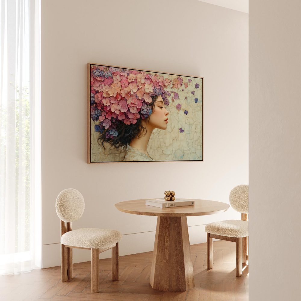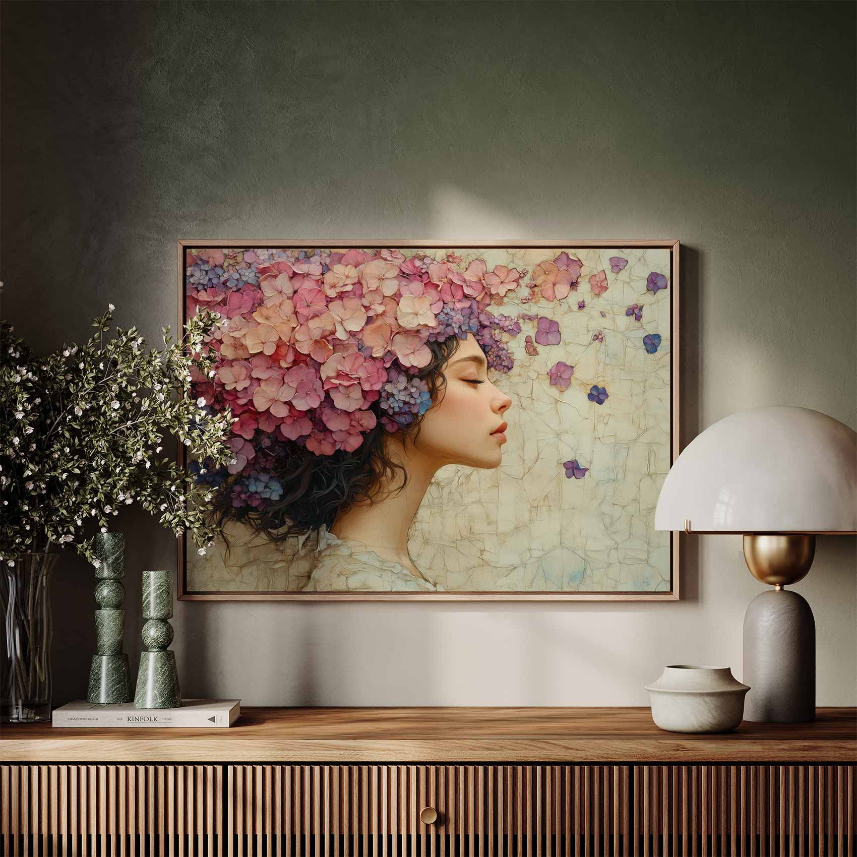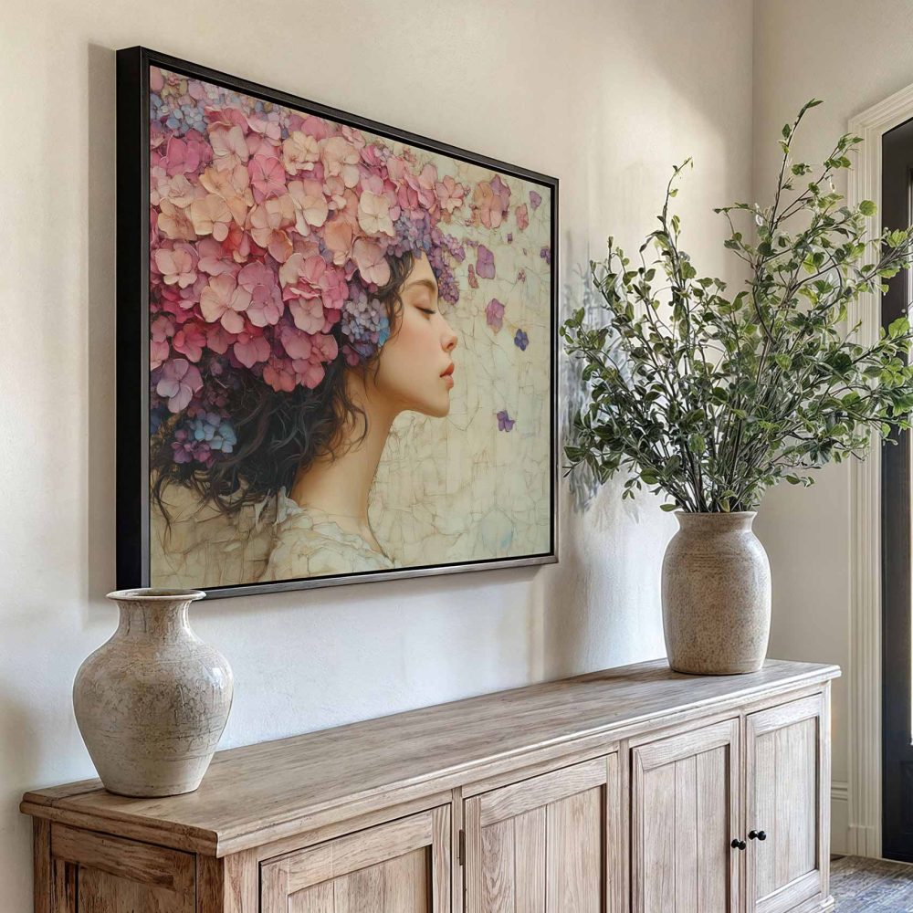 Terug naar collectie / Schilderijen / Bloemen Schilderij / Serene bloemenkroon vrouw