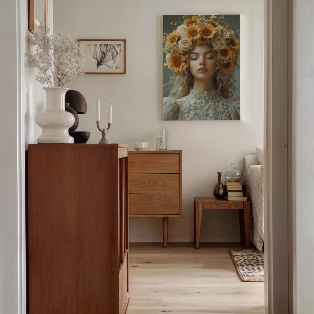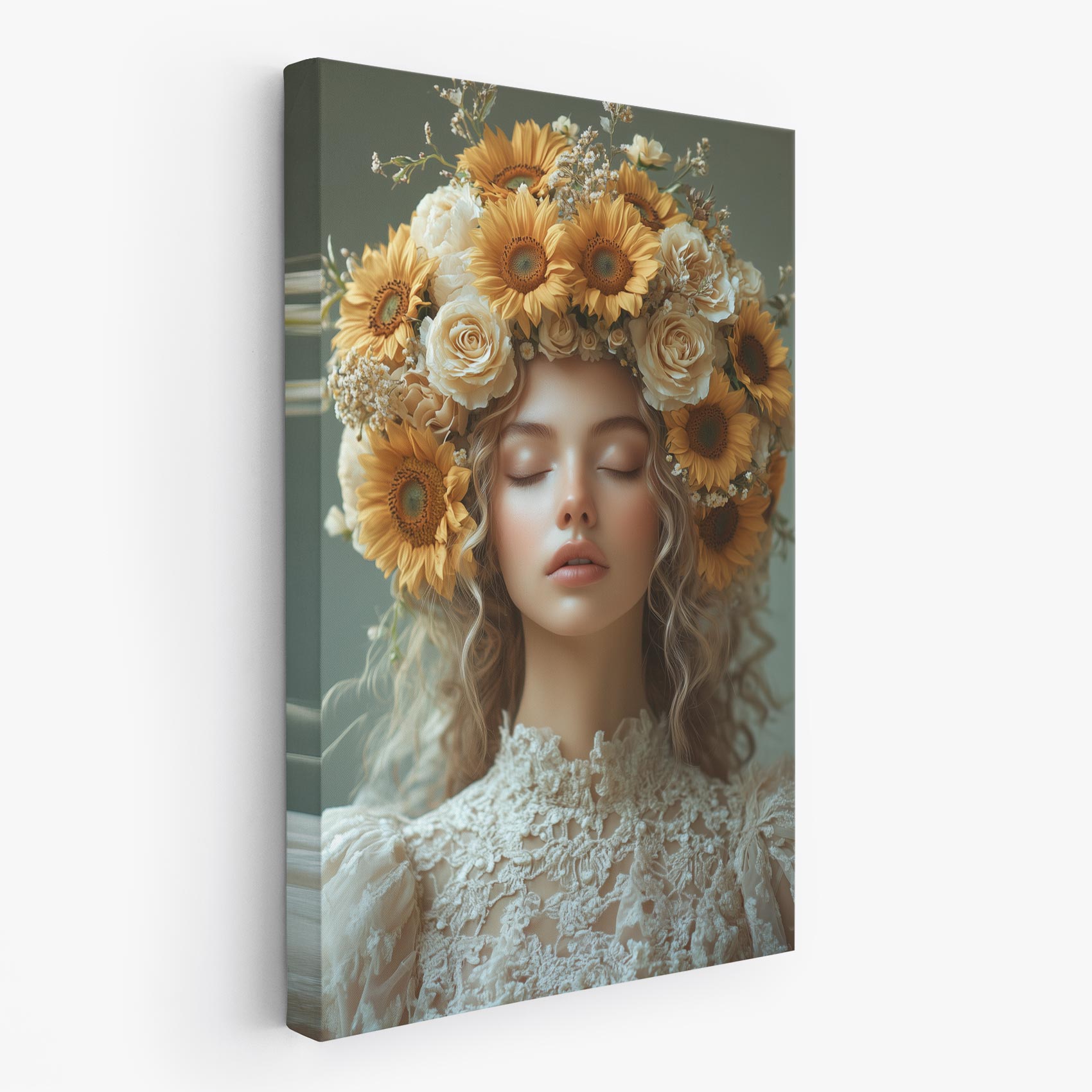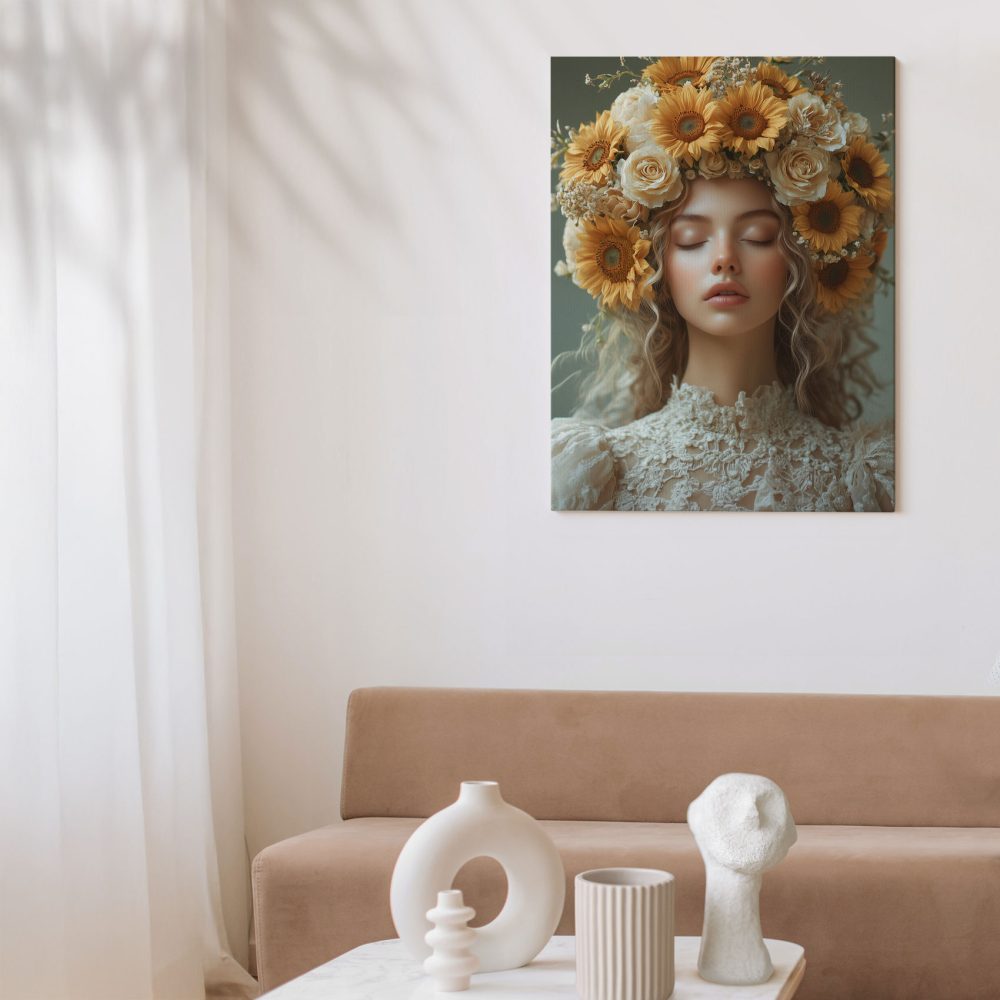 Terug naar collectie / Schilderijen / Bloemen Schilderij / Serene vrouw met bloemenkroon