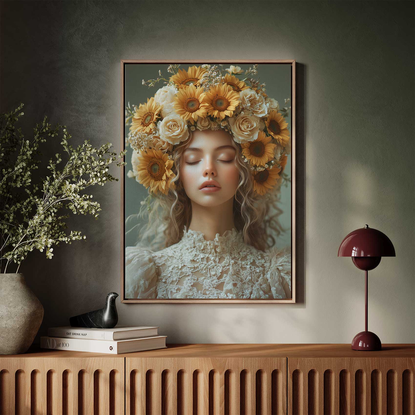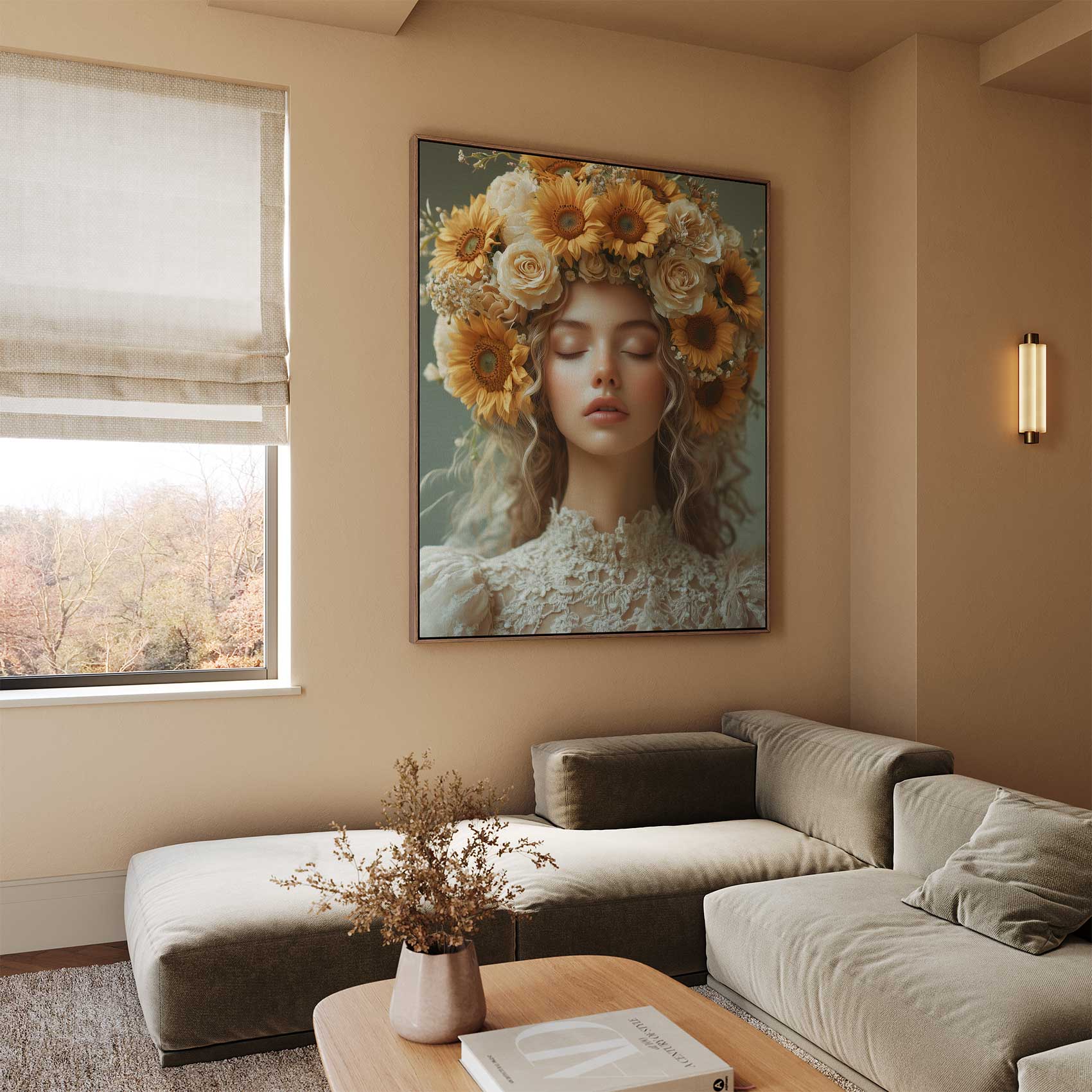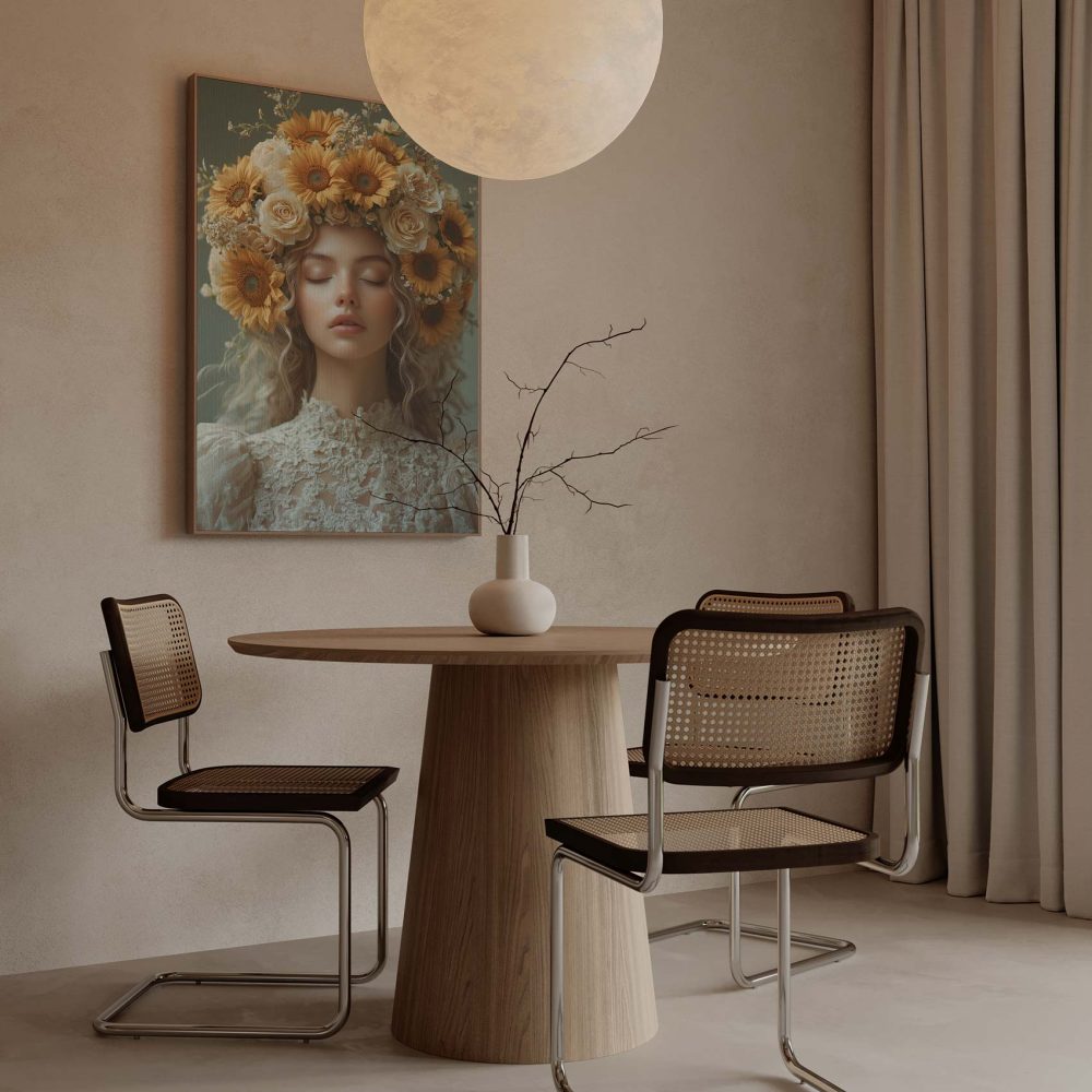 Terug naar collectie / Schilderijen / Bloemen Schilderij / Serene vrouw met bloemenkroon