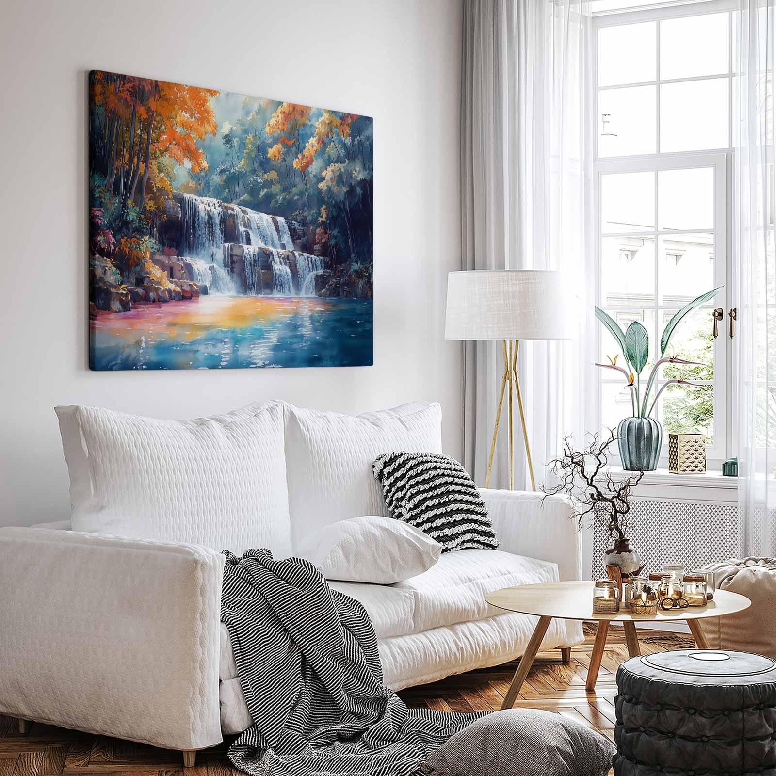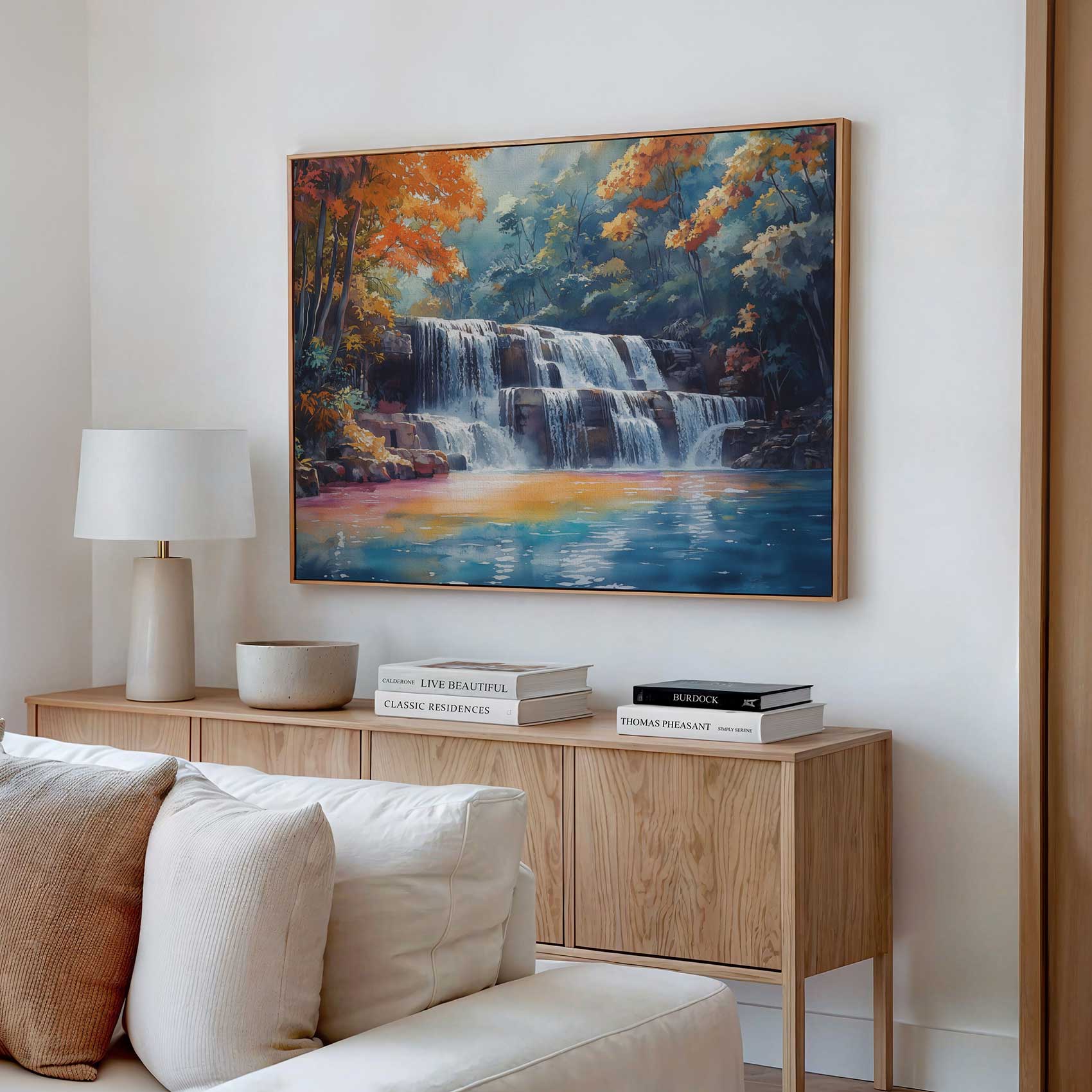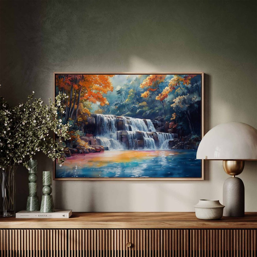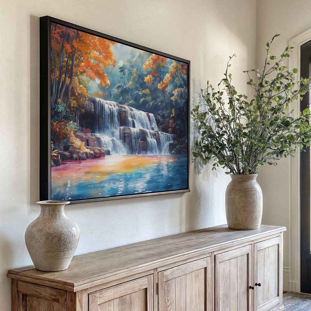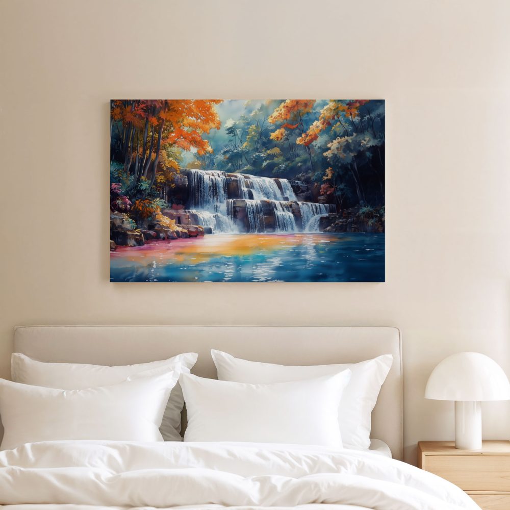 Serene Waterfall Watercolor