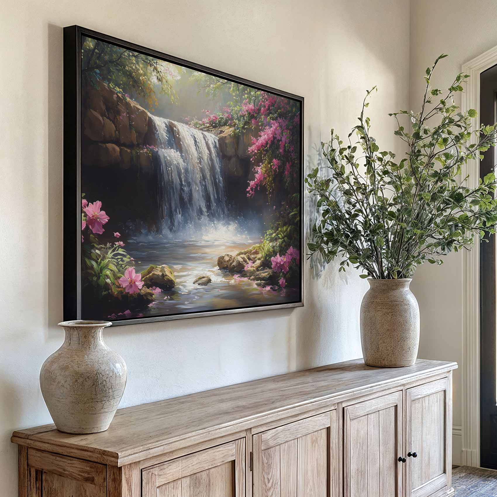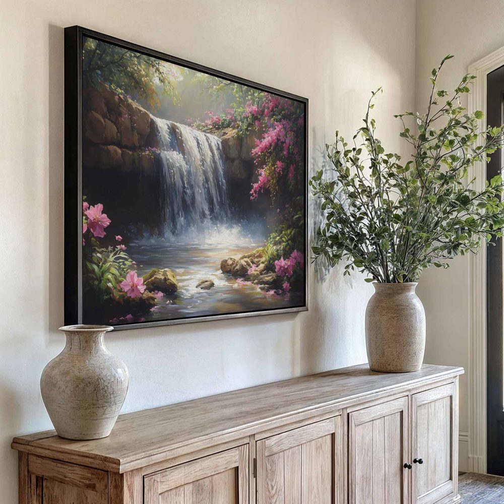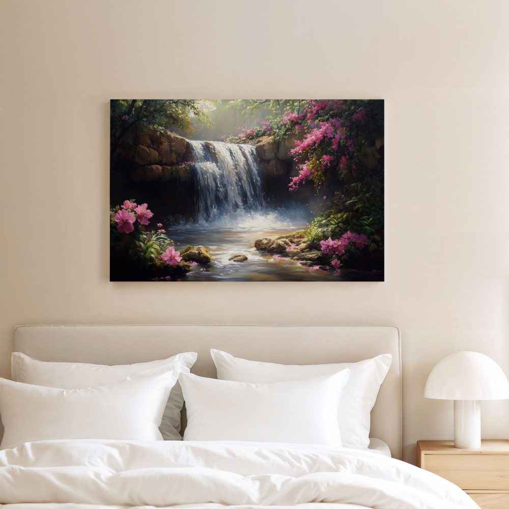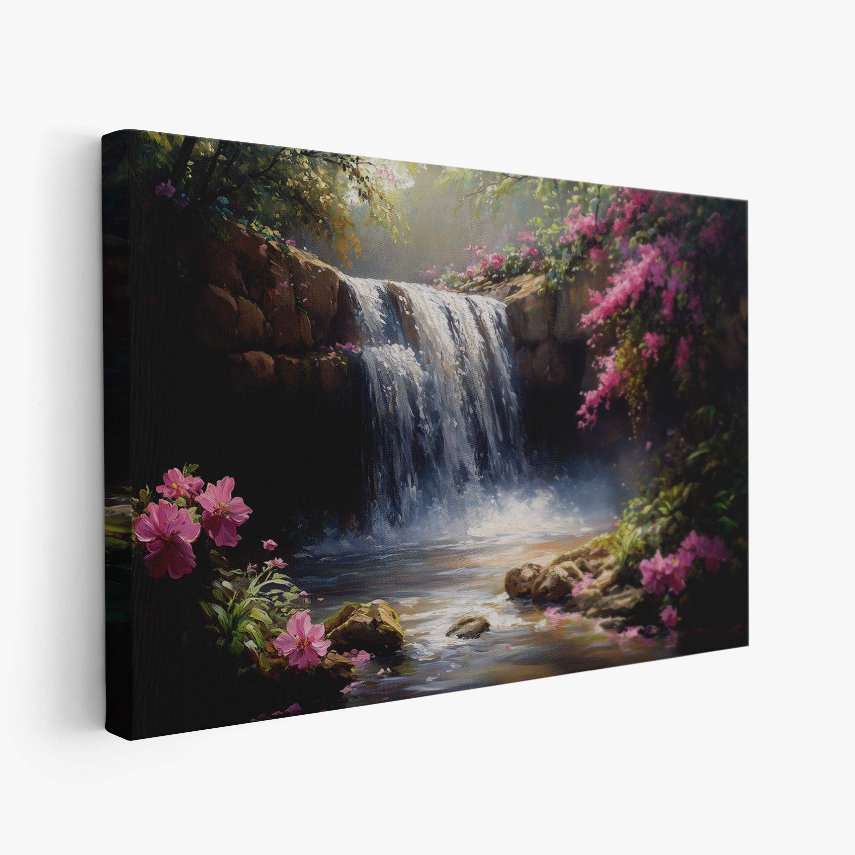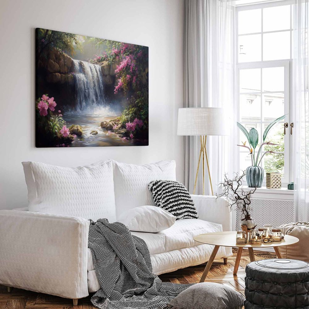 Terug naar collectie / Schilderijen / Bloemen Schilderij / Serene Waterval met Bloemen