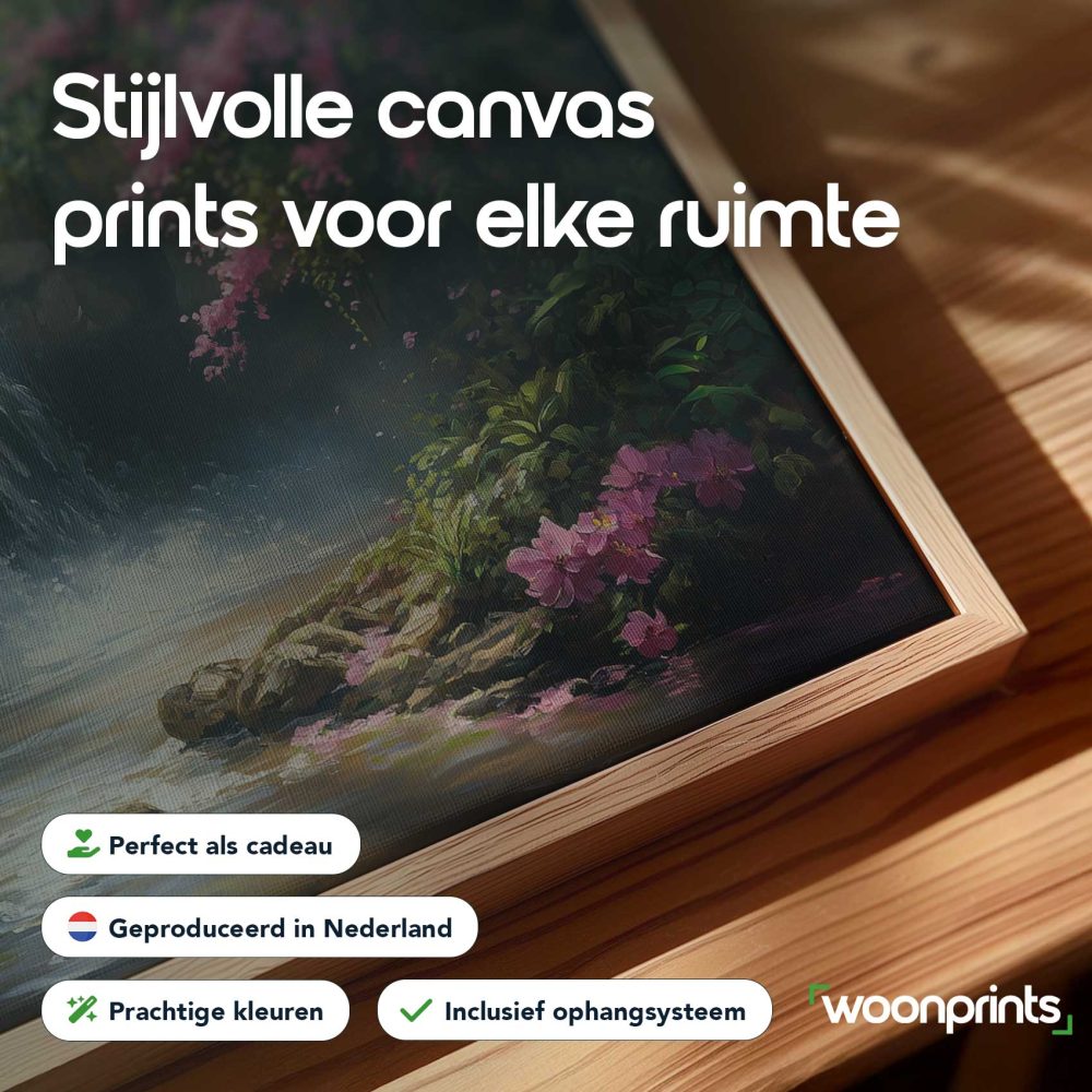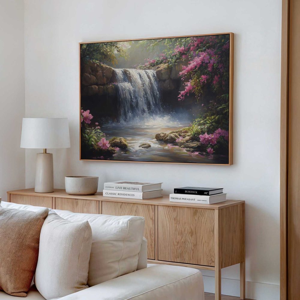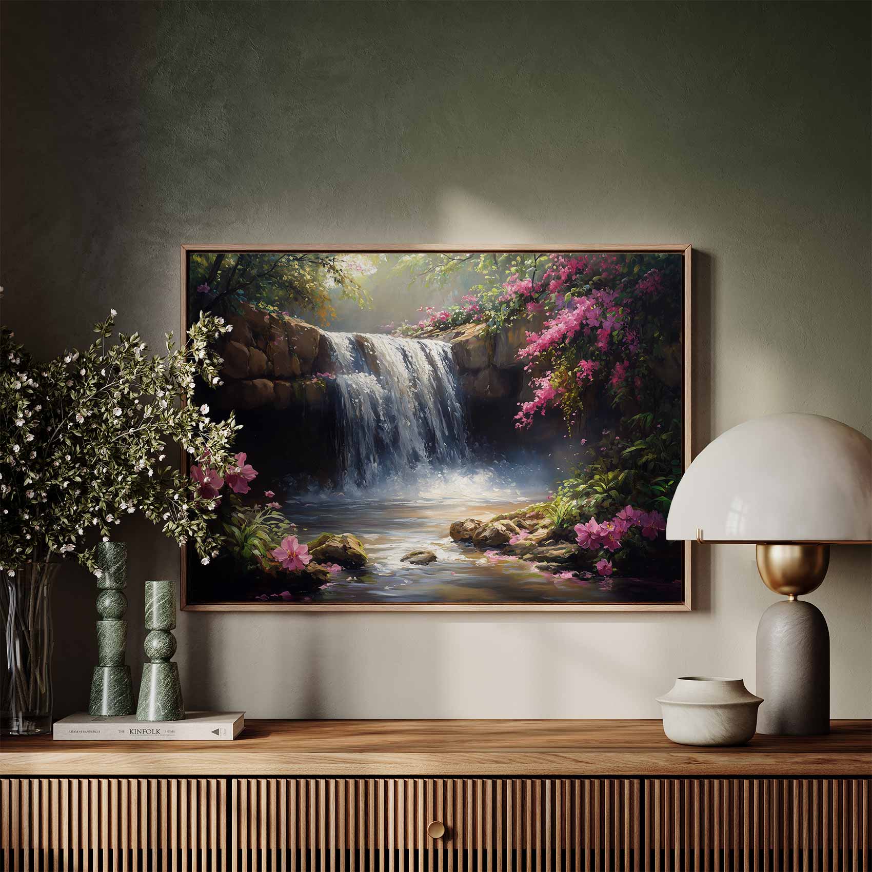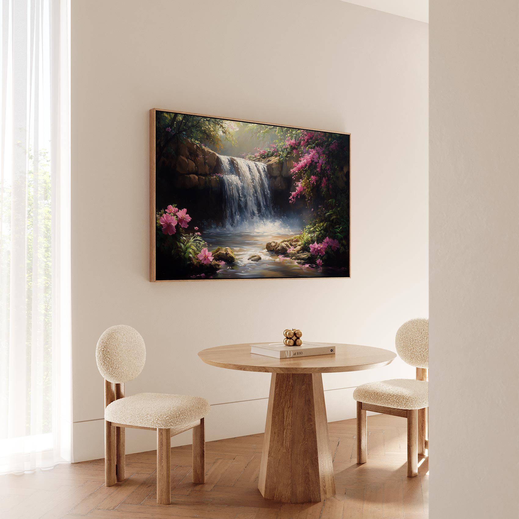 Terug naar collectie / Schilderijen / Bloemen Schilderij / Serene Waterval met Bloemen