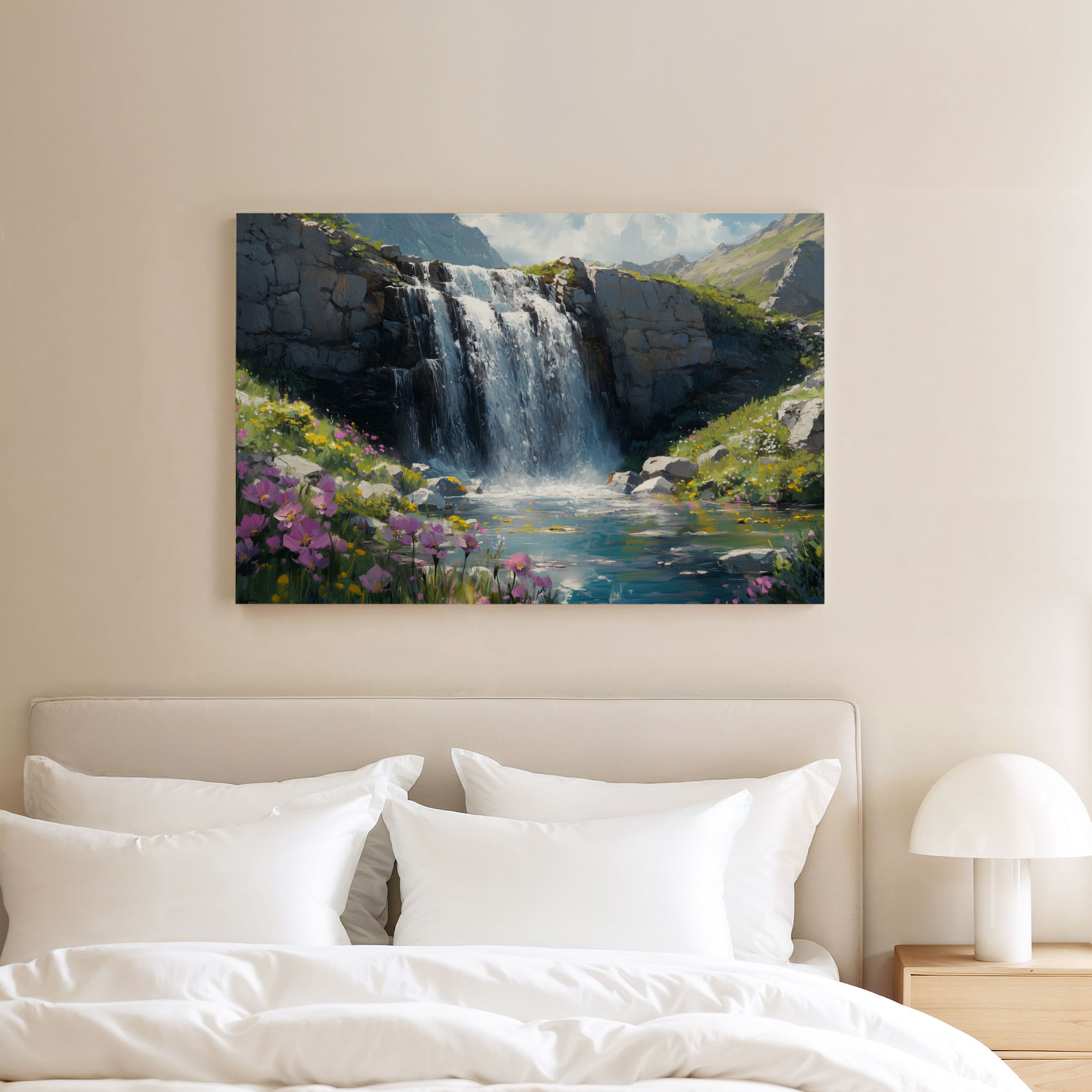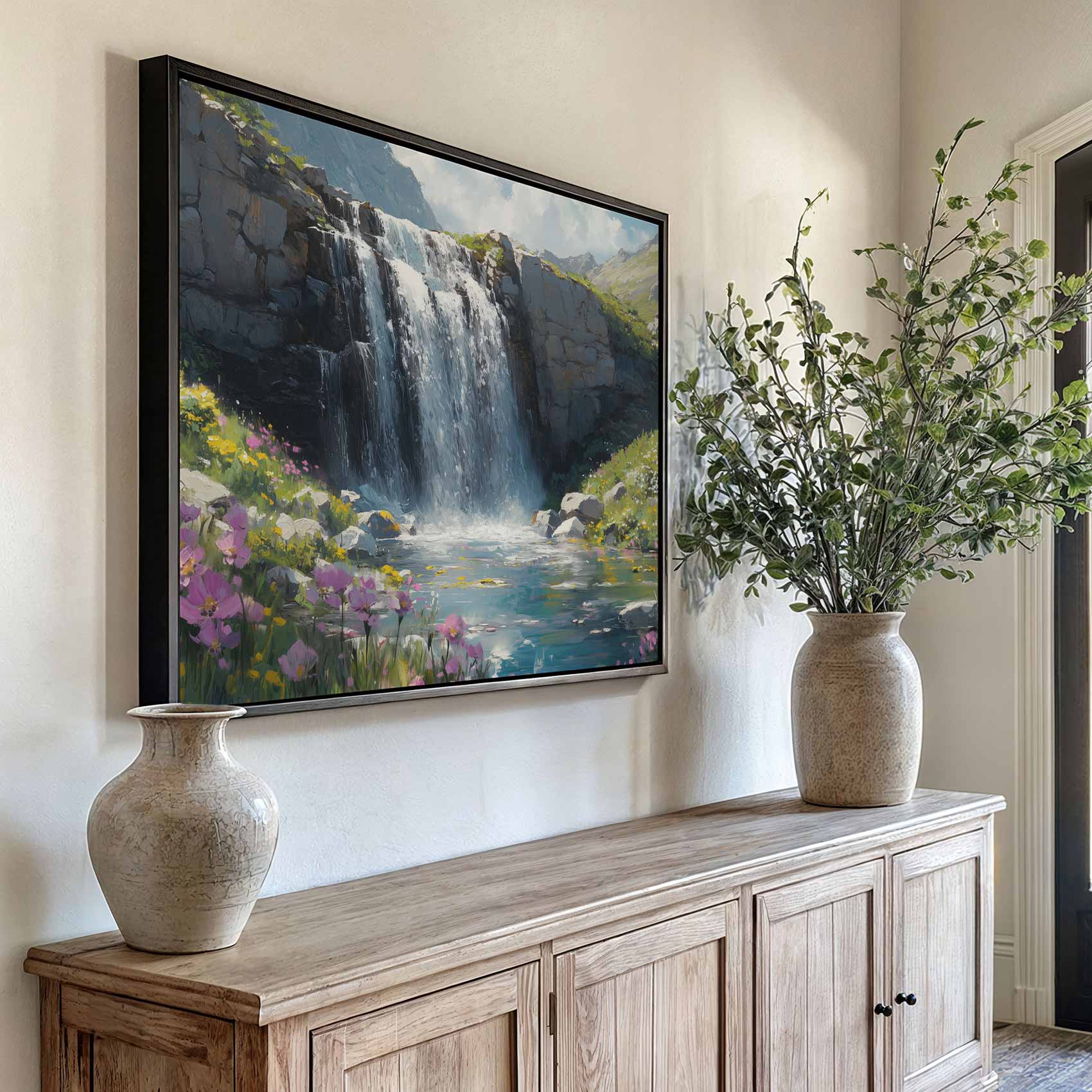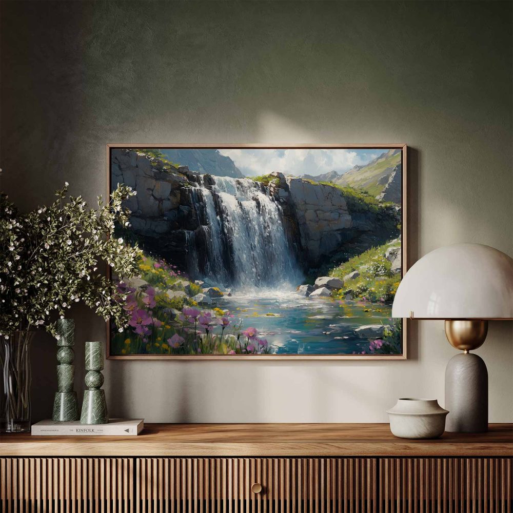 Terug naar collectie / Schilderijen / Bergen Schilderij / Serene Waterval Schilderij