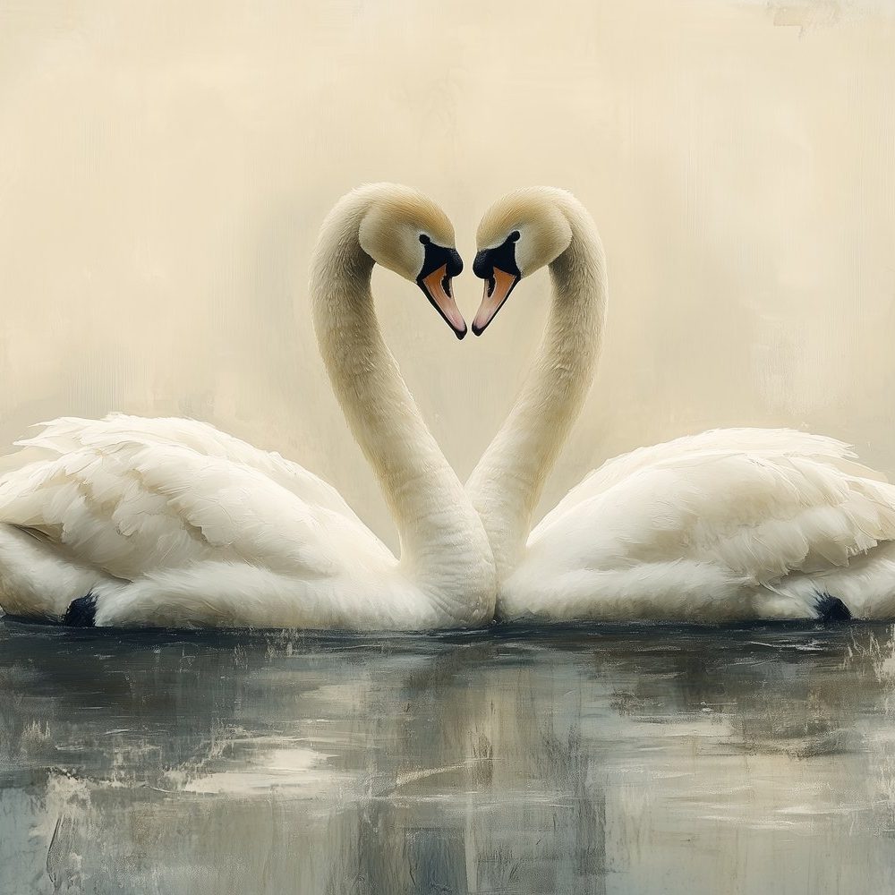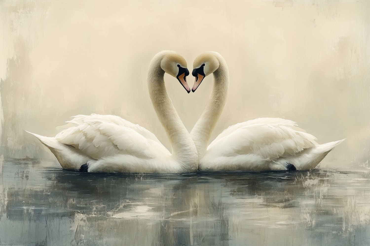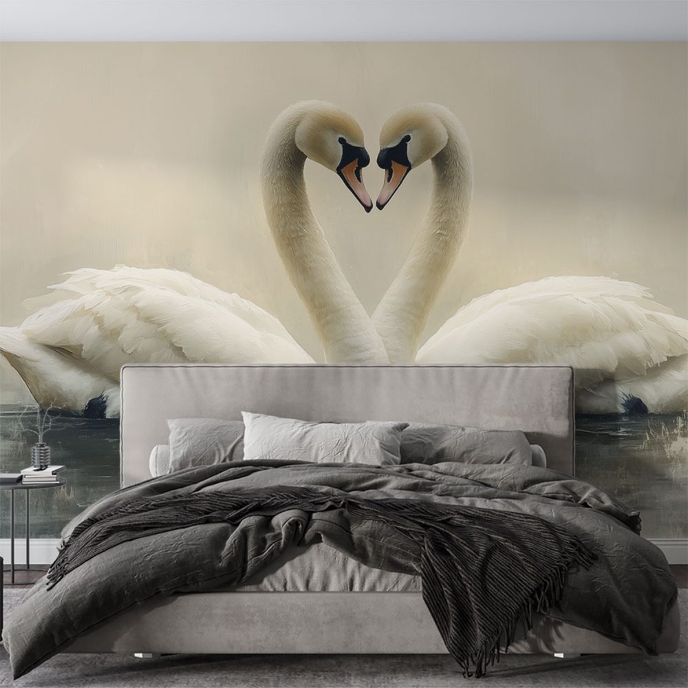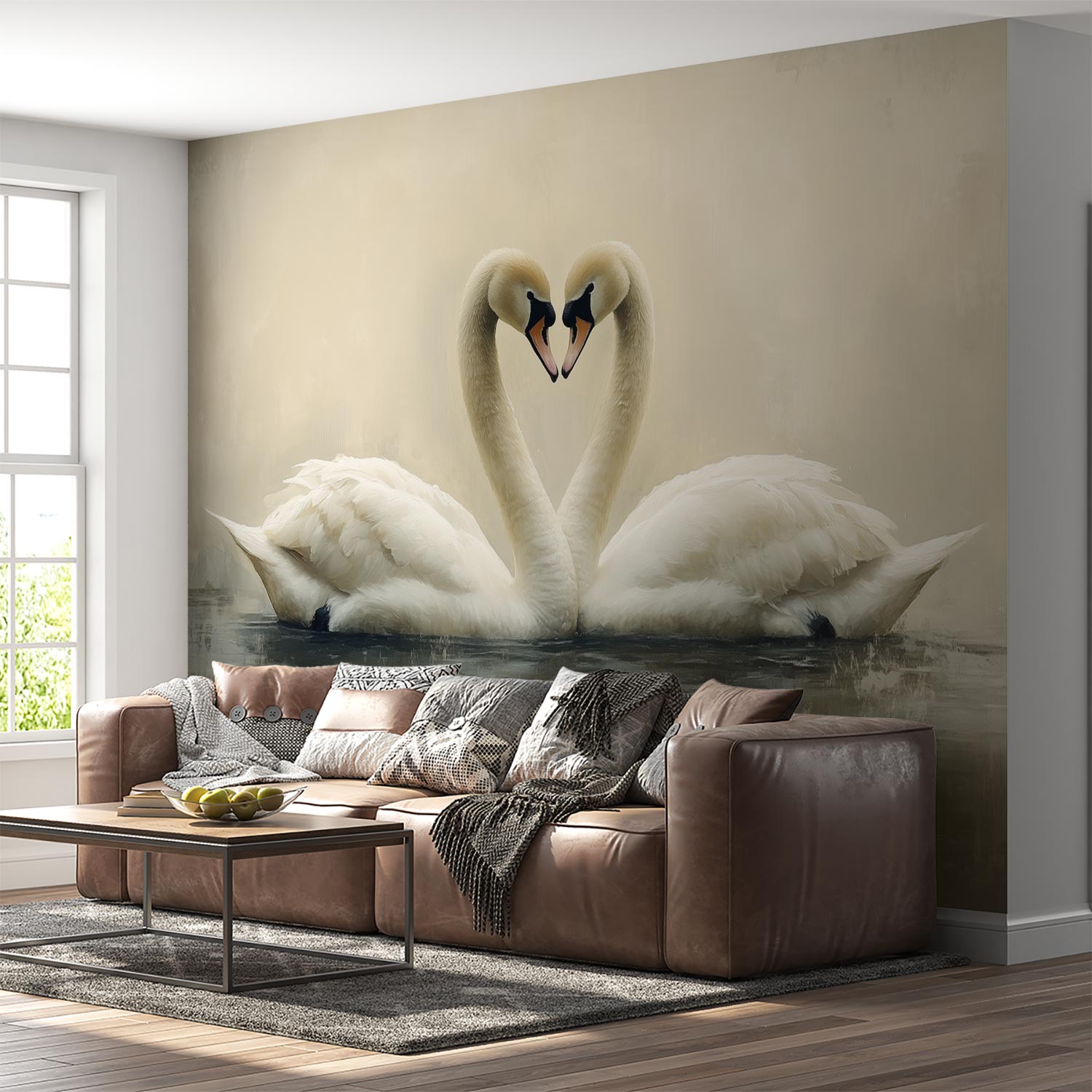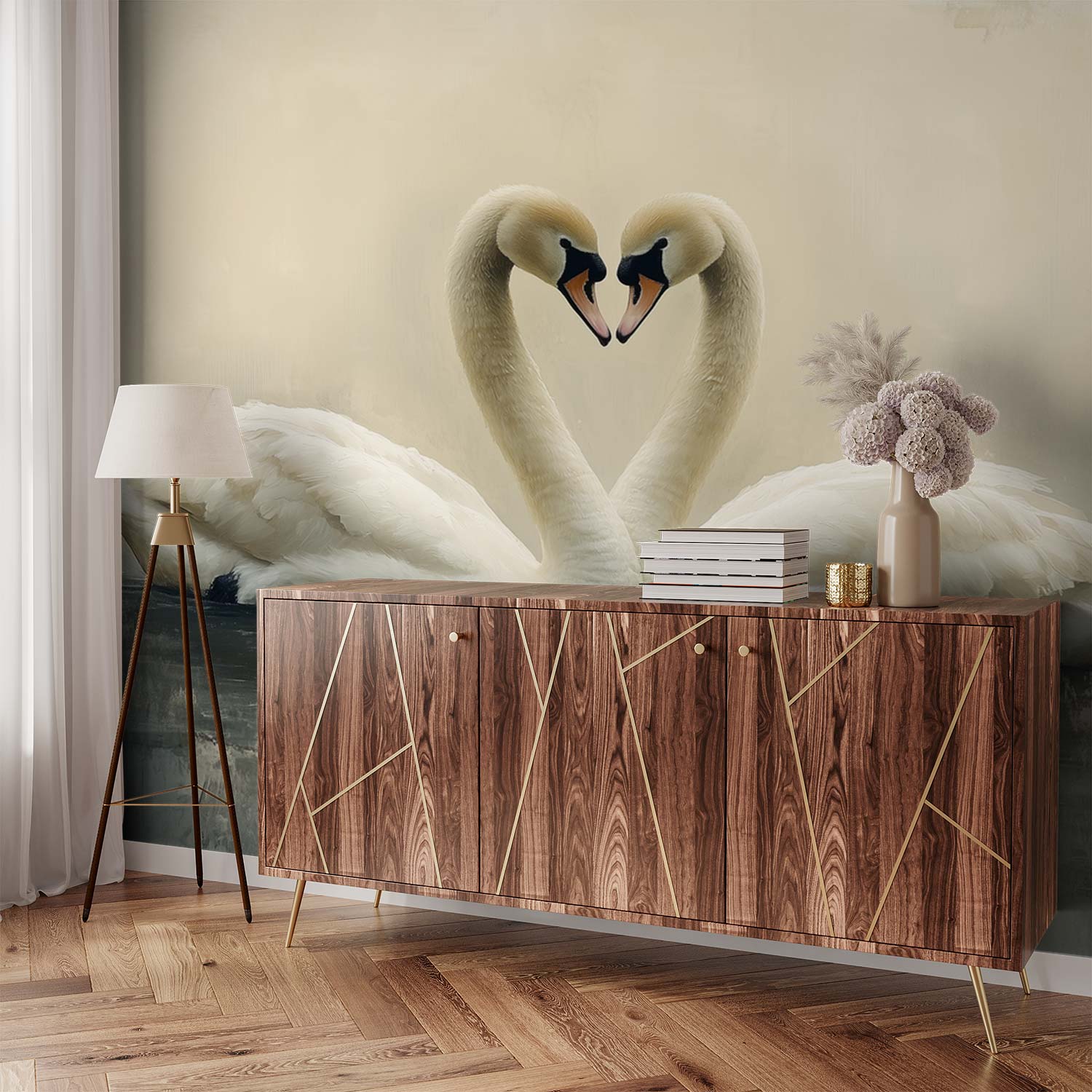 Terug naar collectie / Behang / Sierlijke zwanenhart in water behang