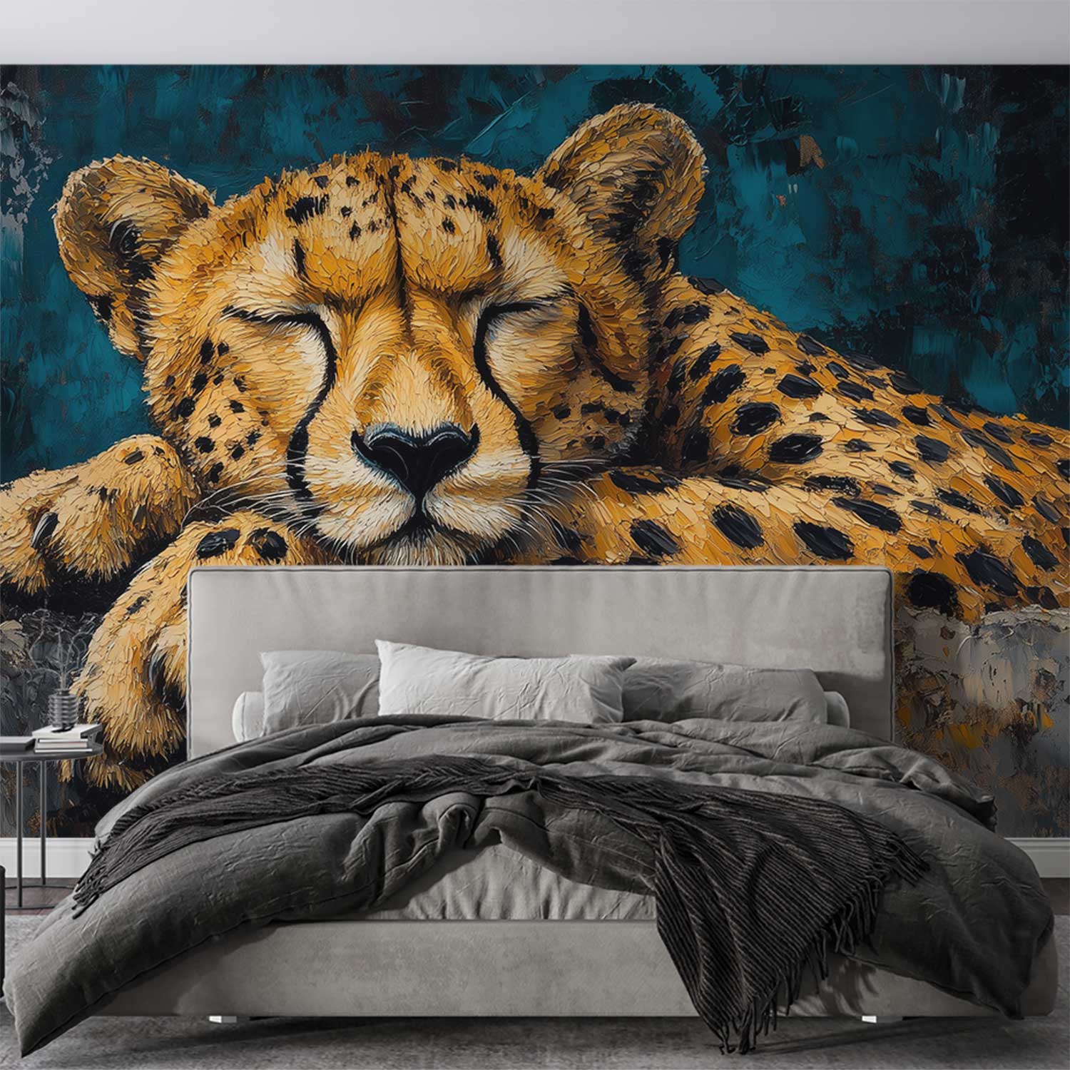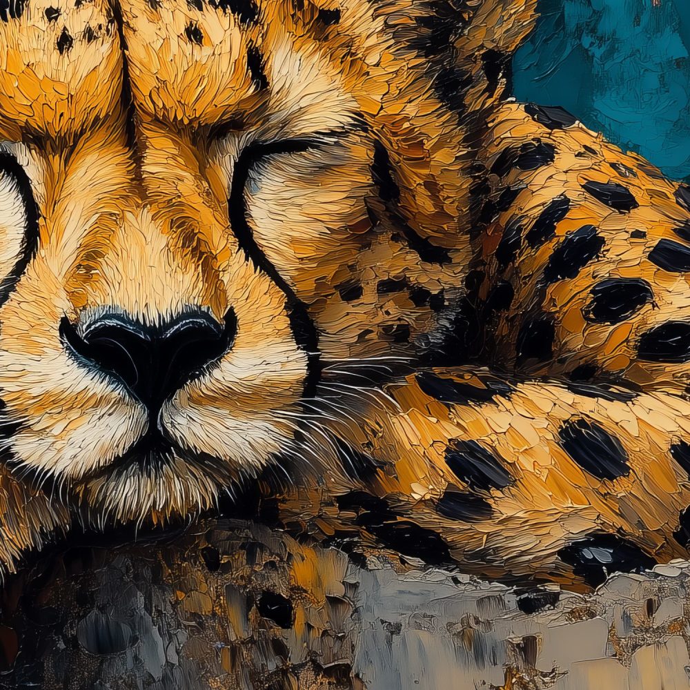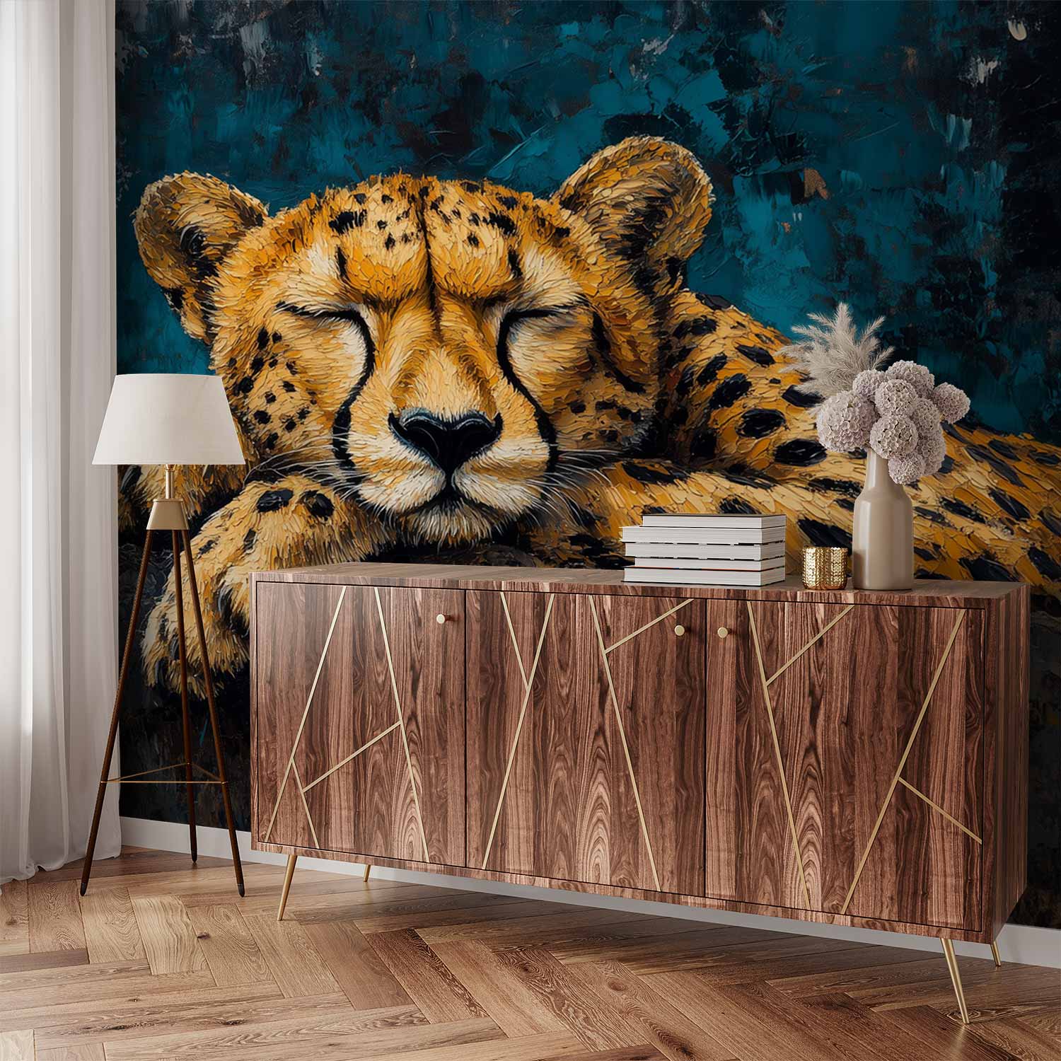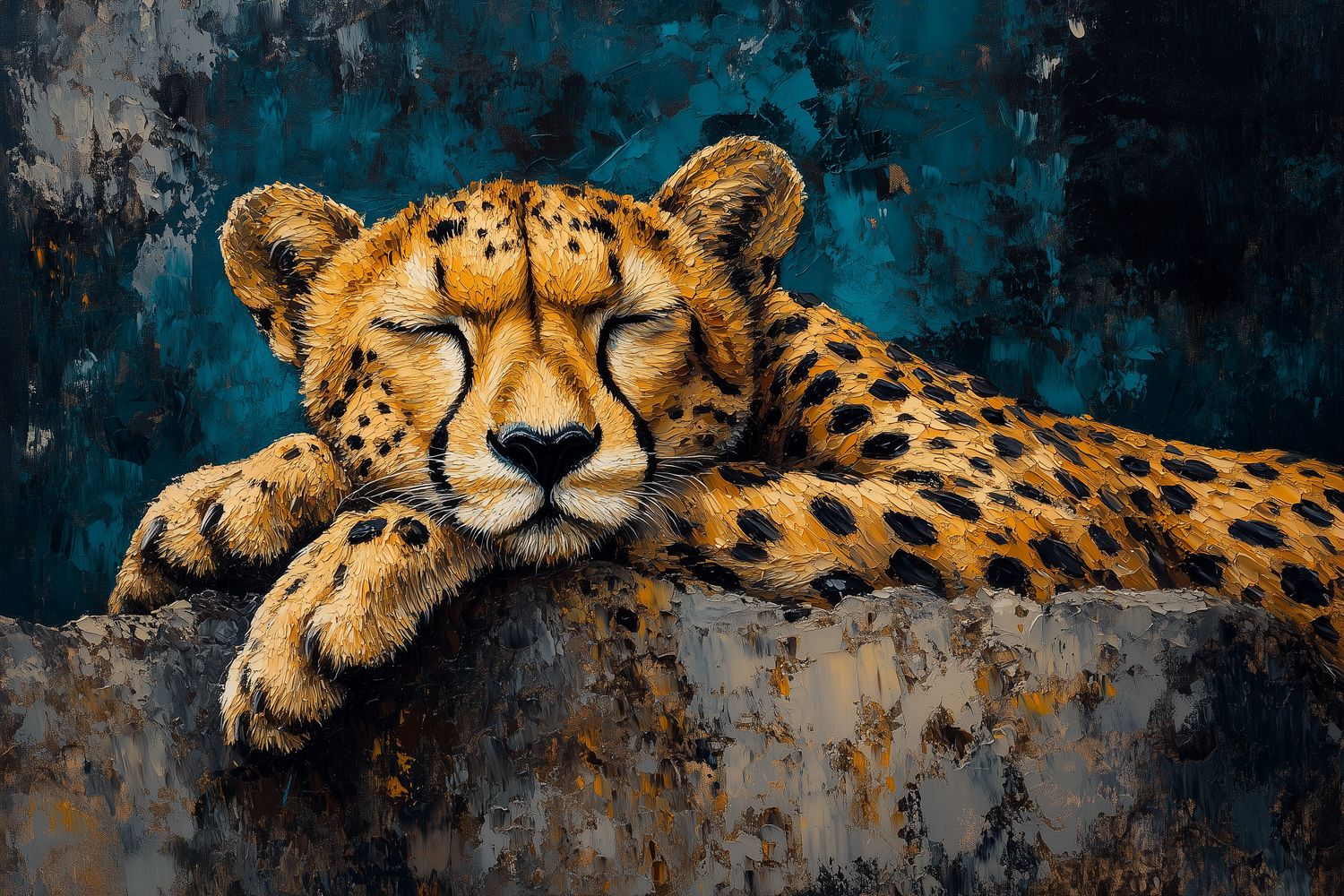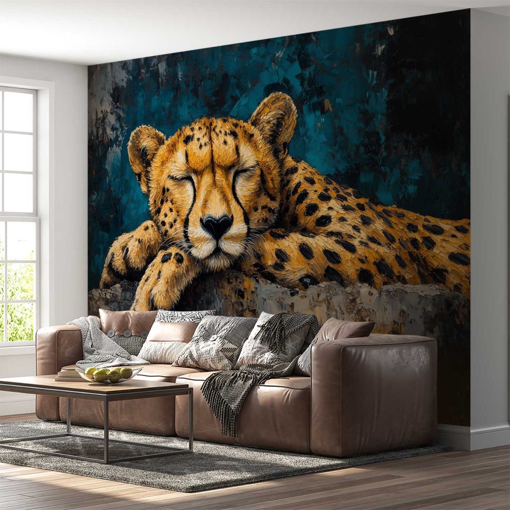Terug naar collectie / Behang / Slapende Jachtluipaard op Rots behang