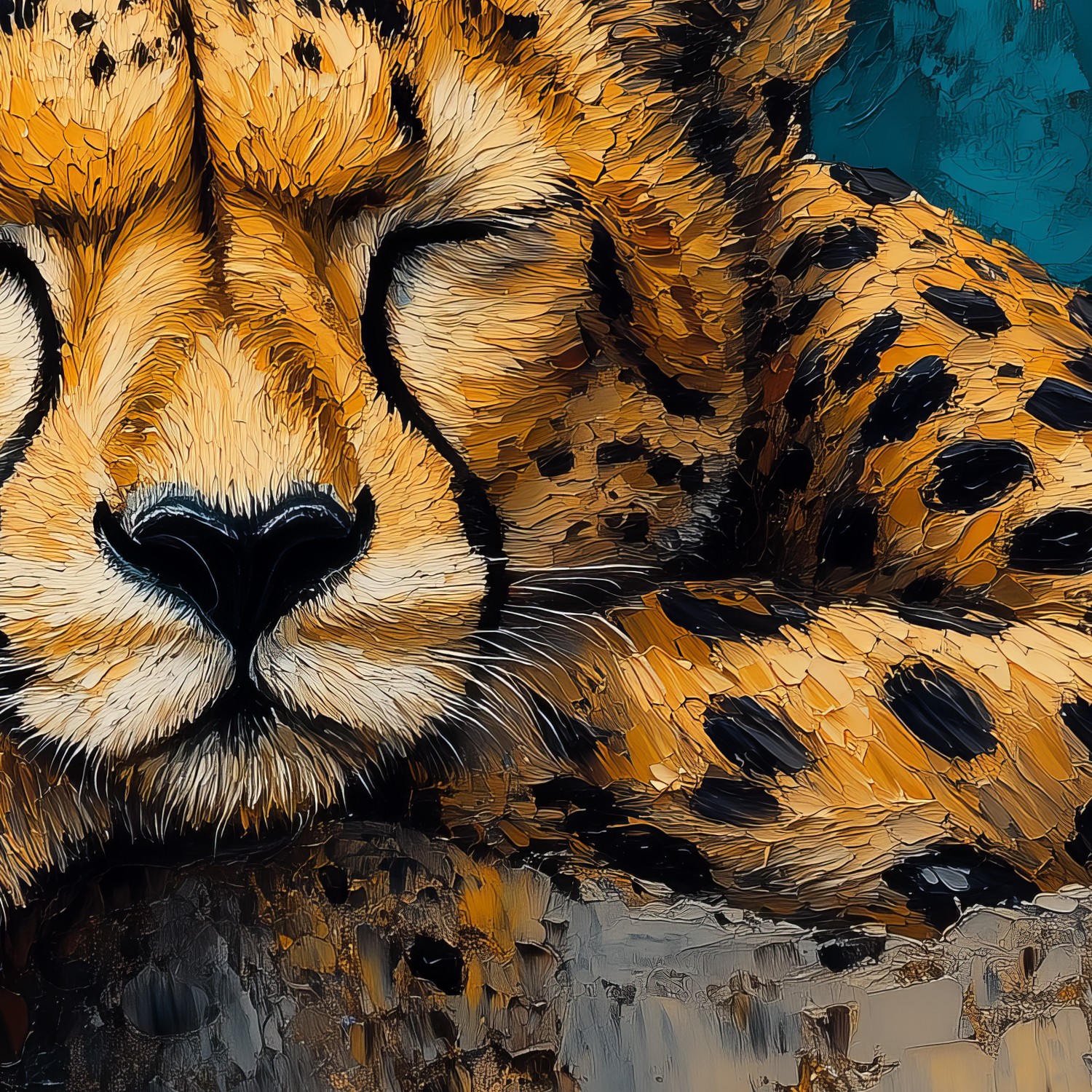 Slapende Jachtluipaard op Rots behang