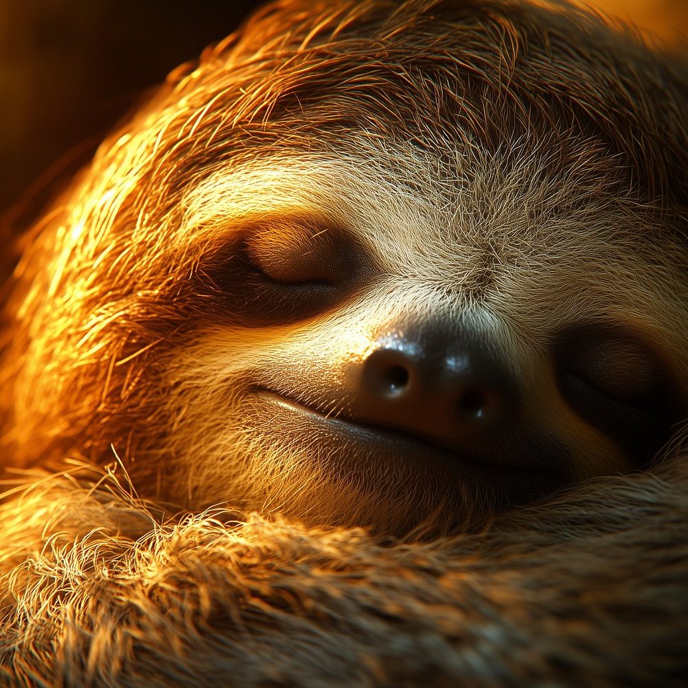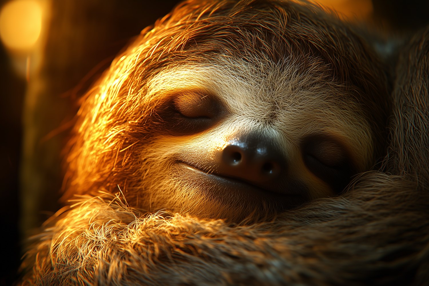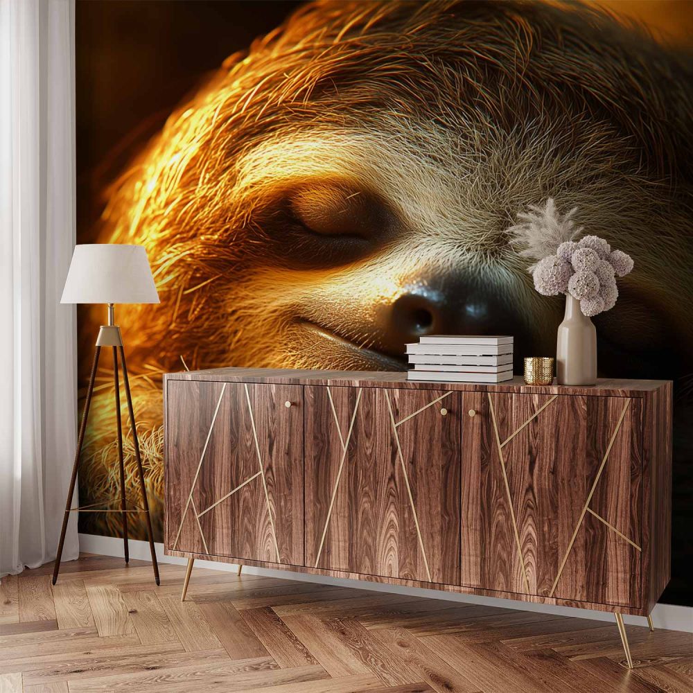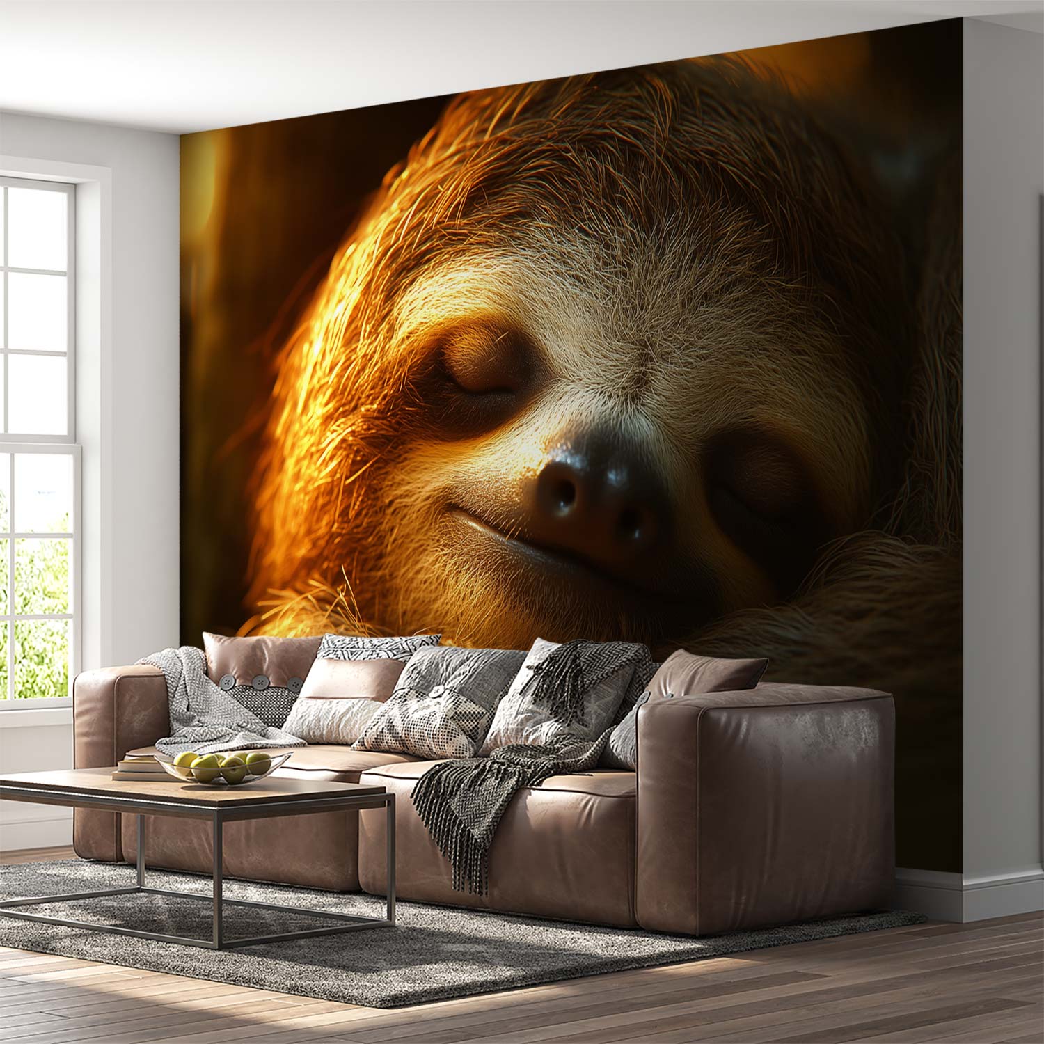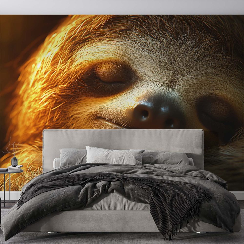 Terug naar collectie / Behang / Slapende luiaard in goudlicht behang