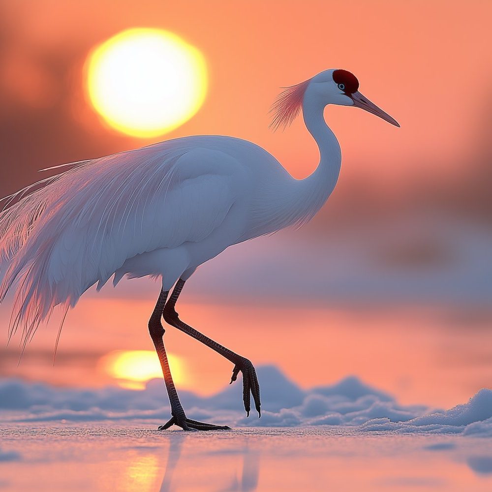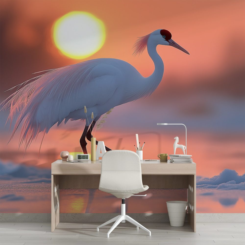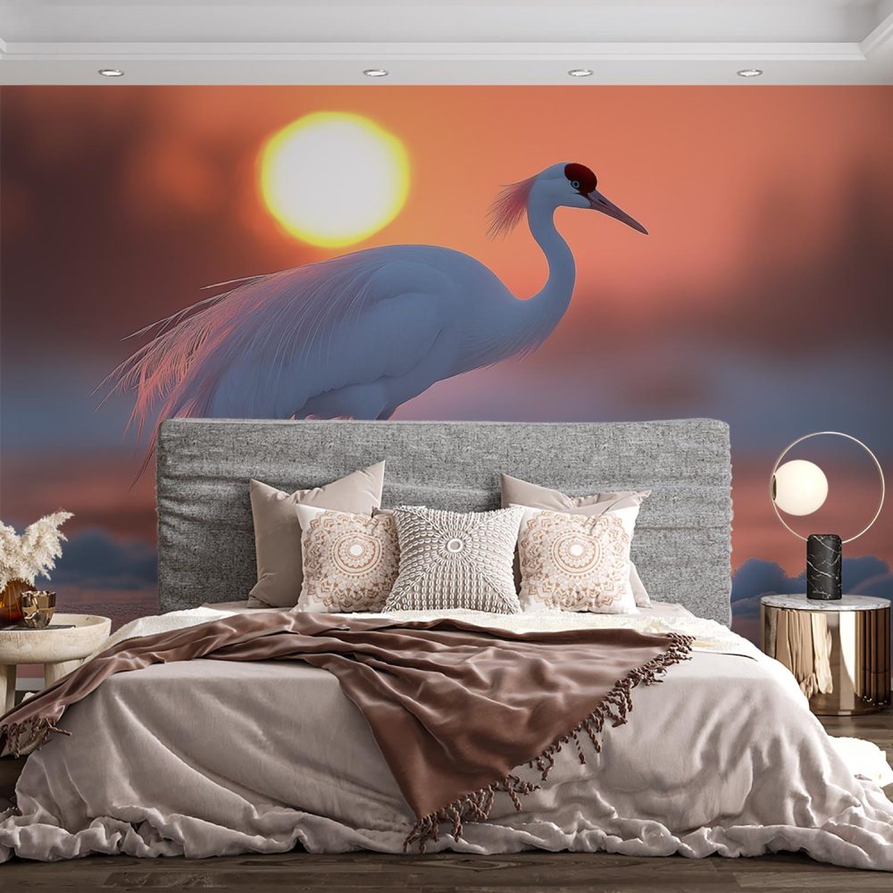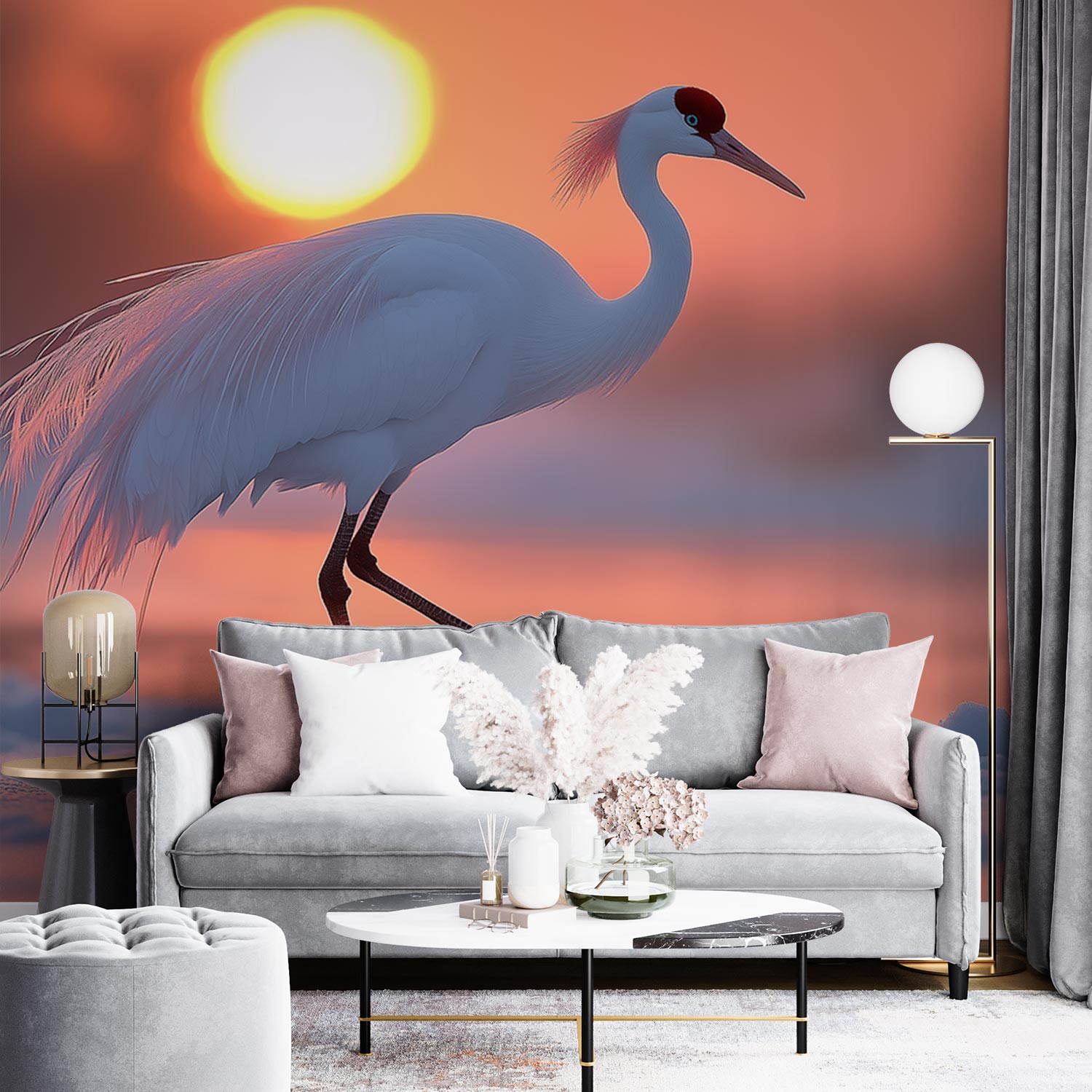 Terug naar collectie / Behang / Sneeuwreiger bij zonsondergang behang