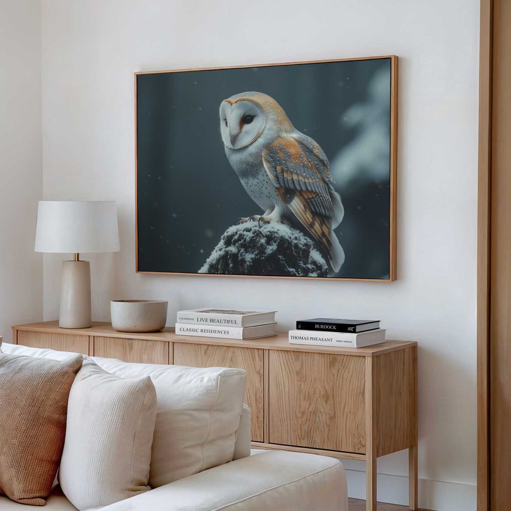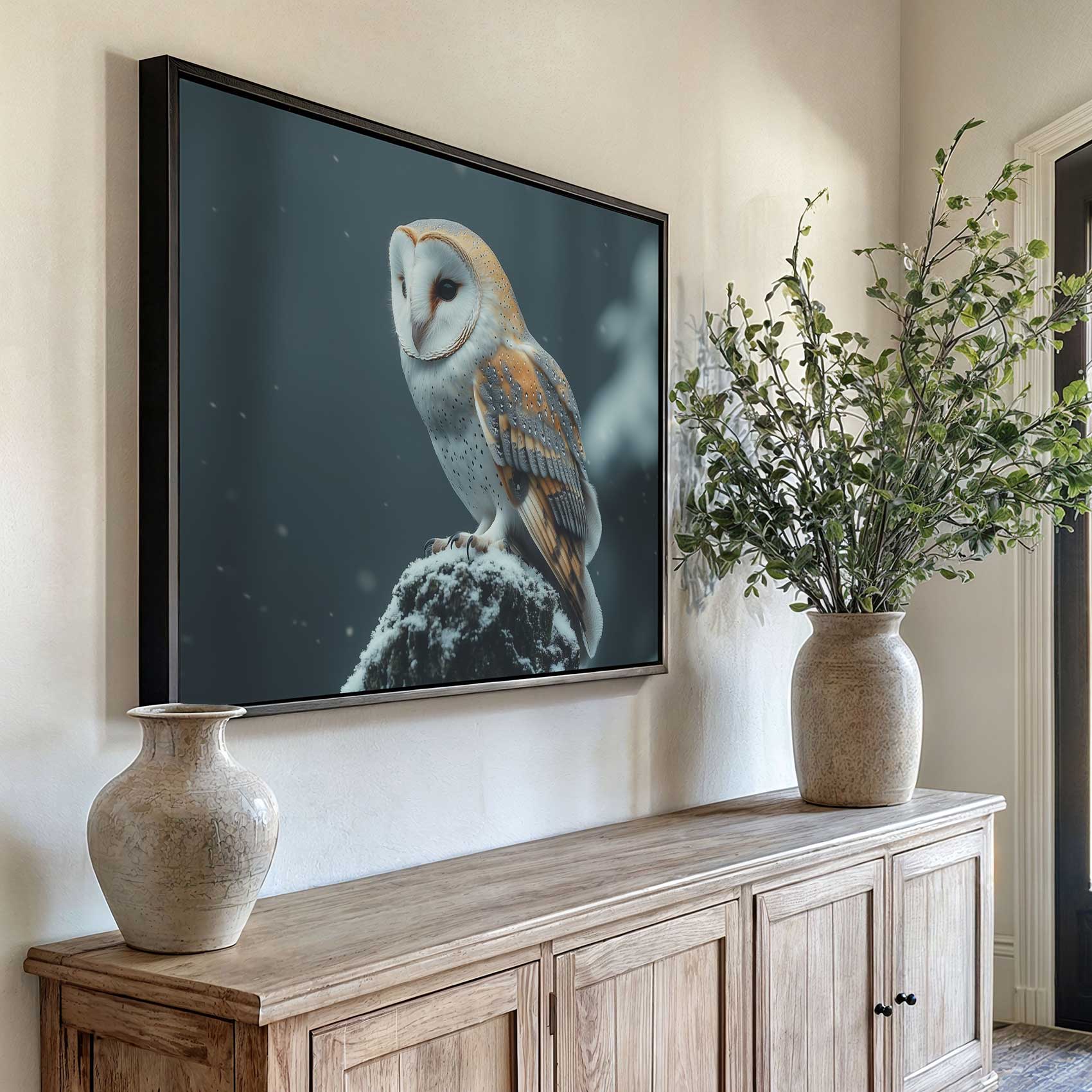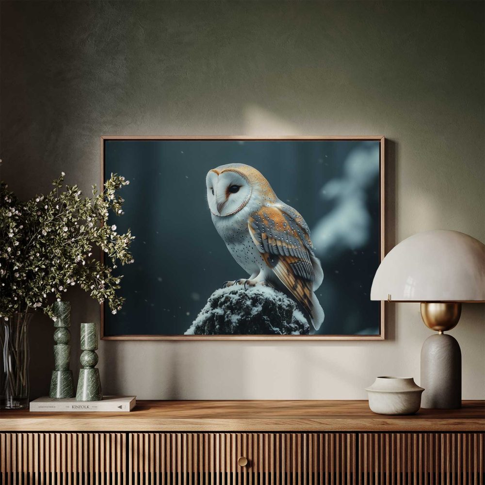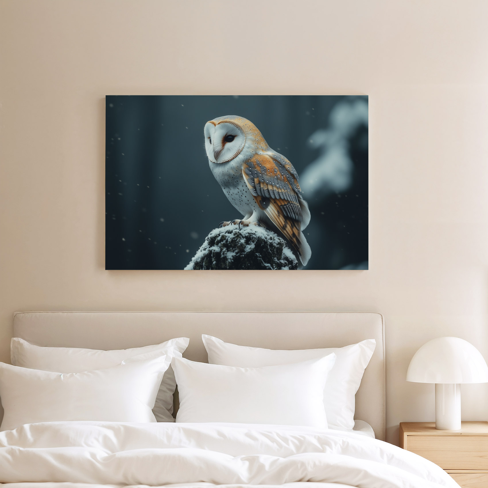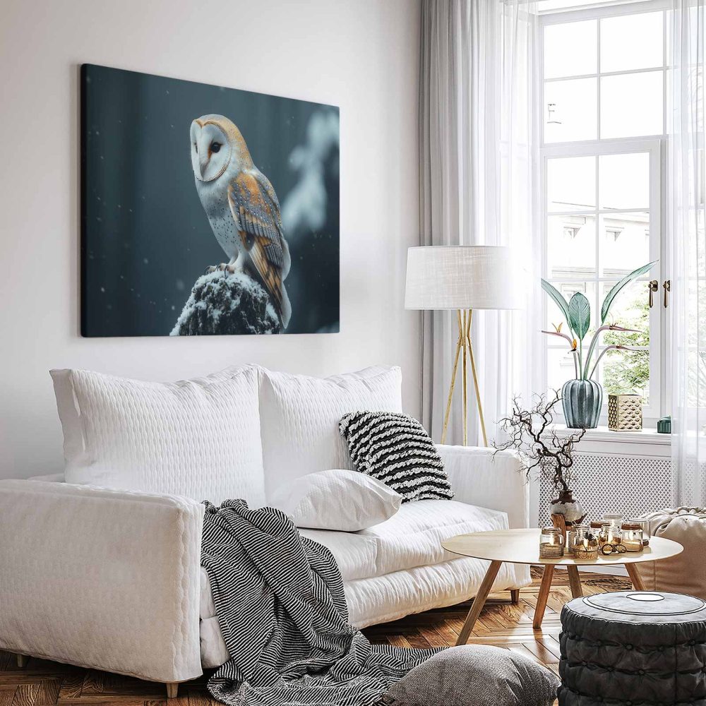 Terug naar collectie / Schilderijen / Dieren Schilderij / Sneeuwuil op besneeuwde rots