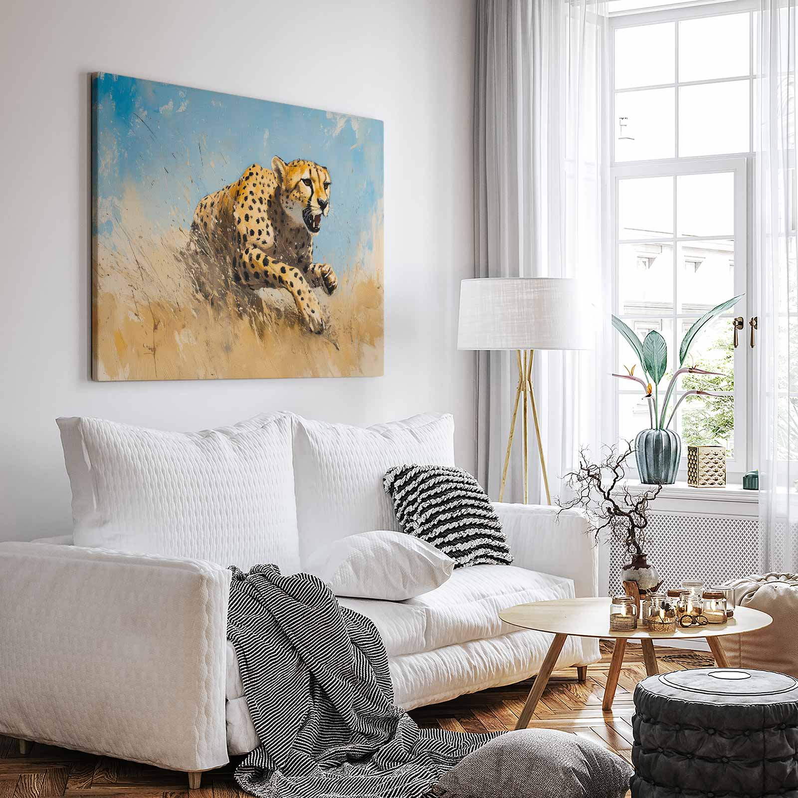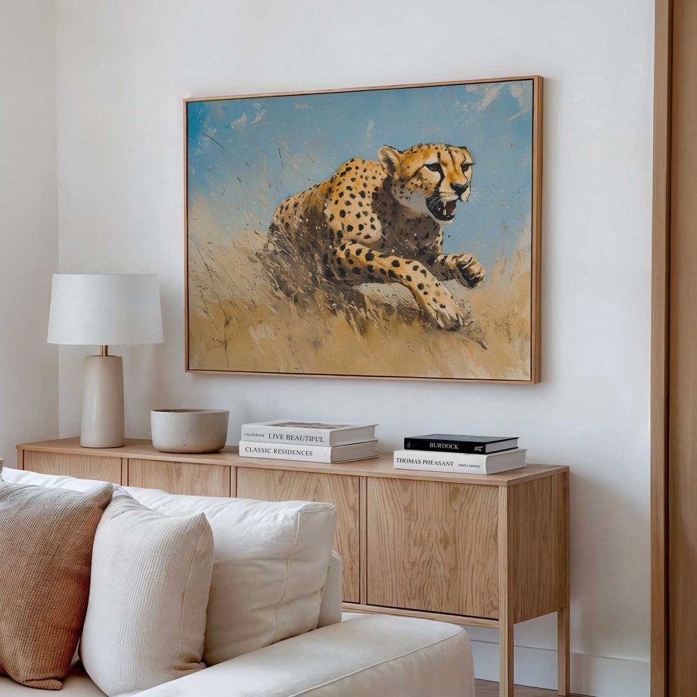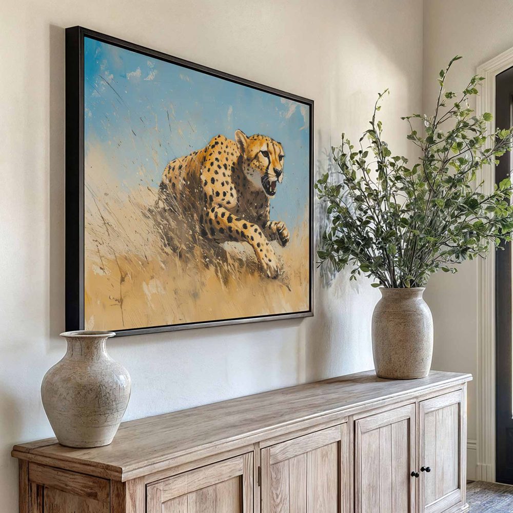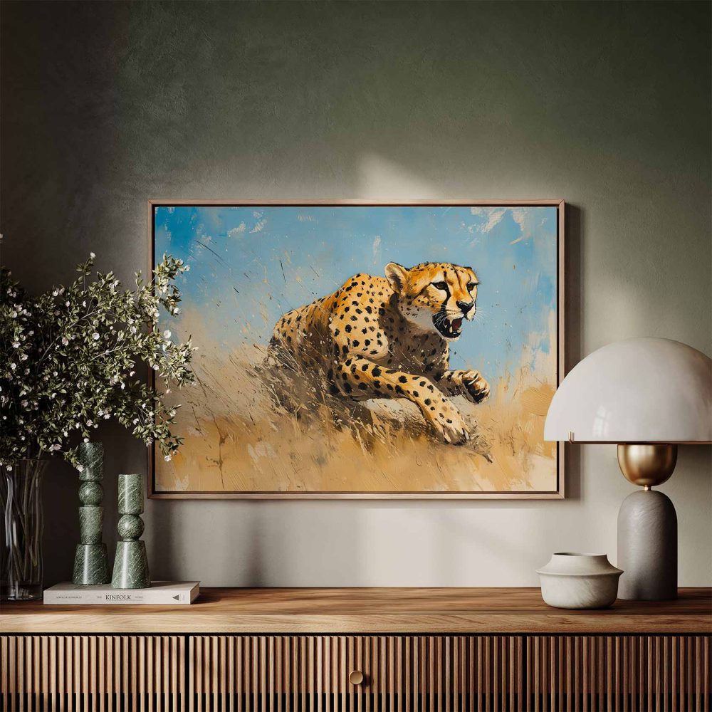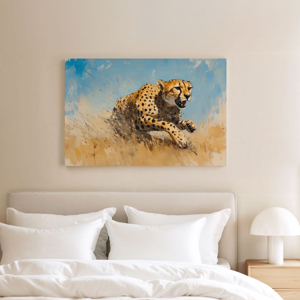 Terug naar collectie / Schilderijen / Dieren Schilderij / Snelle cheetah in volle vaart