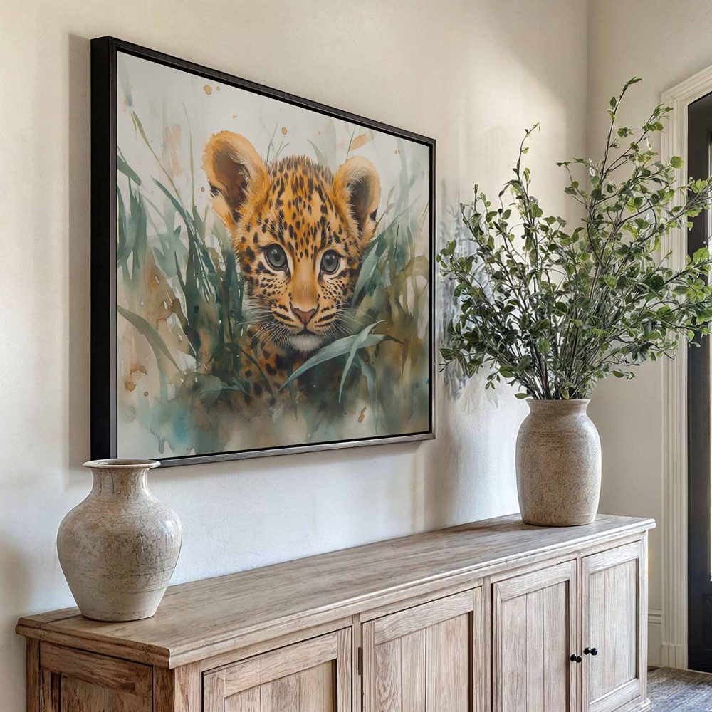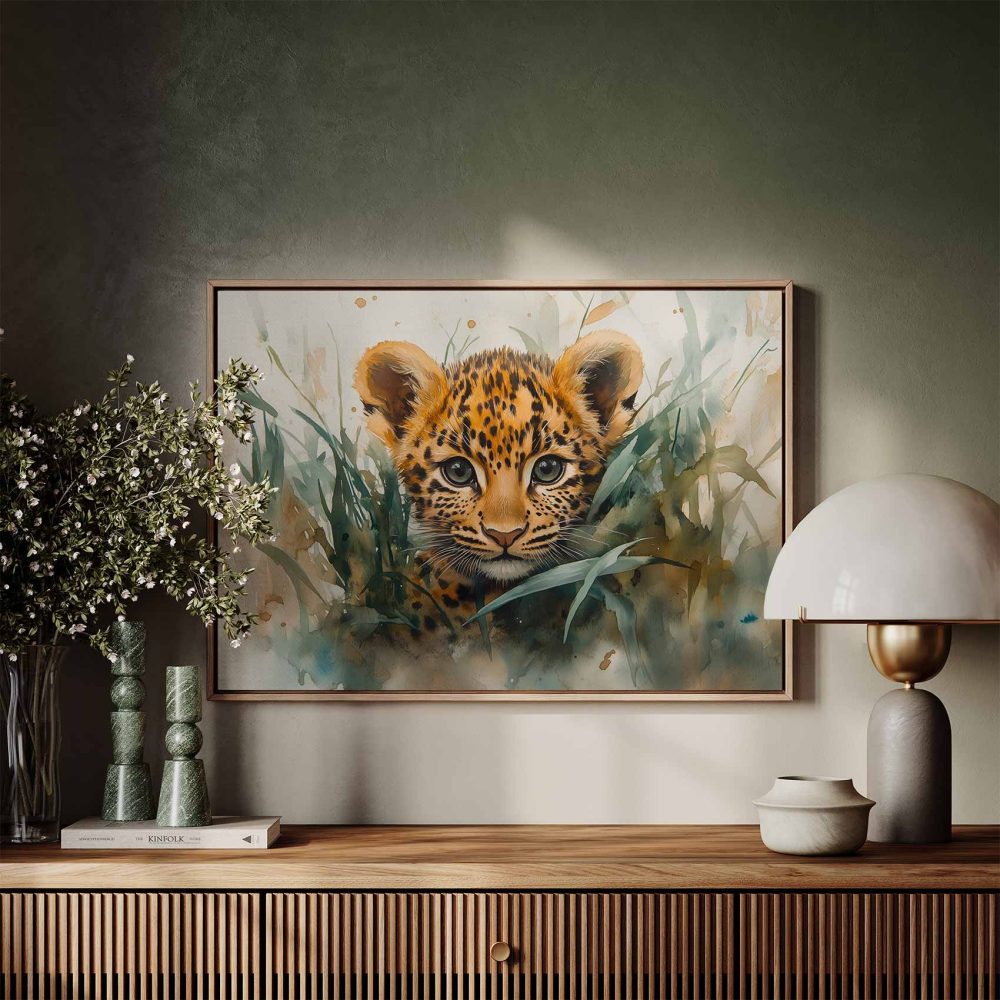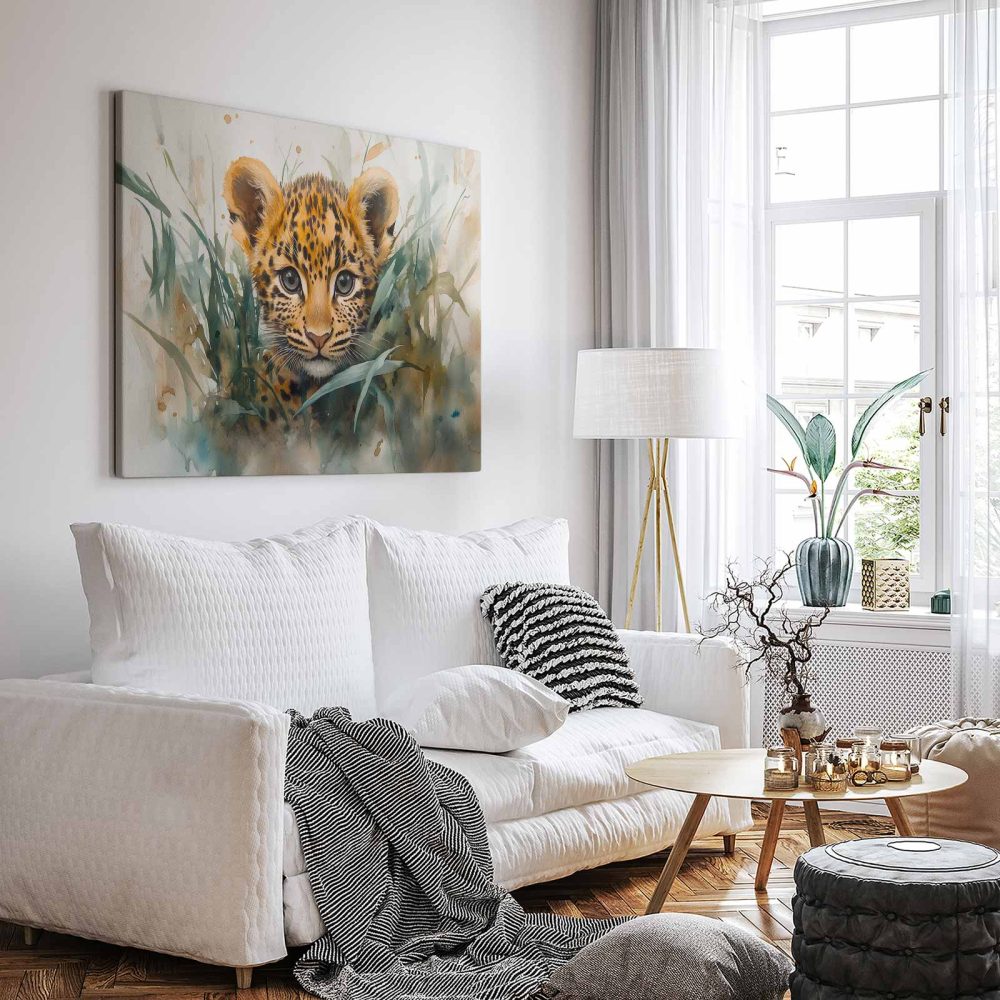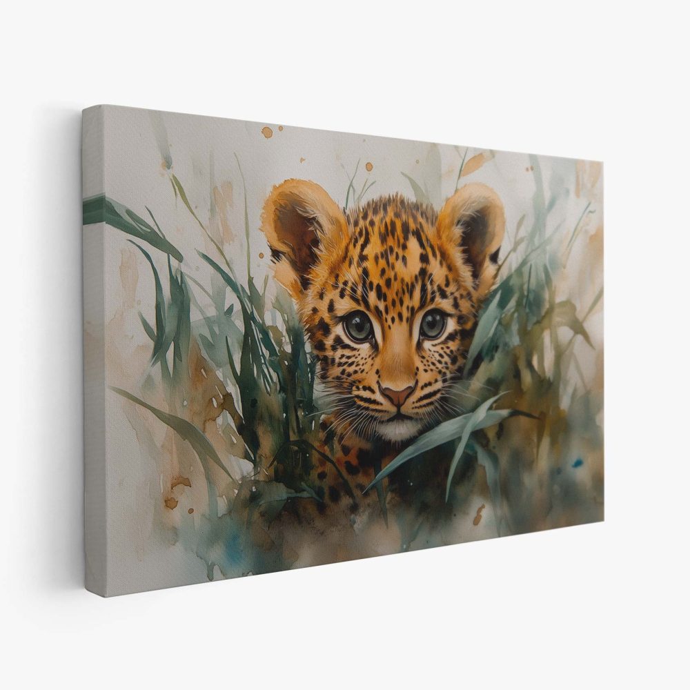 Terug naar collectie / Schilderijen / Dieren Schilderij / Speels luipaardwelp waterverfschilderij