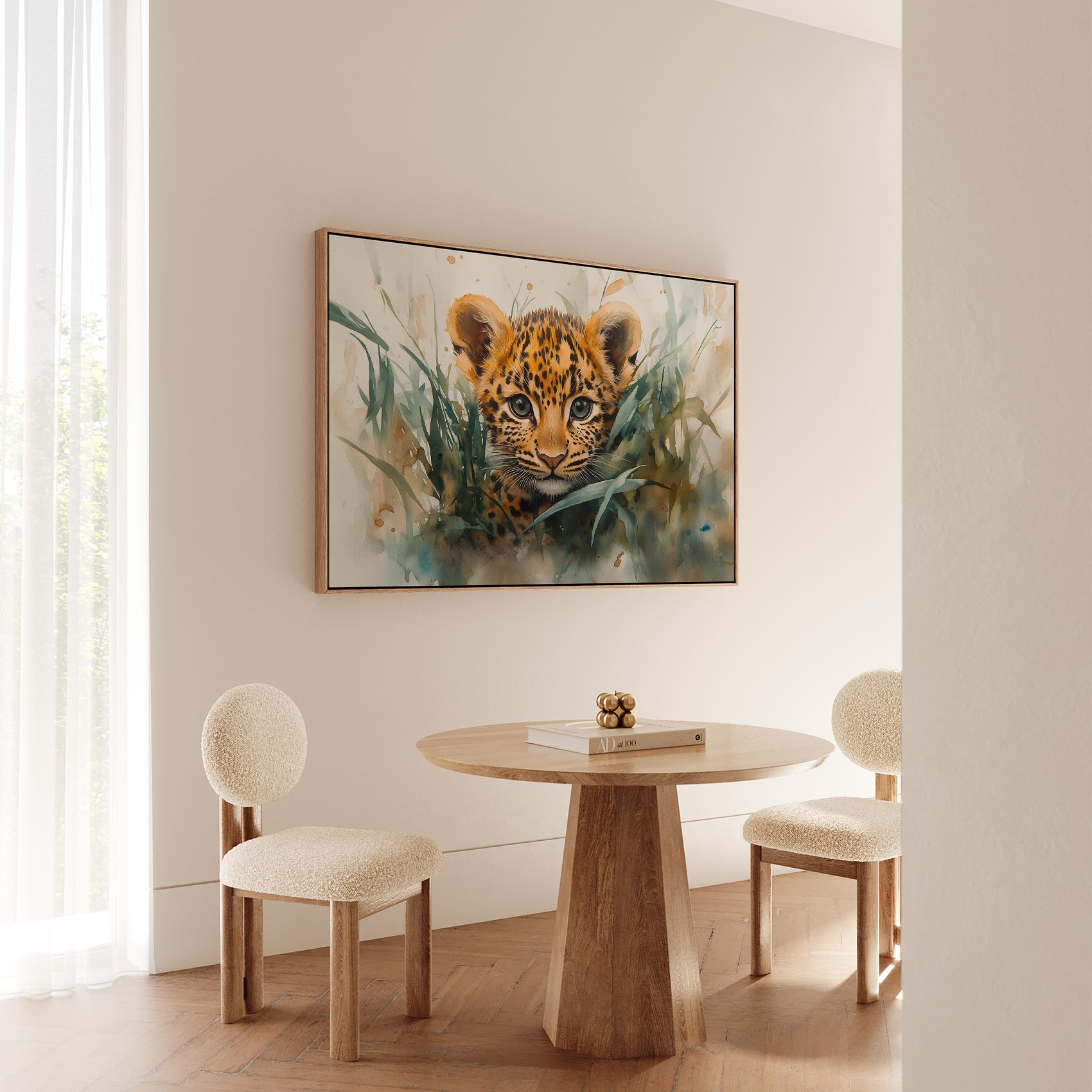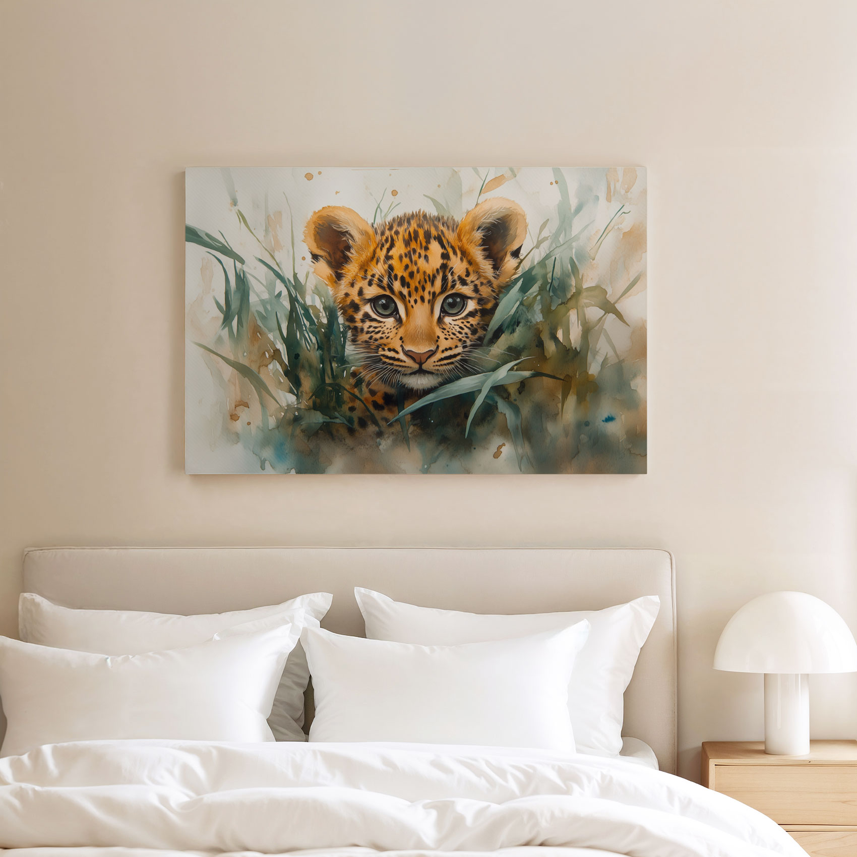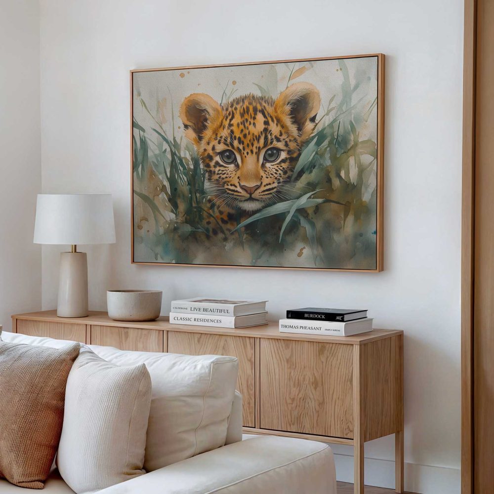 Terug naar collectie / Schilderijen / Dieren Schilderij / Speels luipaardwelp waterverfschilderij