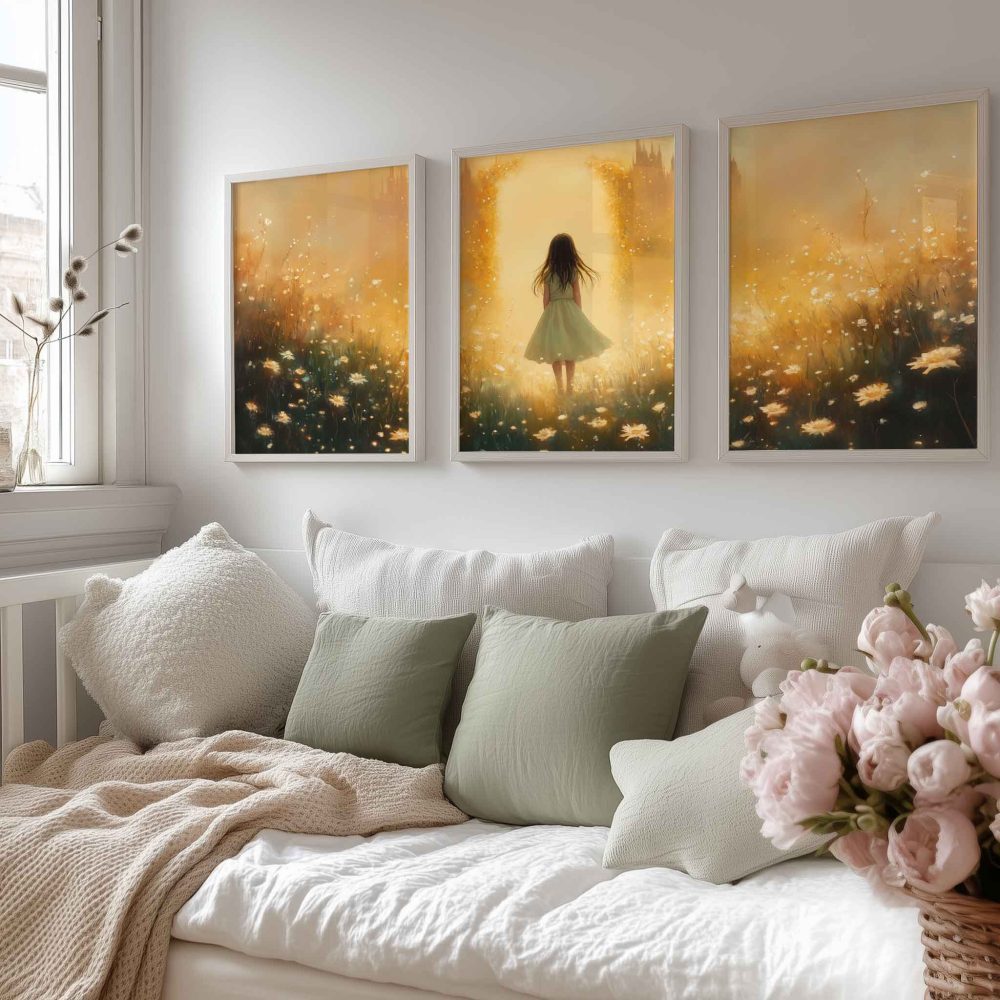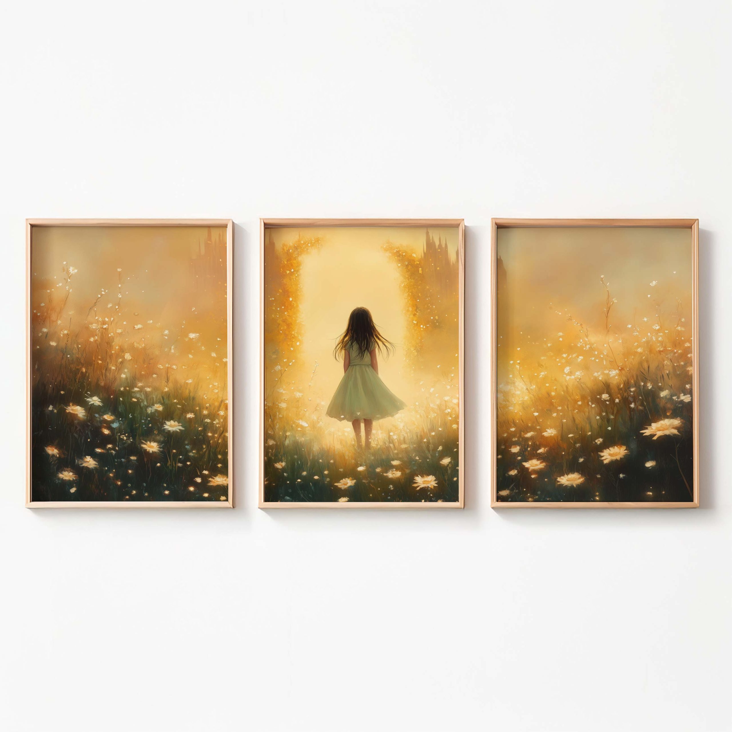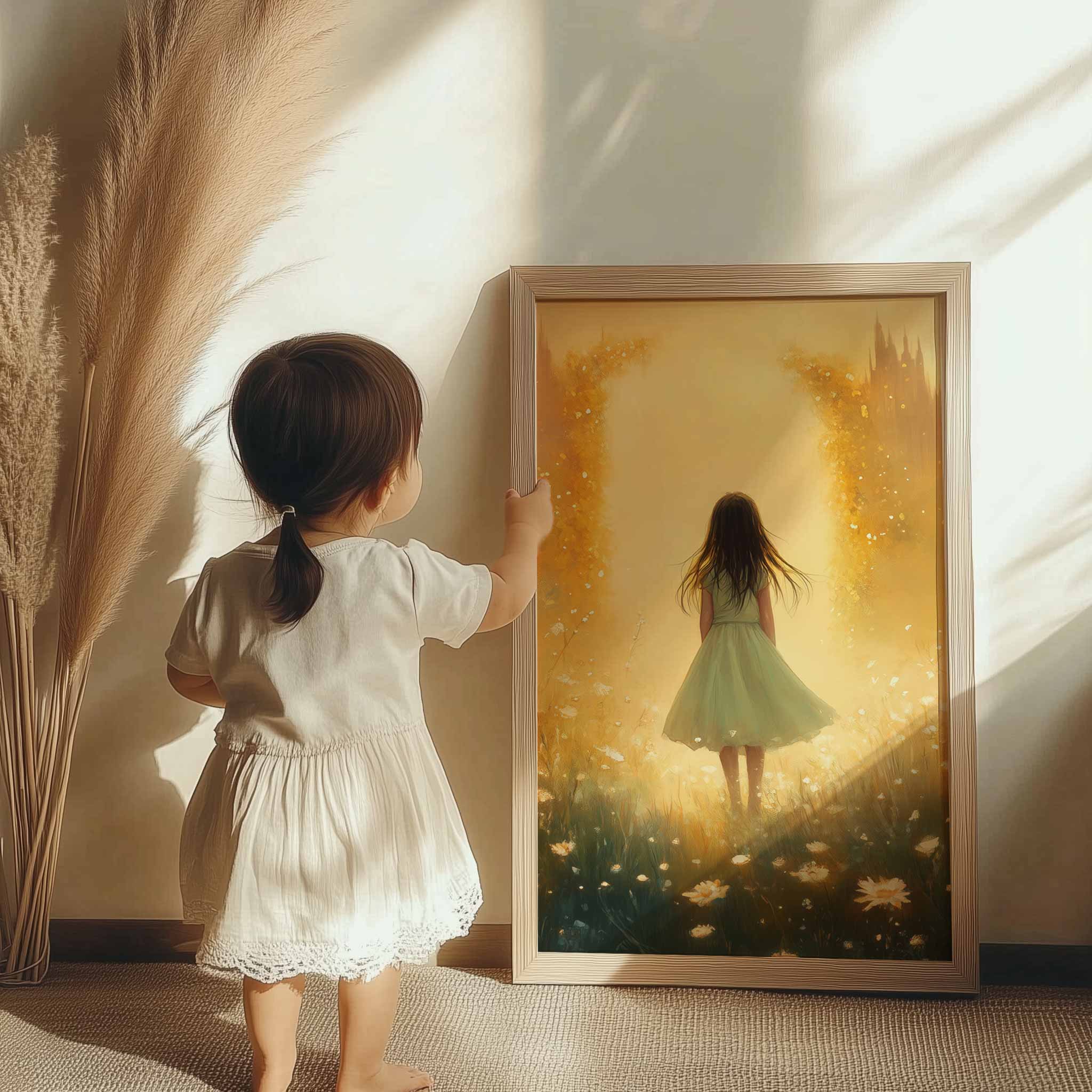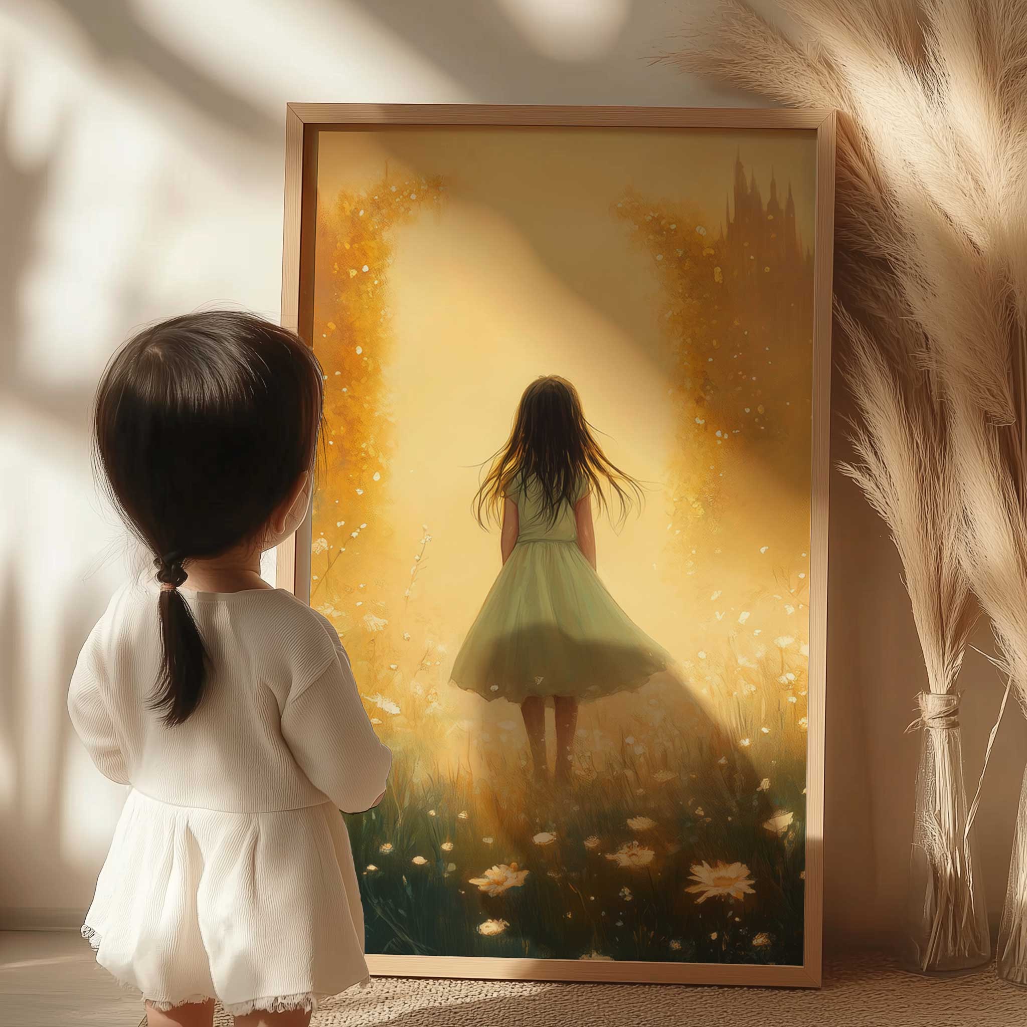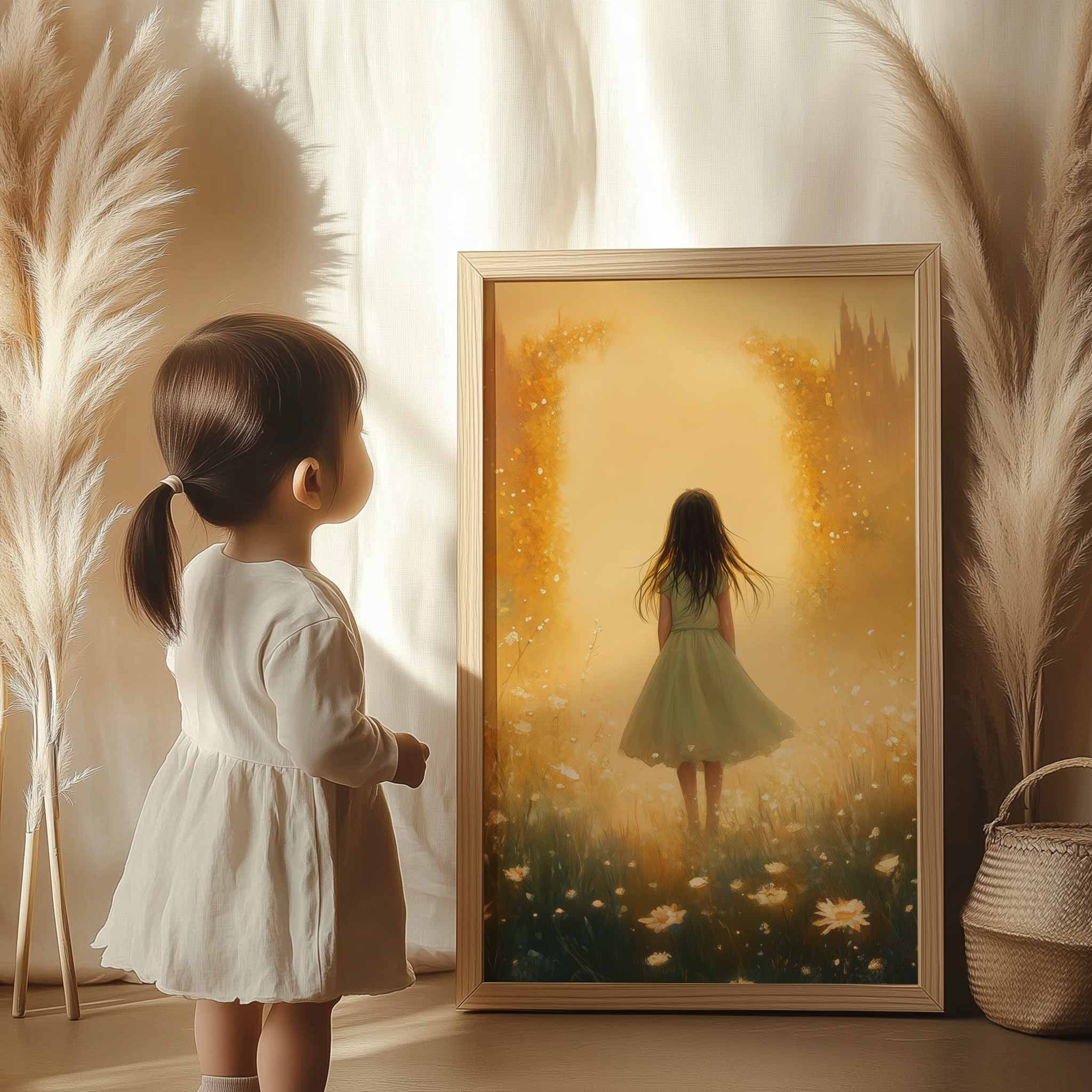 Terug naar collectie / Uncategorized / Speels Meisje in Bloemenveld met Dromerig Kasteel