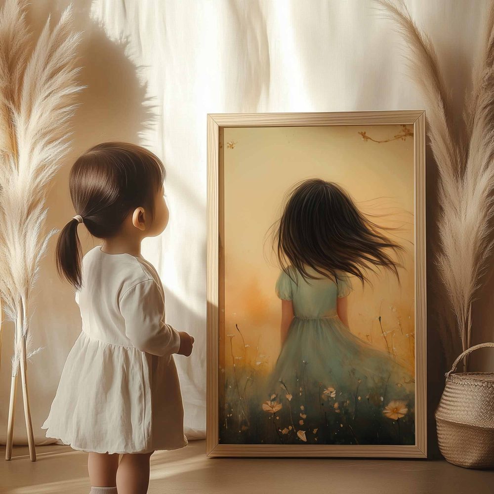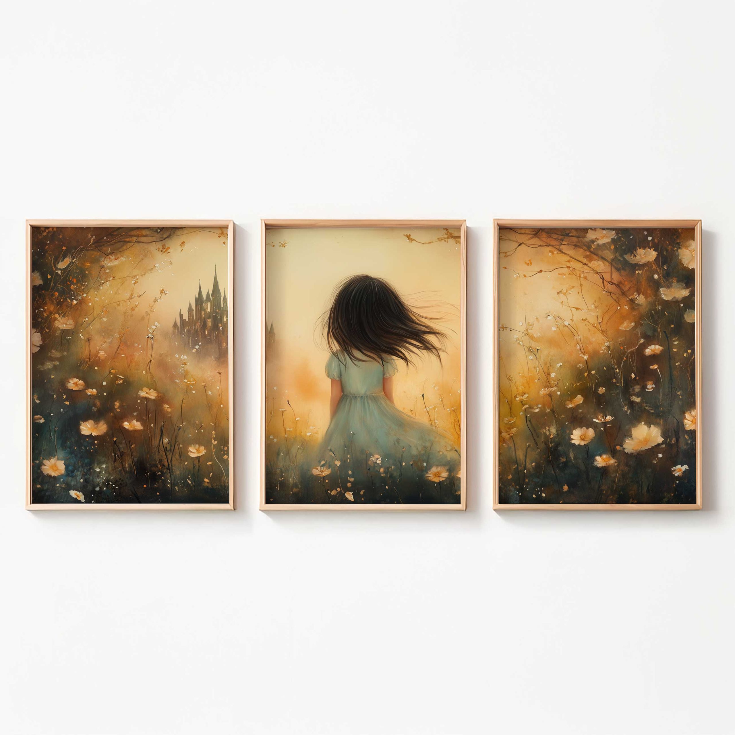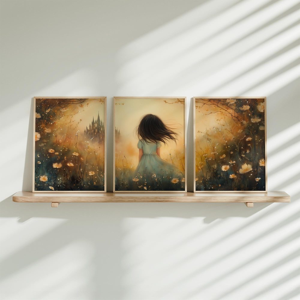 Terug naar collectie / Uncategorized / Speels Meisje in Bloemenveld met Kasteel